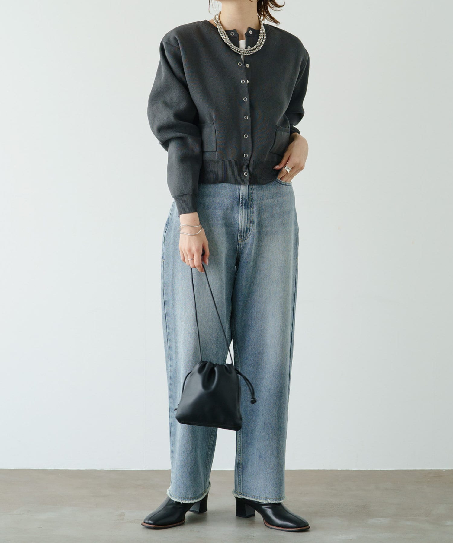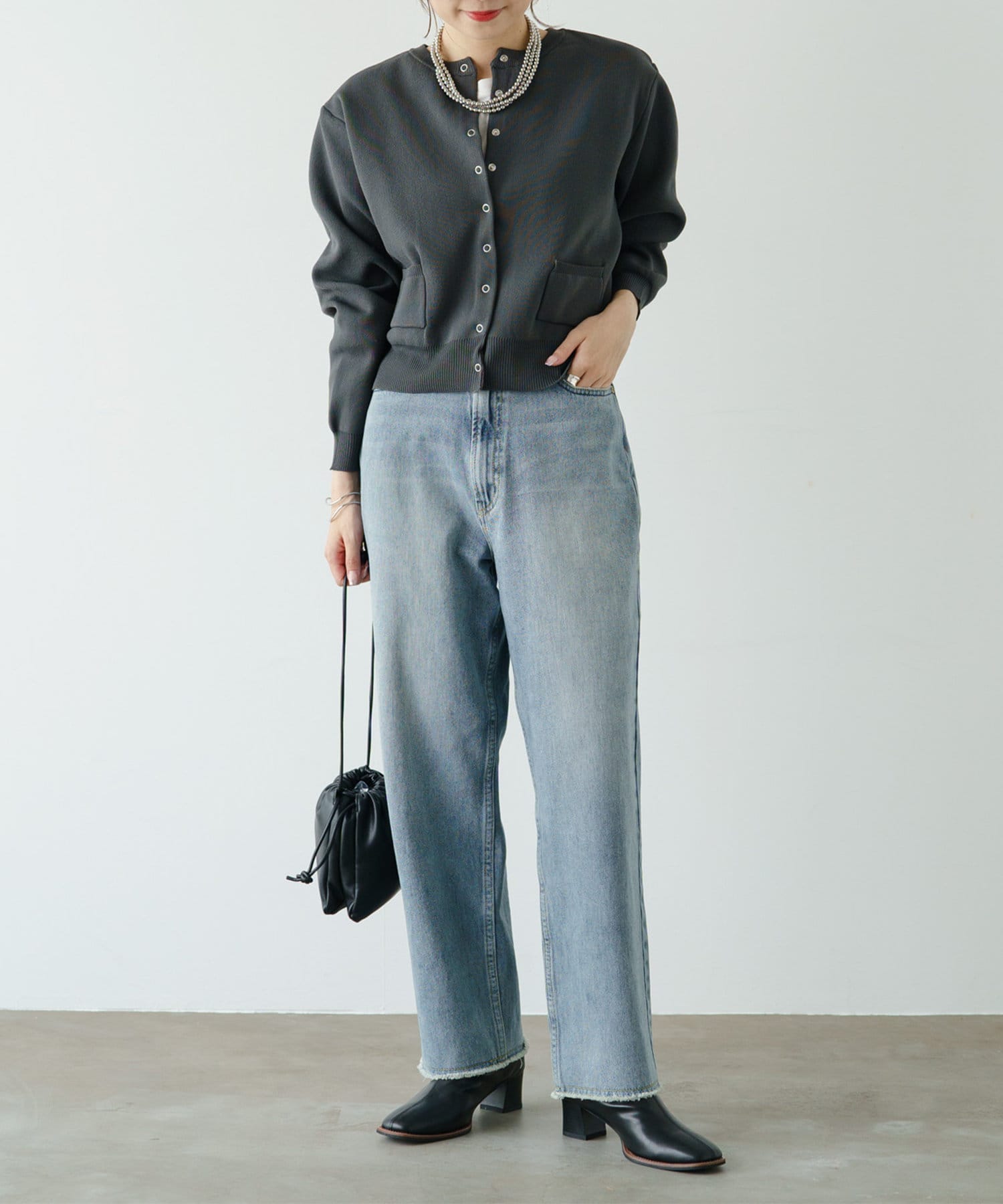 デニムでカジュアルダウンしても品良くきまり、ON・OFF問わず着回せる万能アイテムです。
