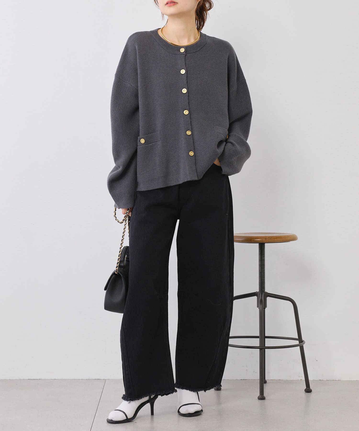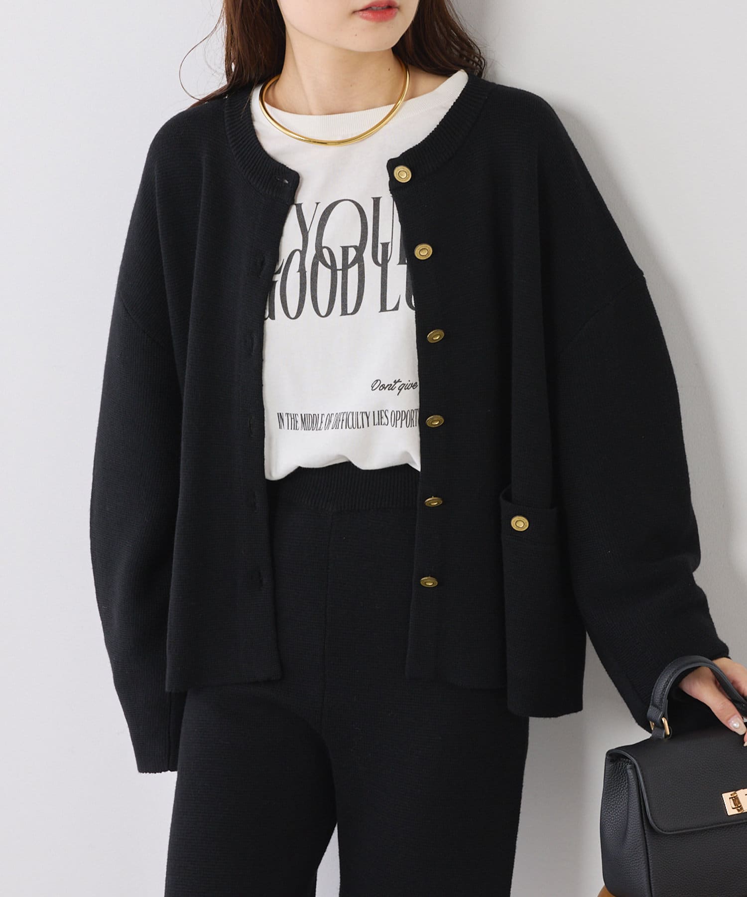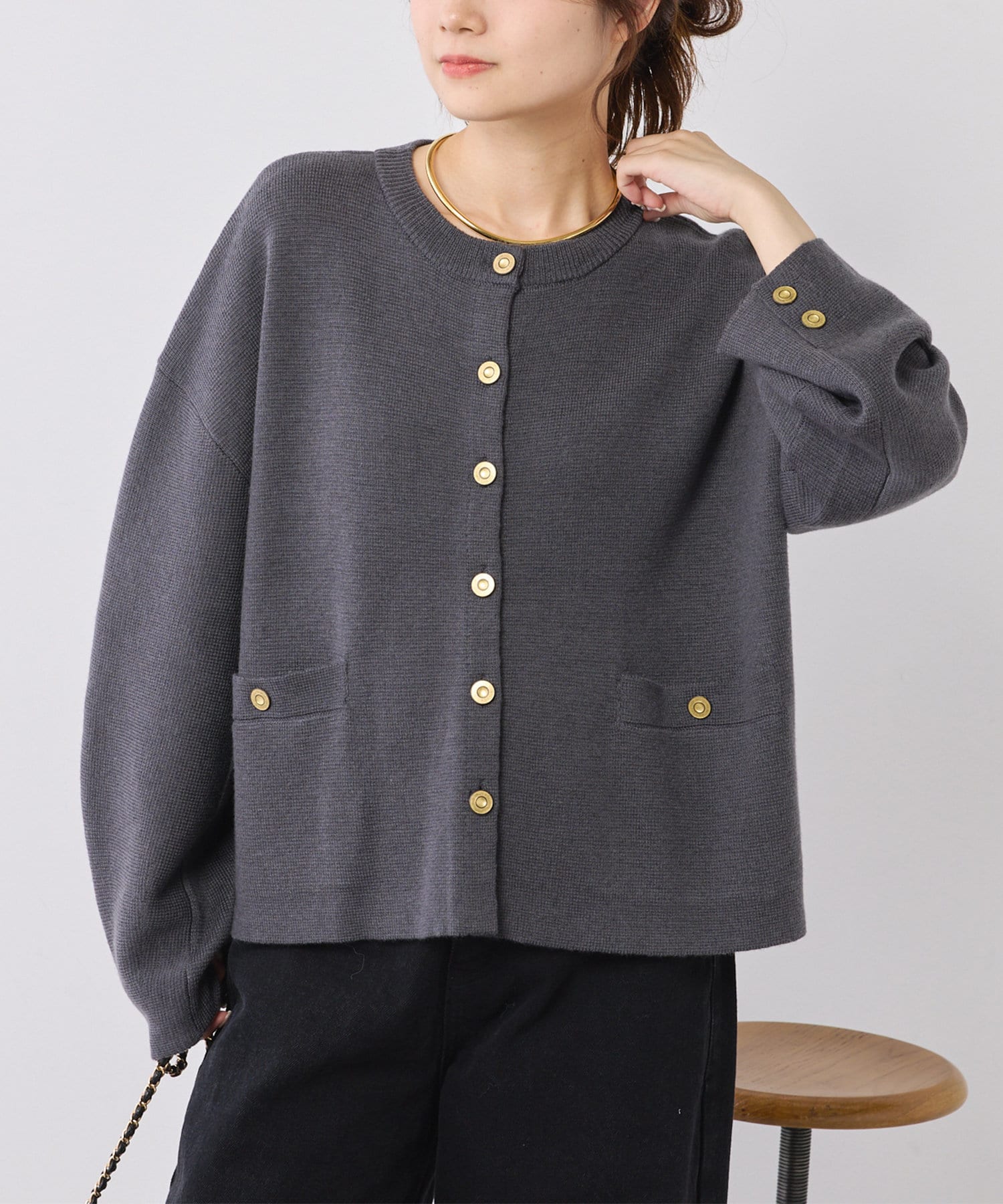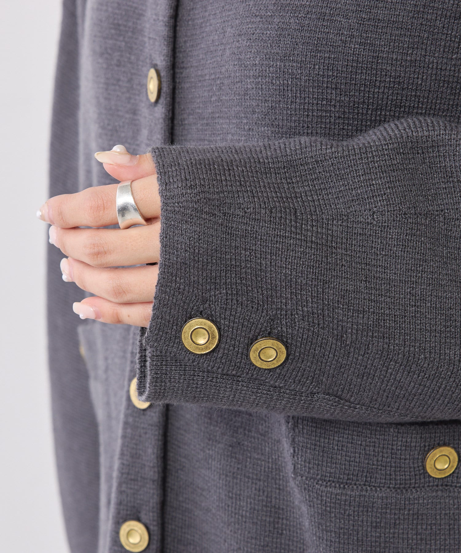 ◇コーデのアクセントになる、金ボタンが映えるニットカーディガン◇
