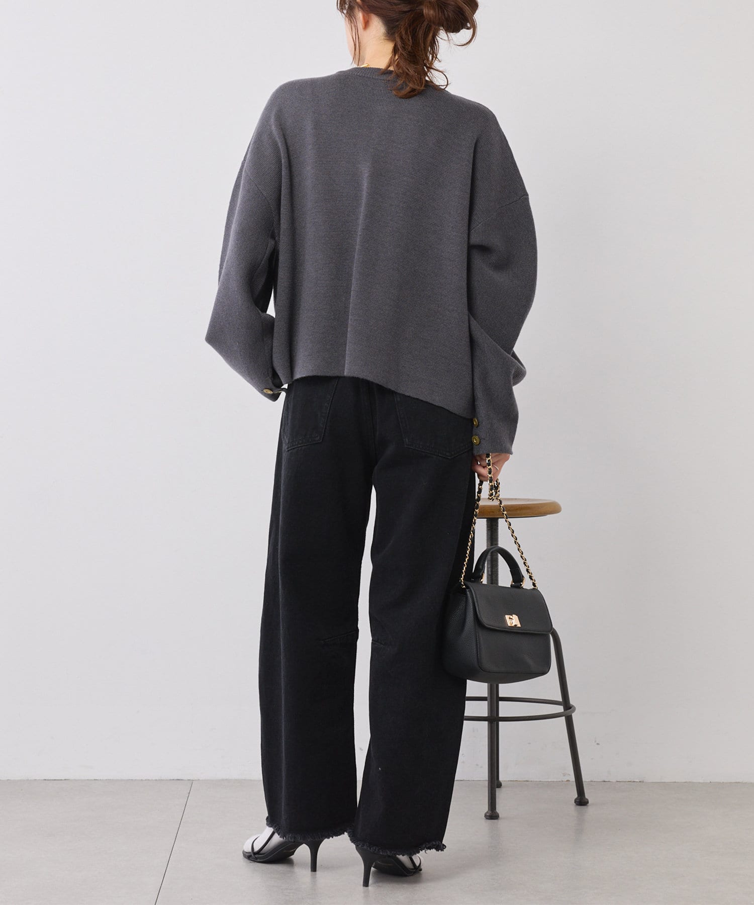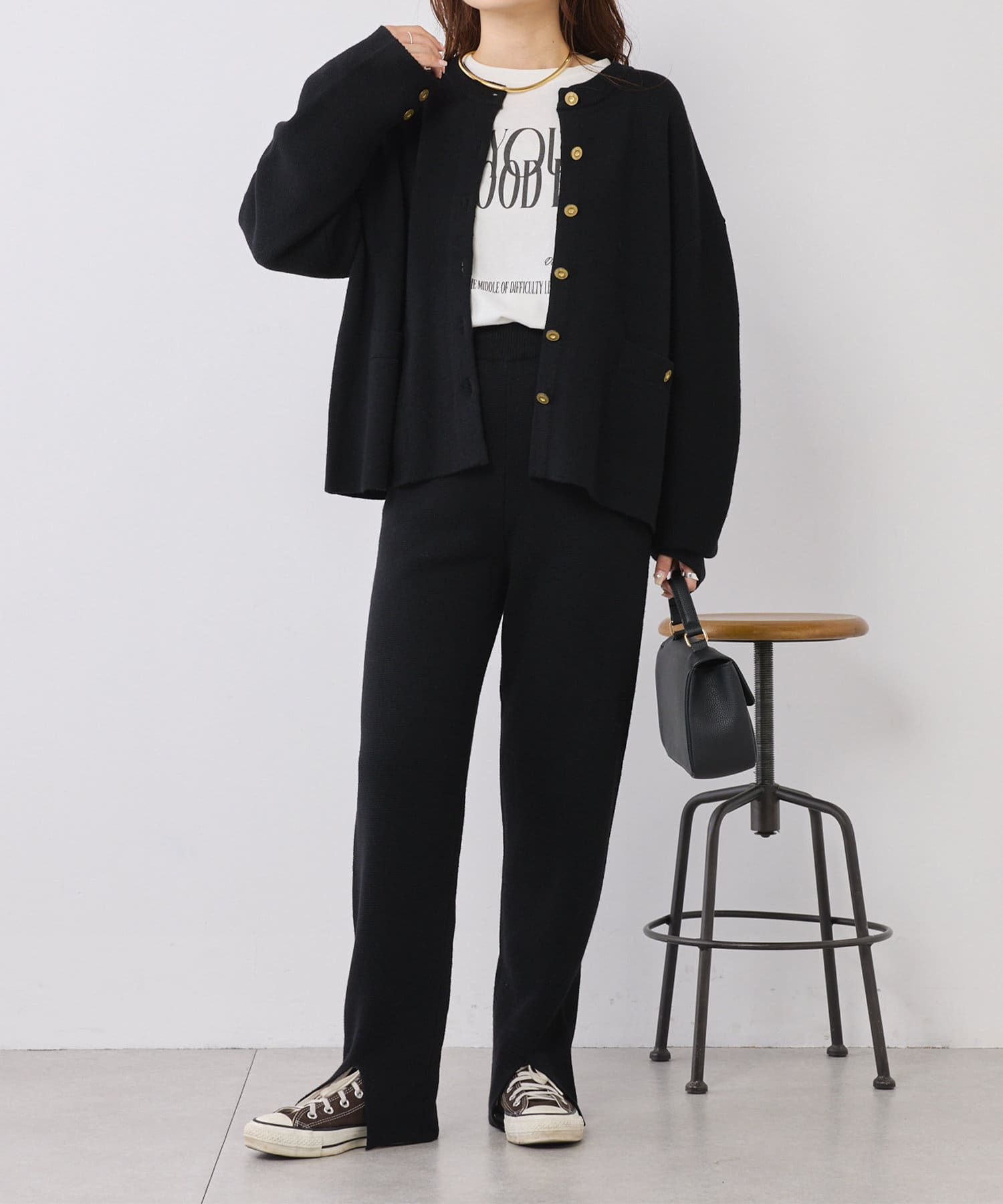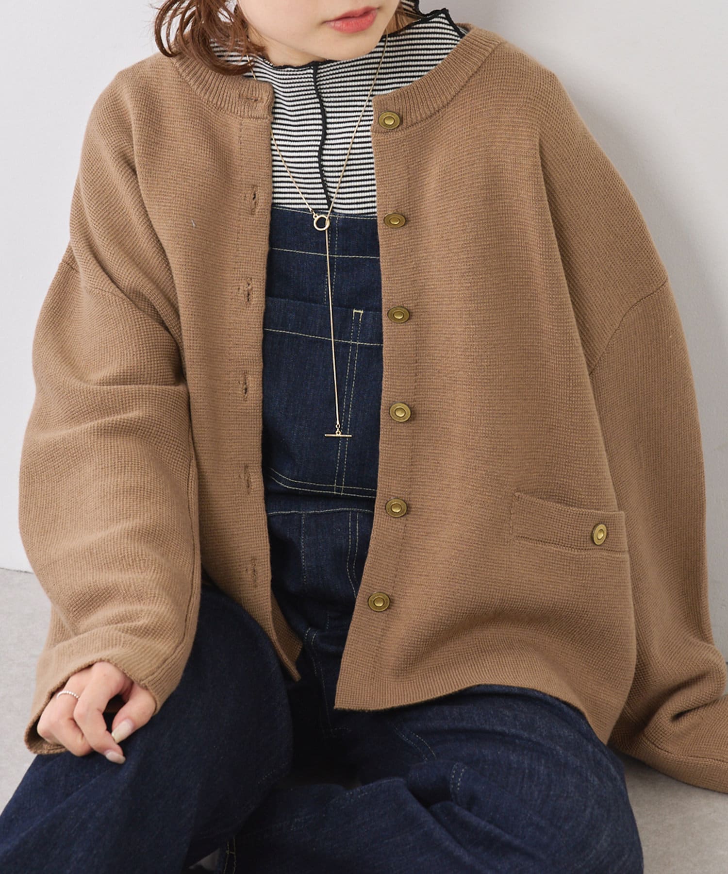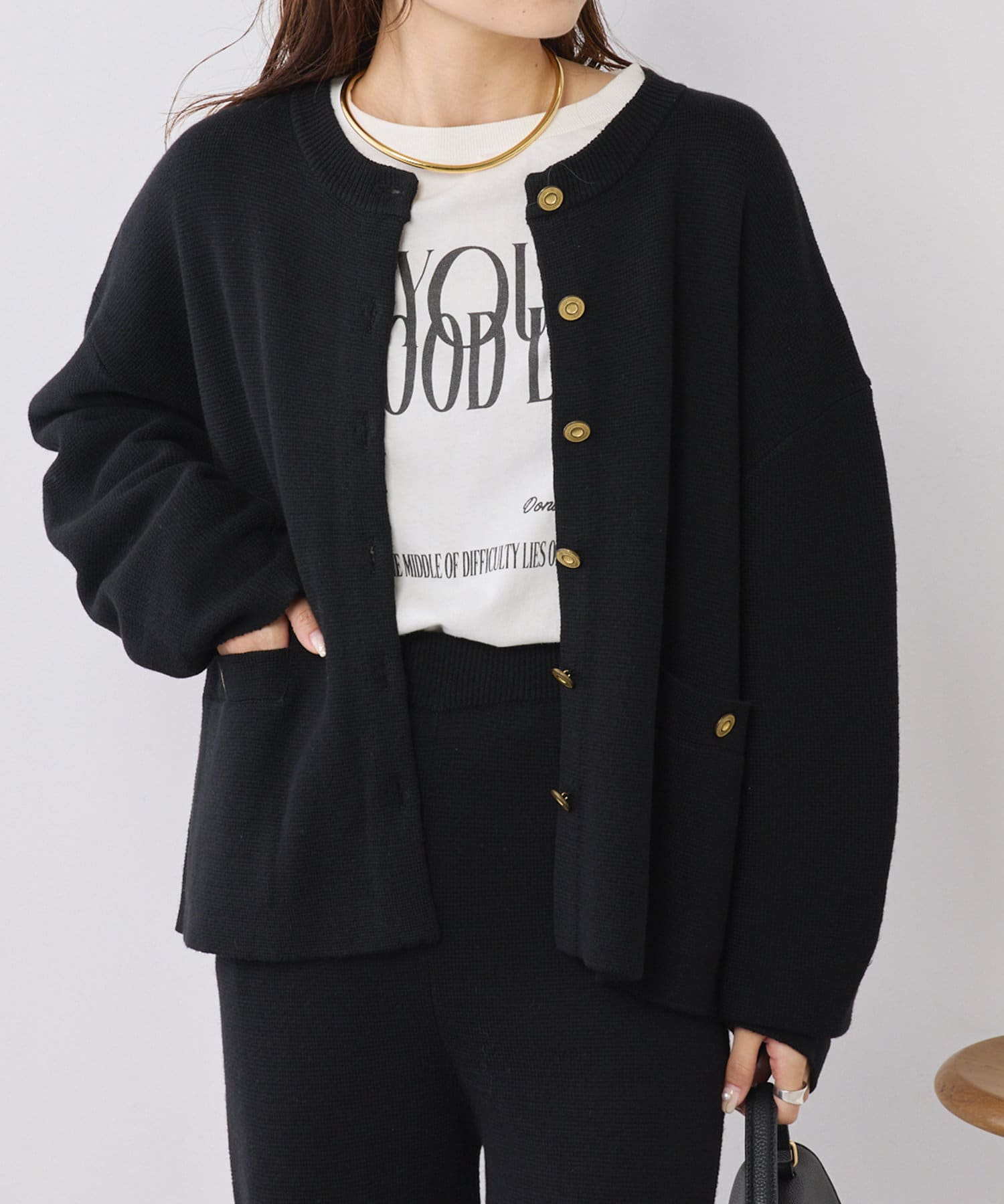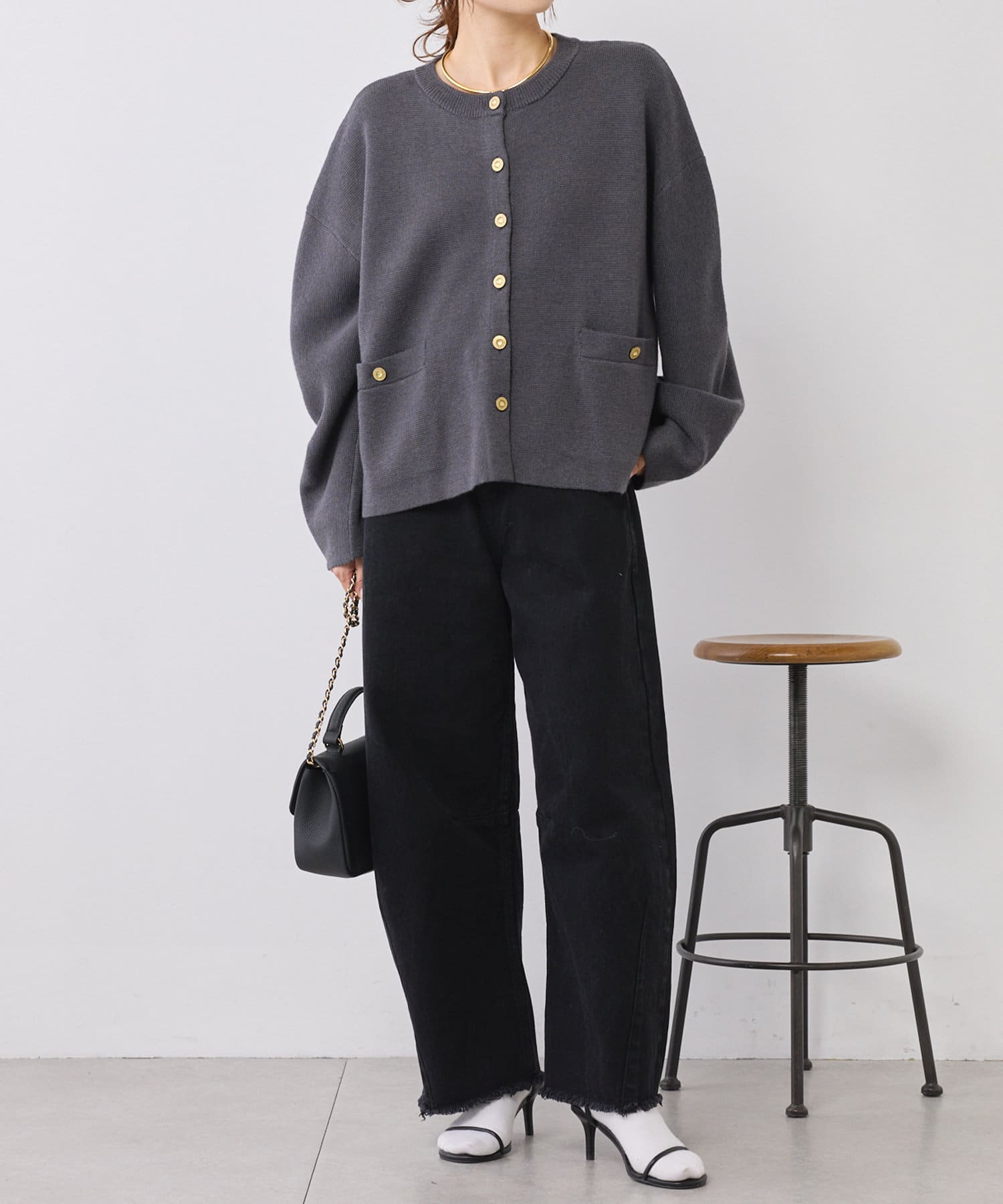 ◇コーデのアクセントになる、金ボタンが映えるニットカーディガン◇