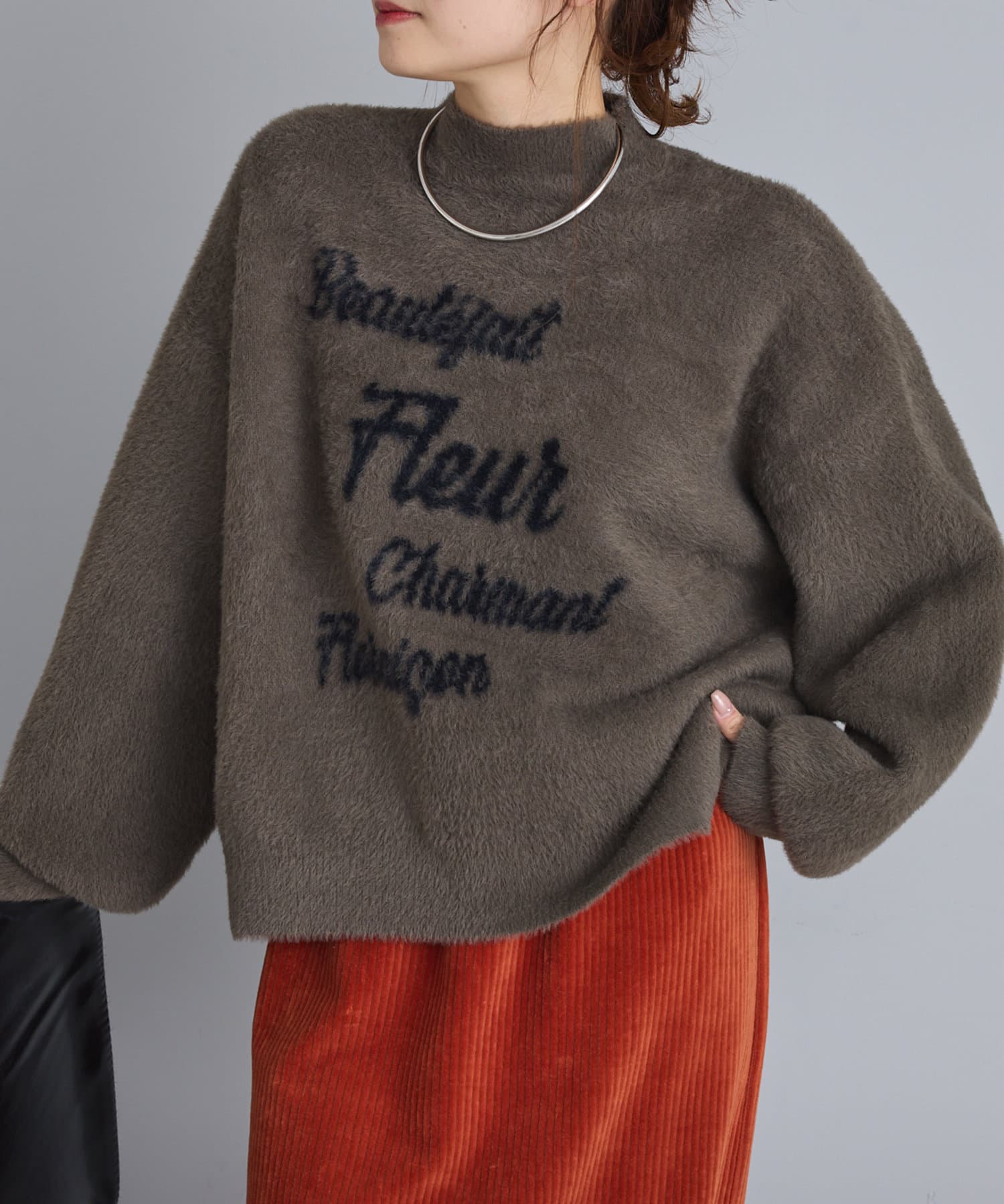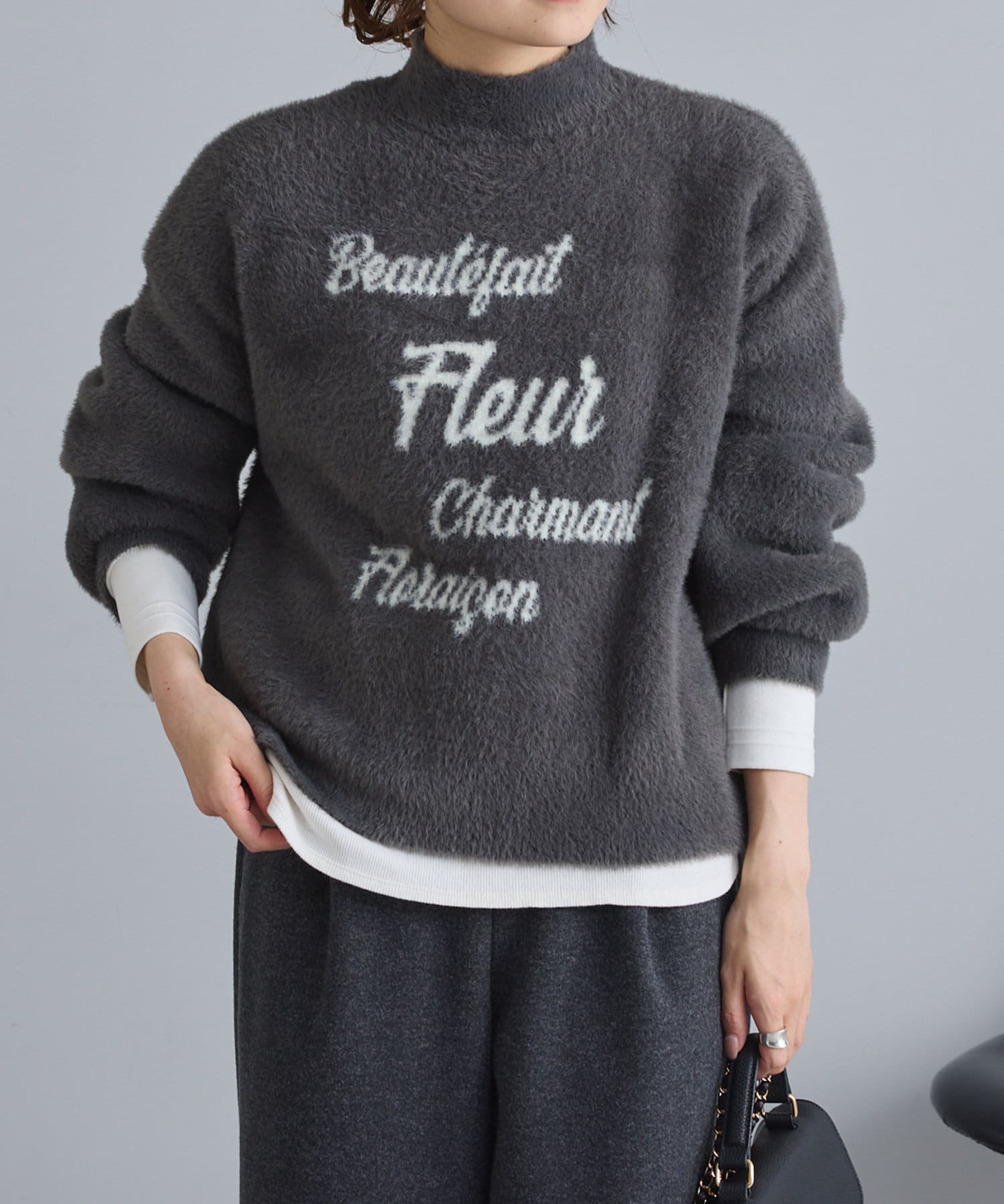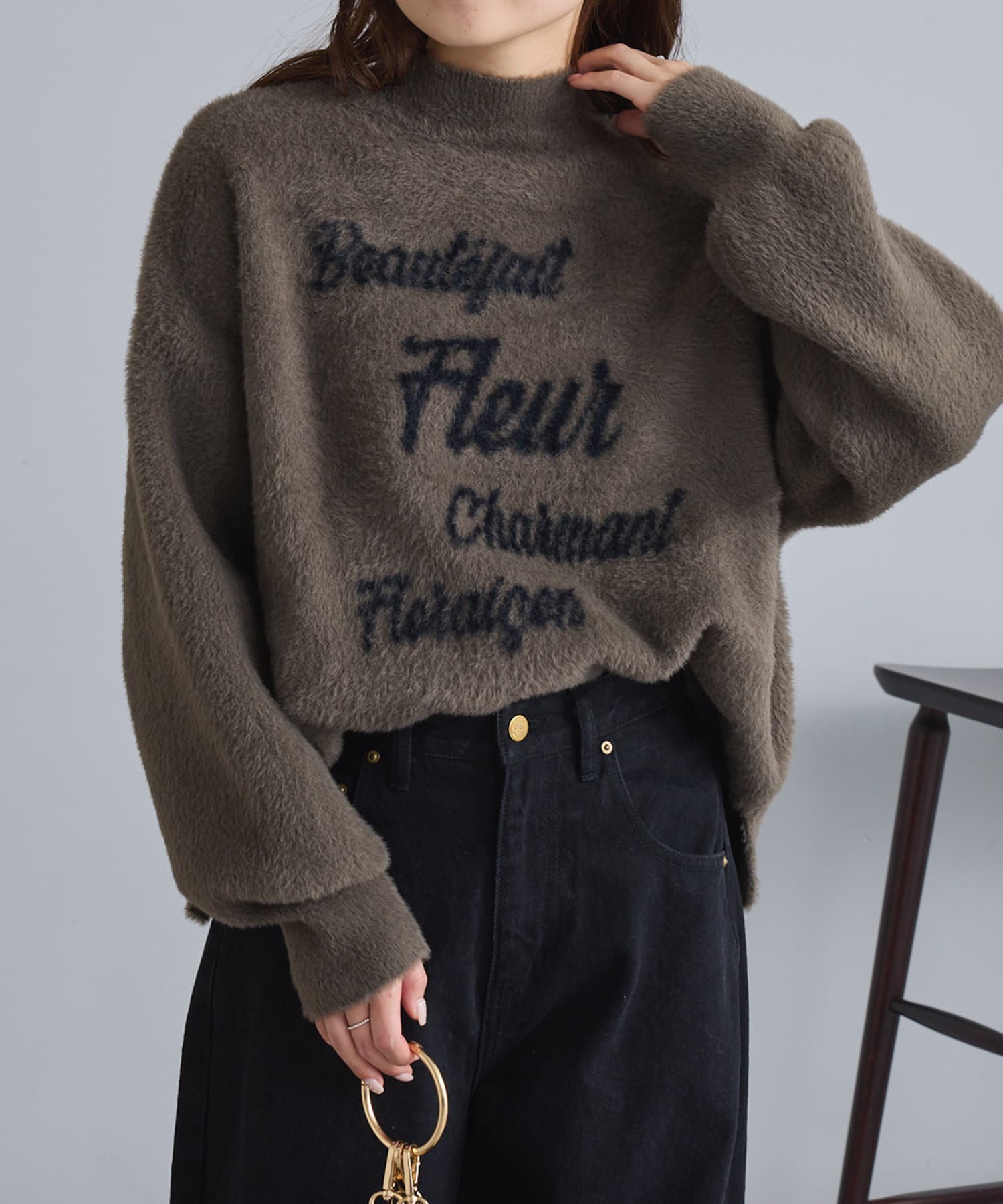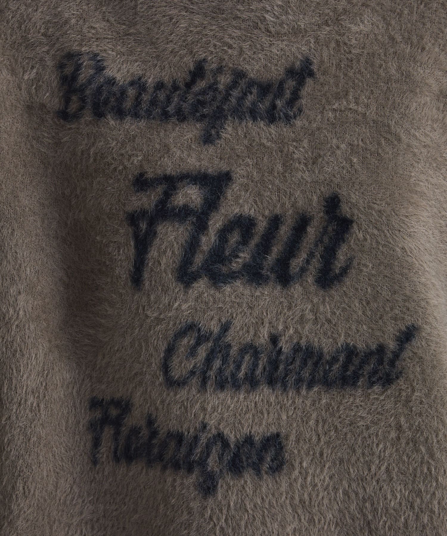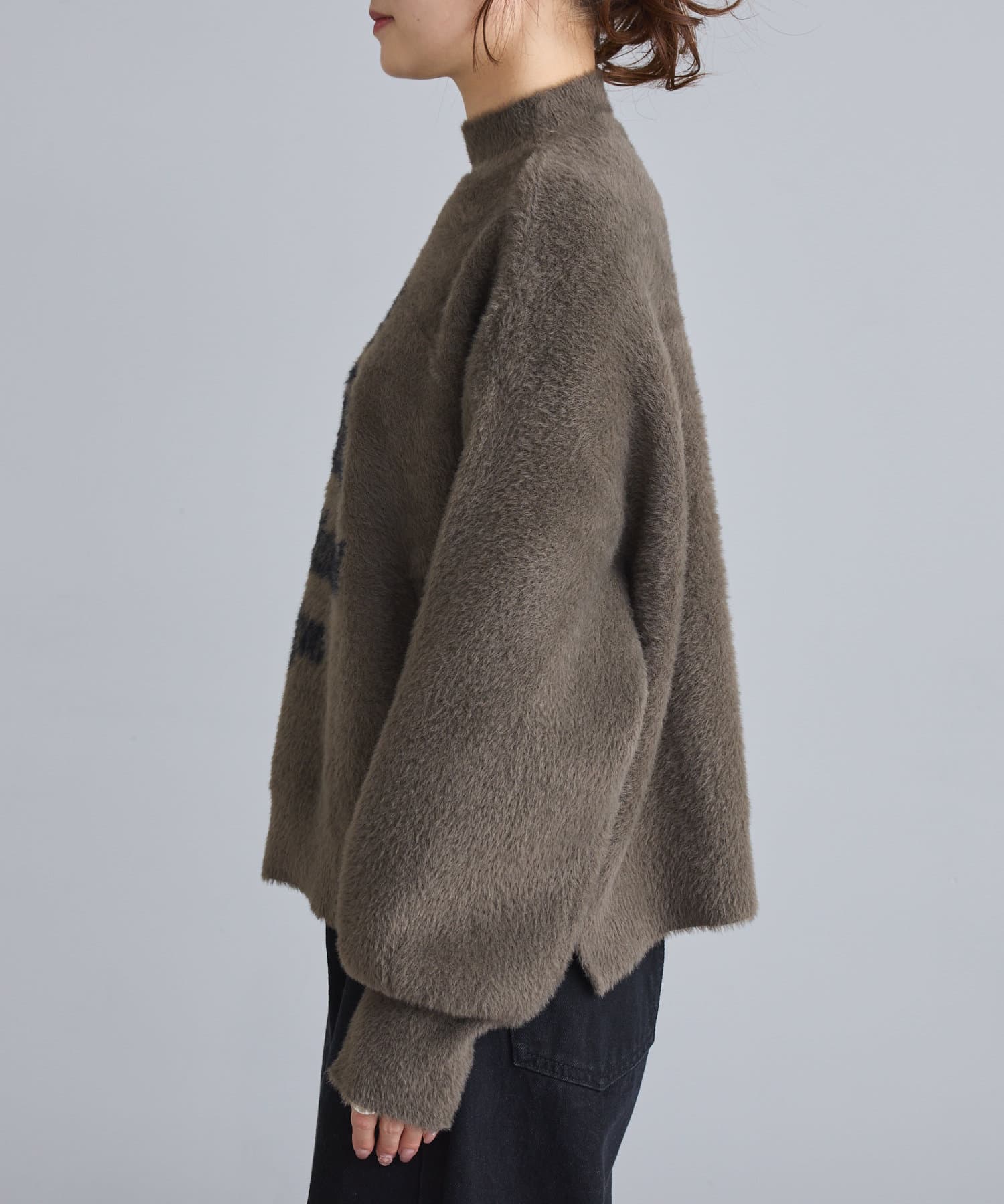 コートインにも映える配色のジャガードロゴがアクセントになったシャギーニット。