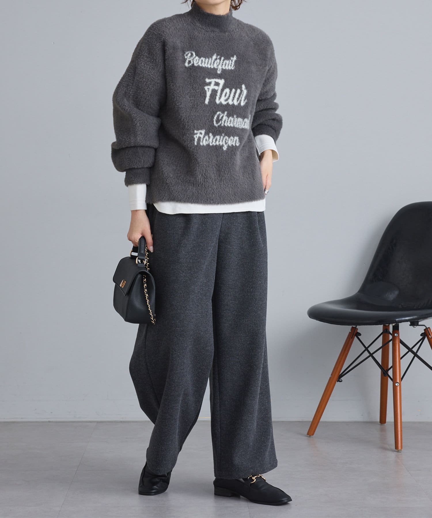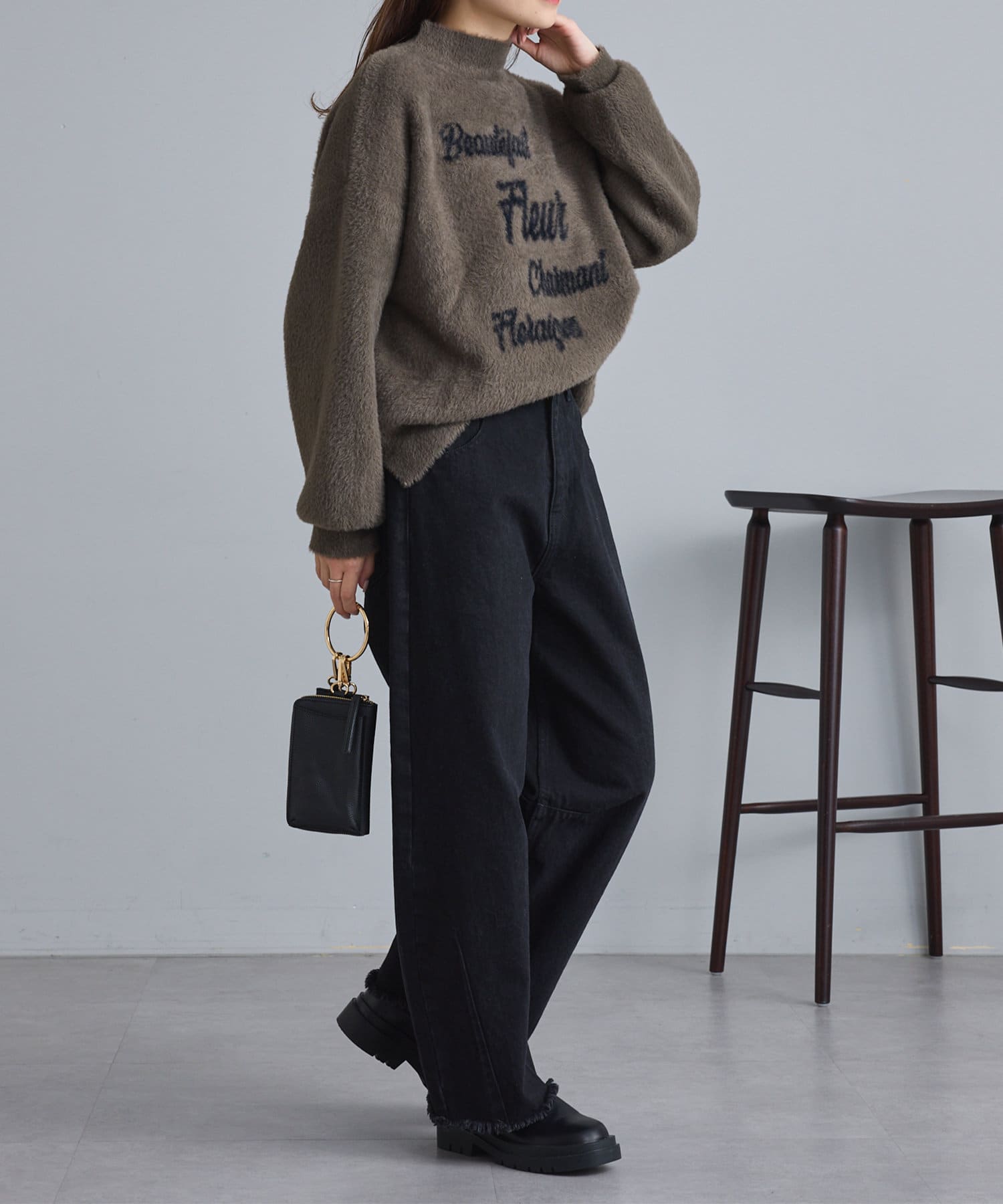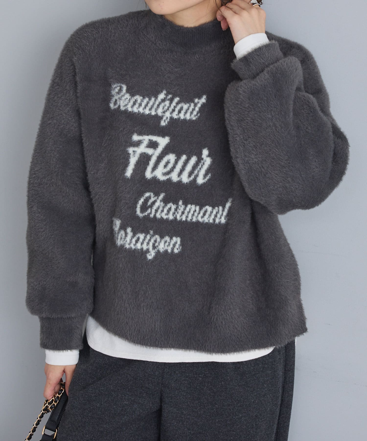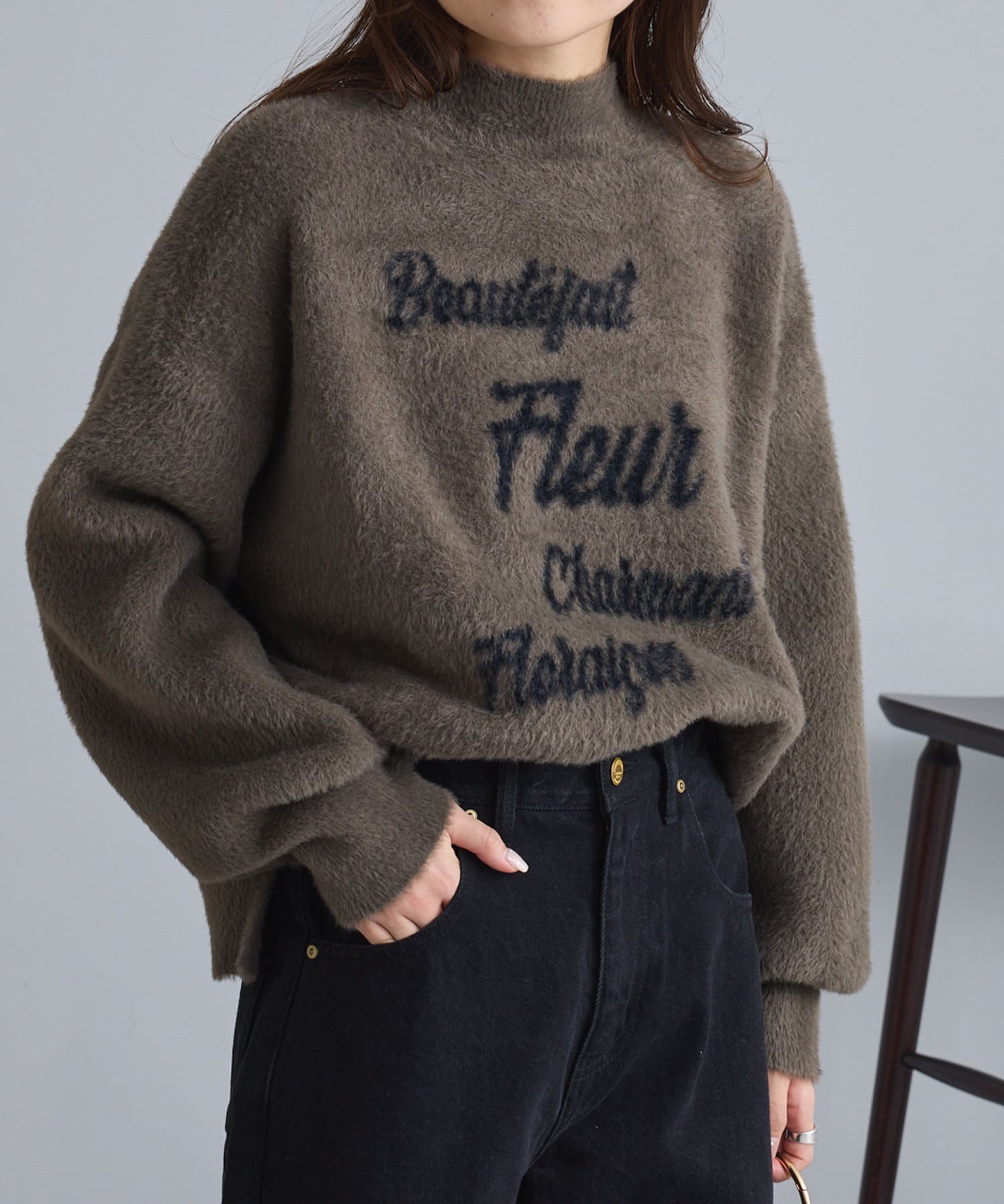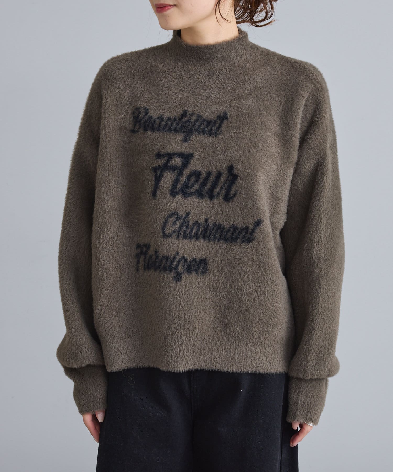 コートインにも映える配色のジャガードロゴがアクセントになったシャギーニット。