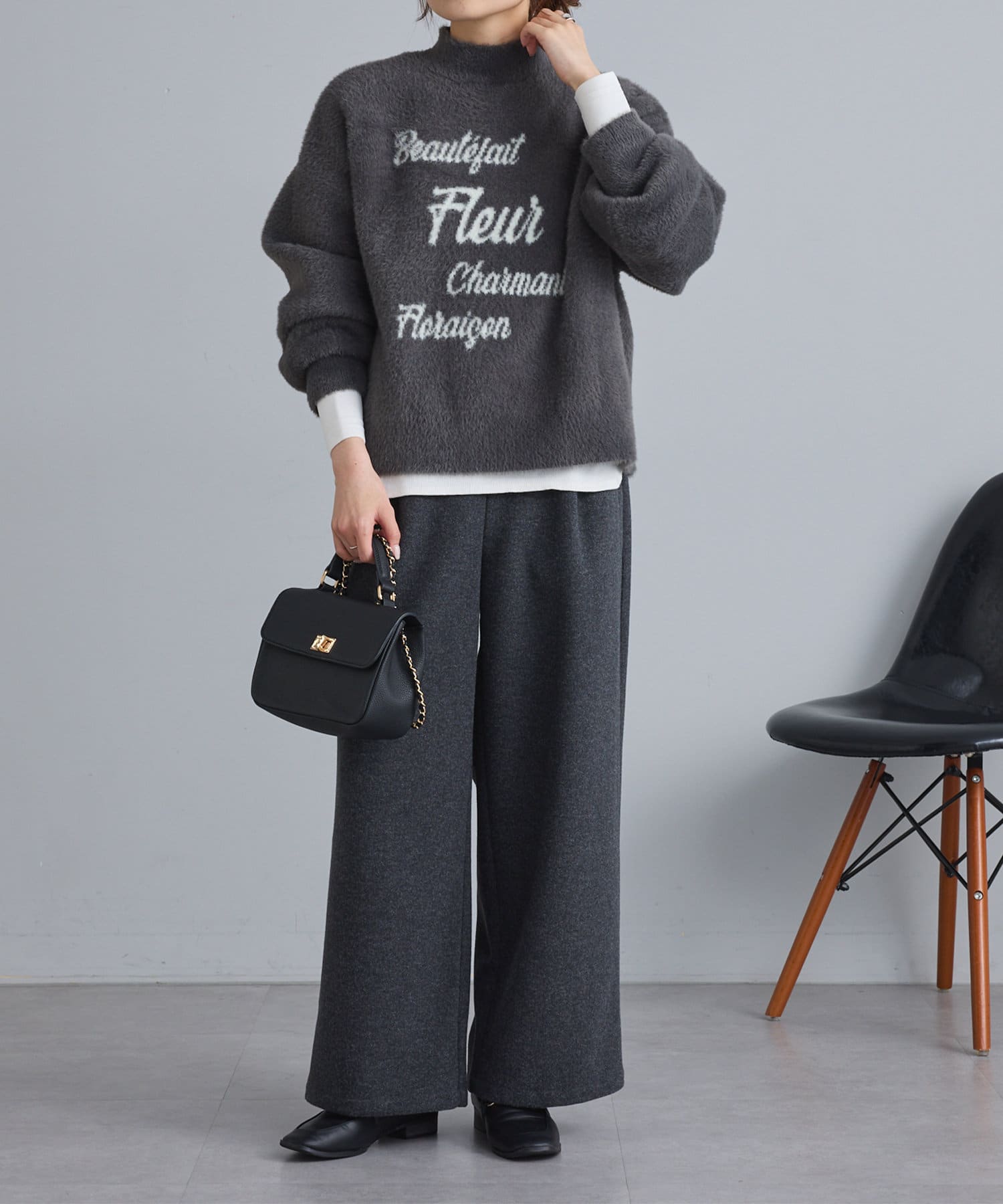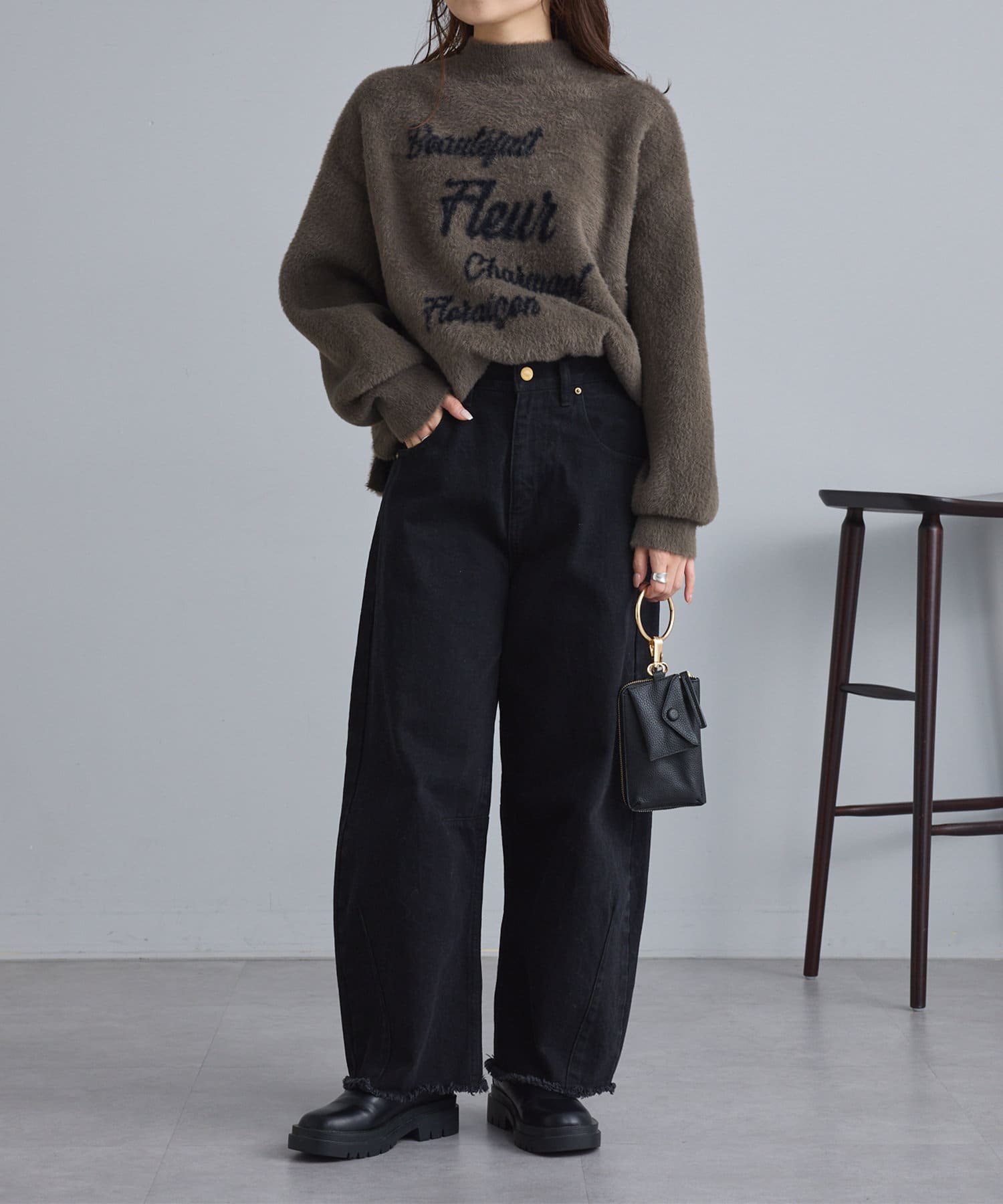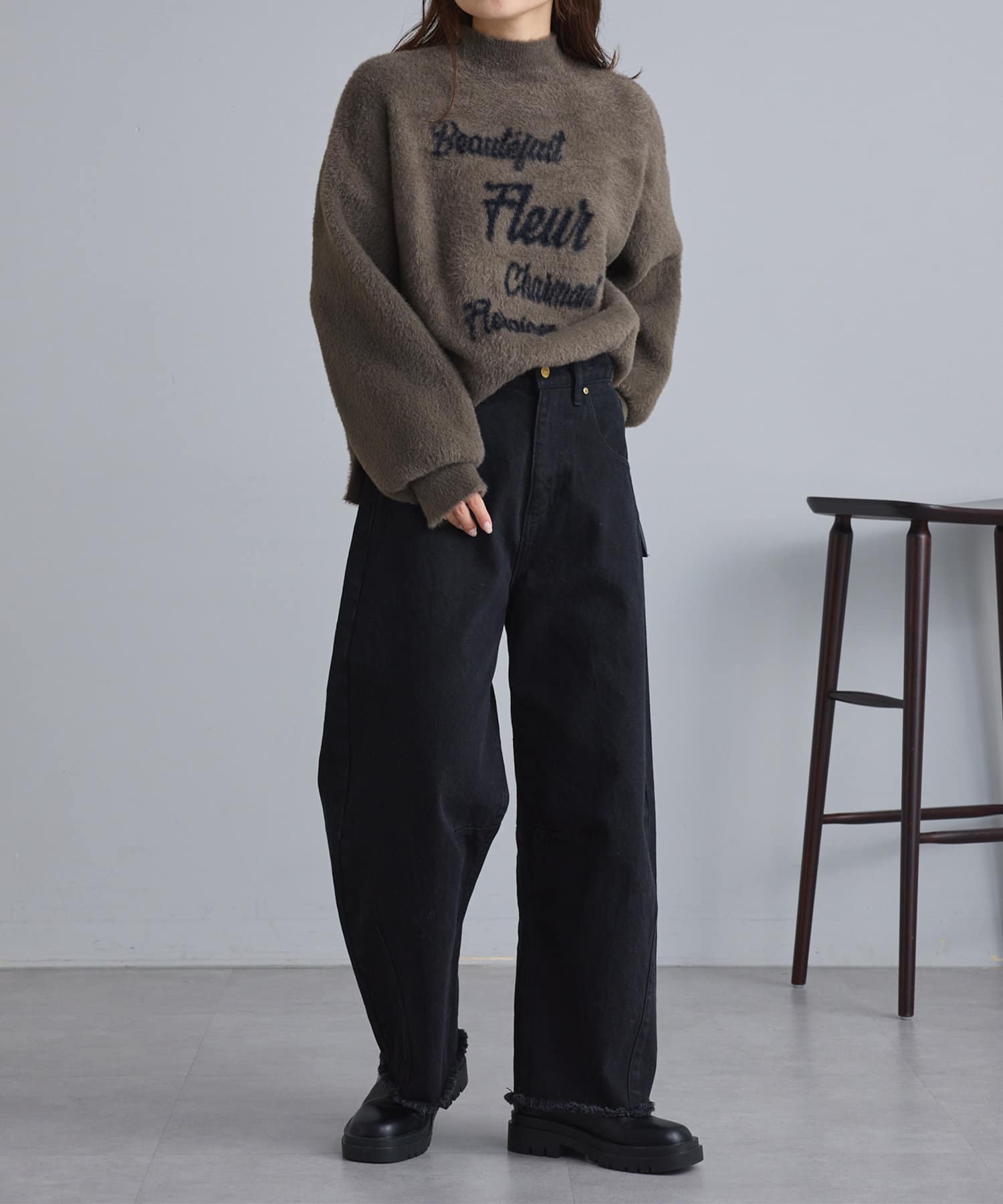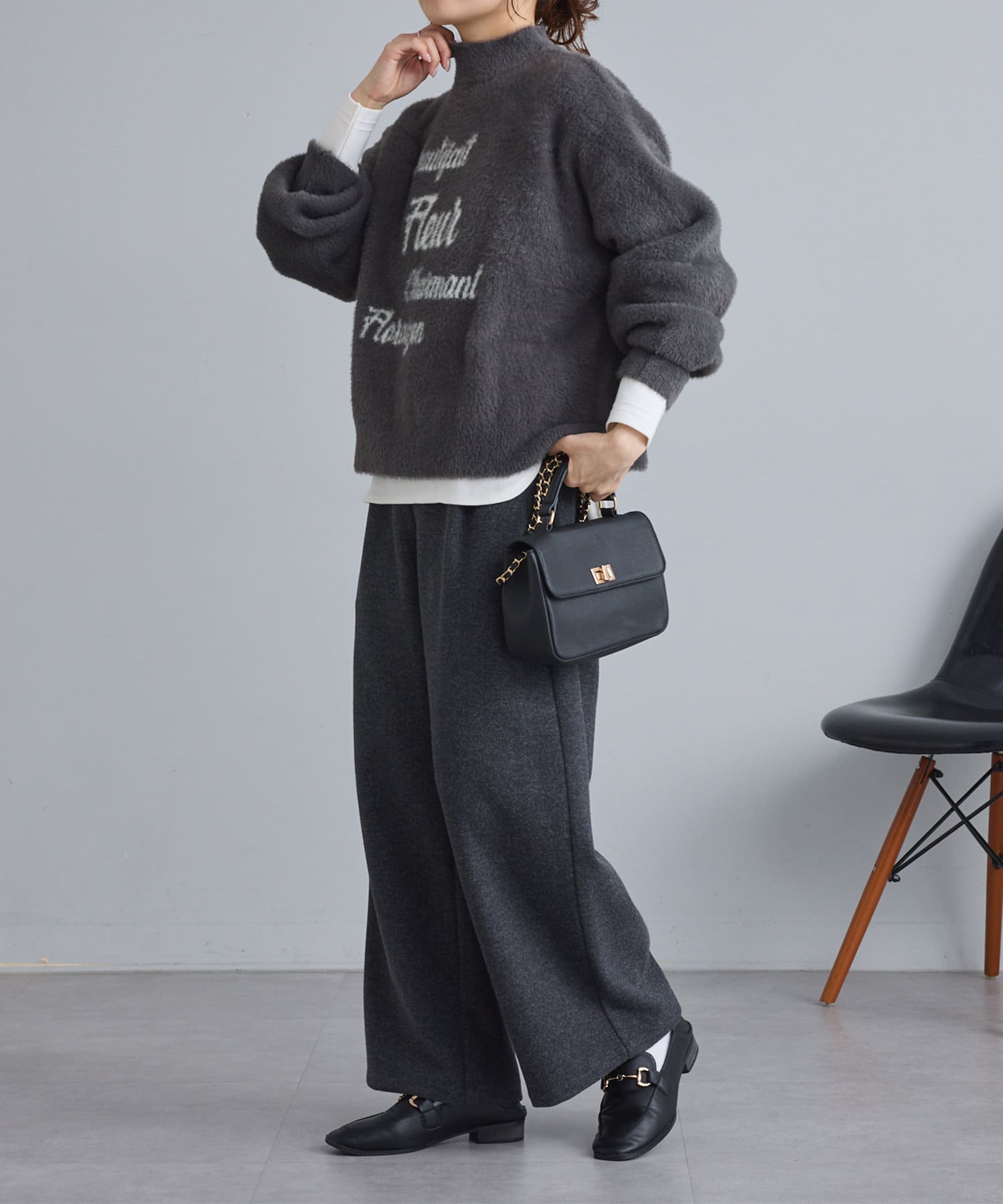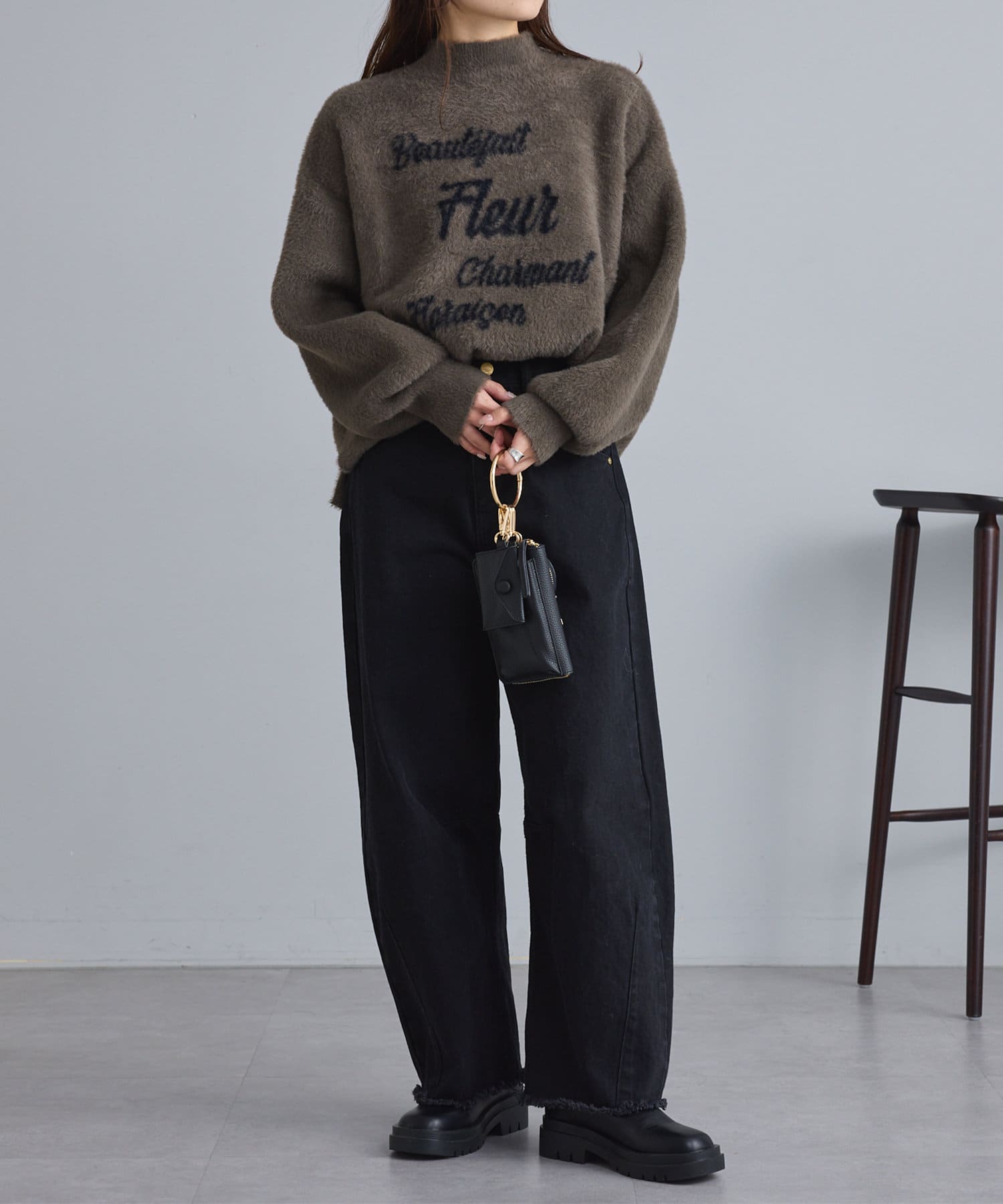 コートインにも映える配色のジャガードロゴがアクセントになったシャギーニット。