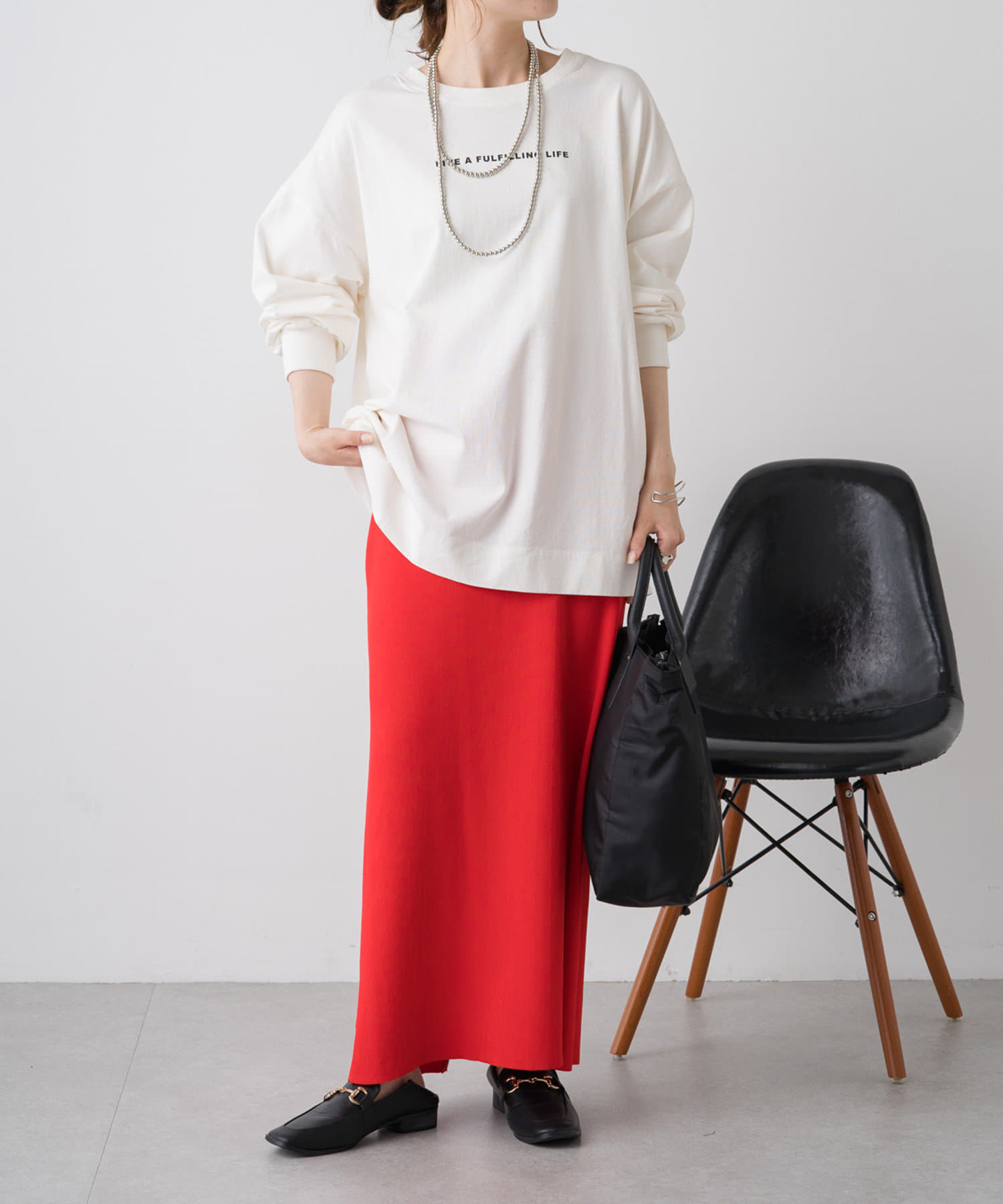 ボトムスにはロングスカートやデニムなど、どんなアイテムとも相性抜群。