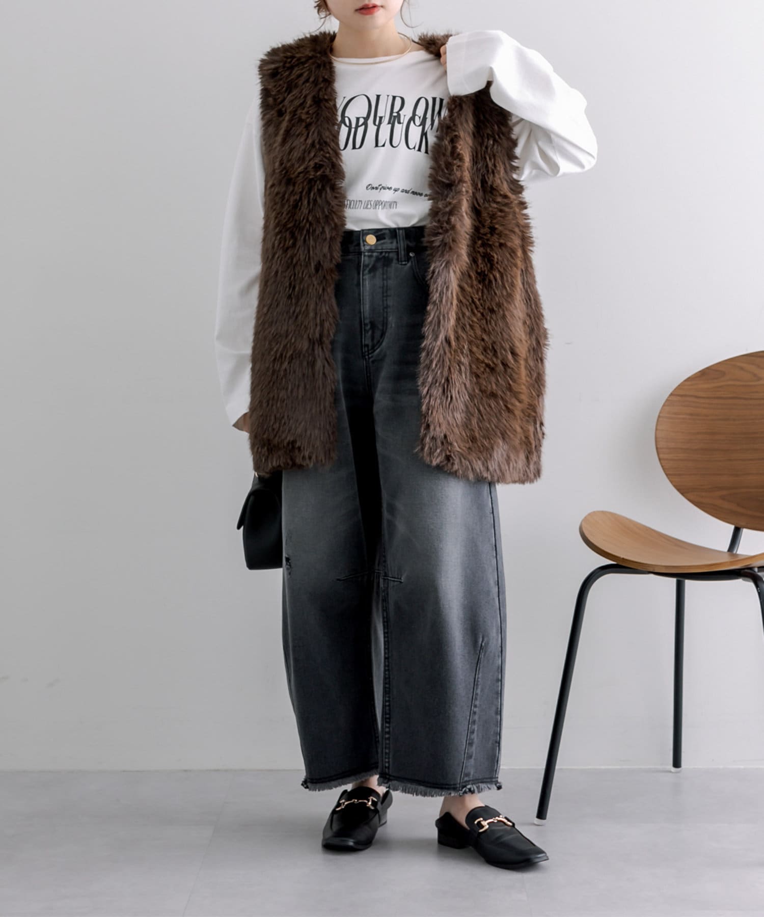 デニムやスラックス、ナロースカートにさらっとシンプルに合わせるのはもちろん