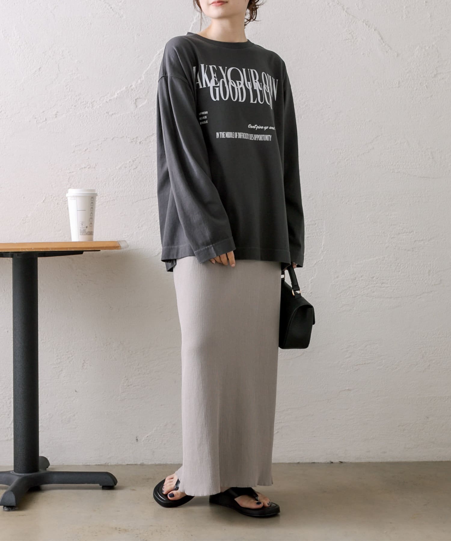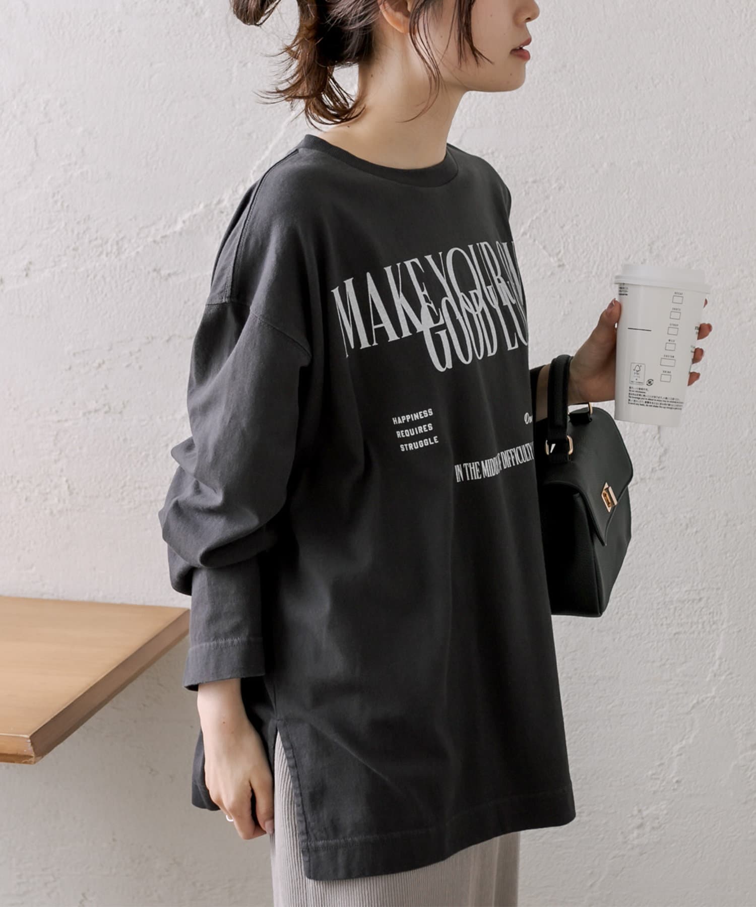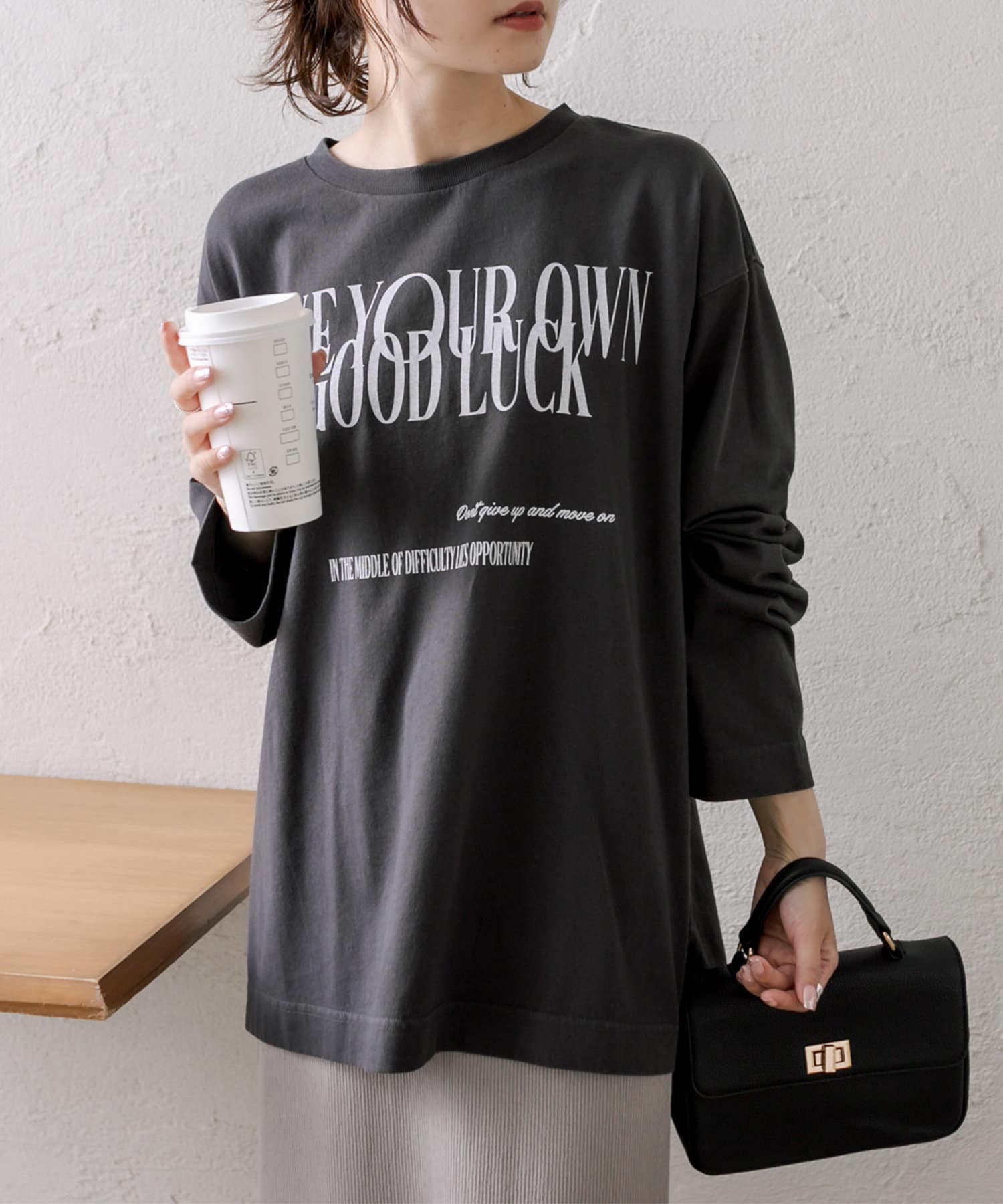 スタイリッシュなロゴプリントがアクセントになったロンT。
