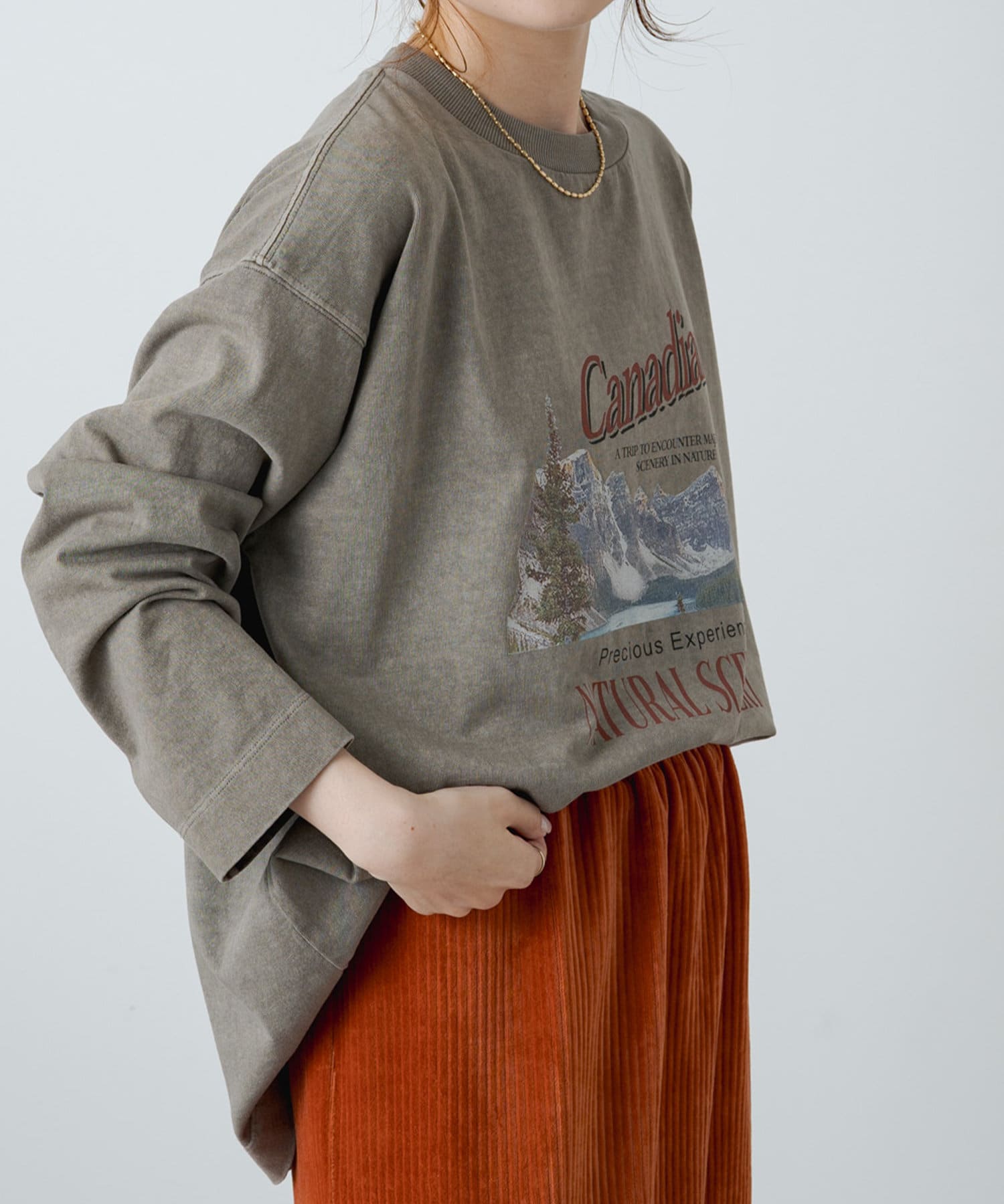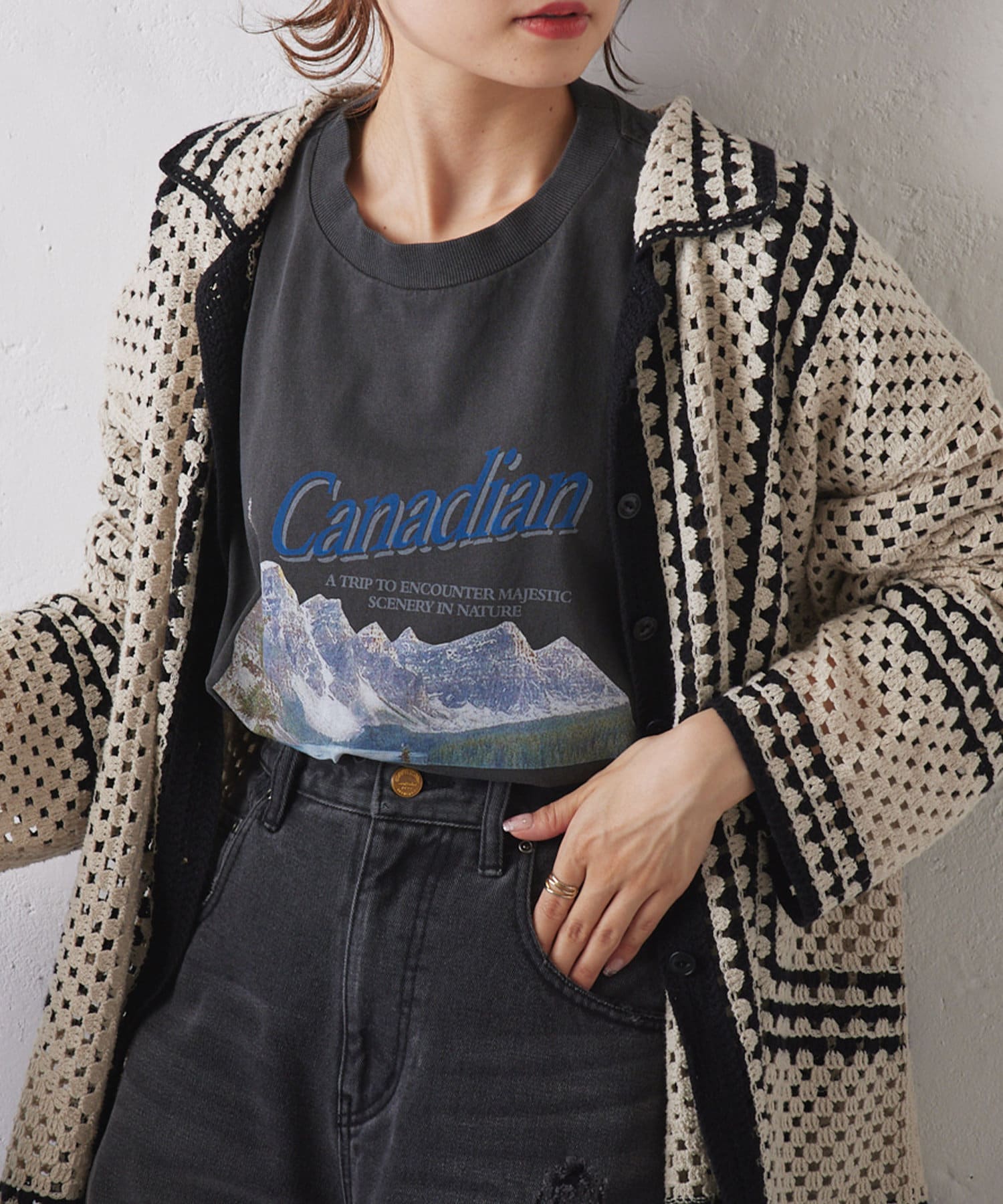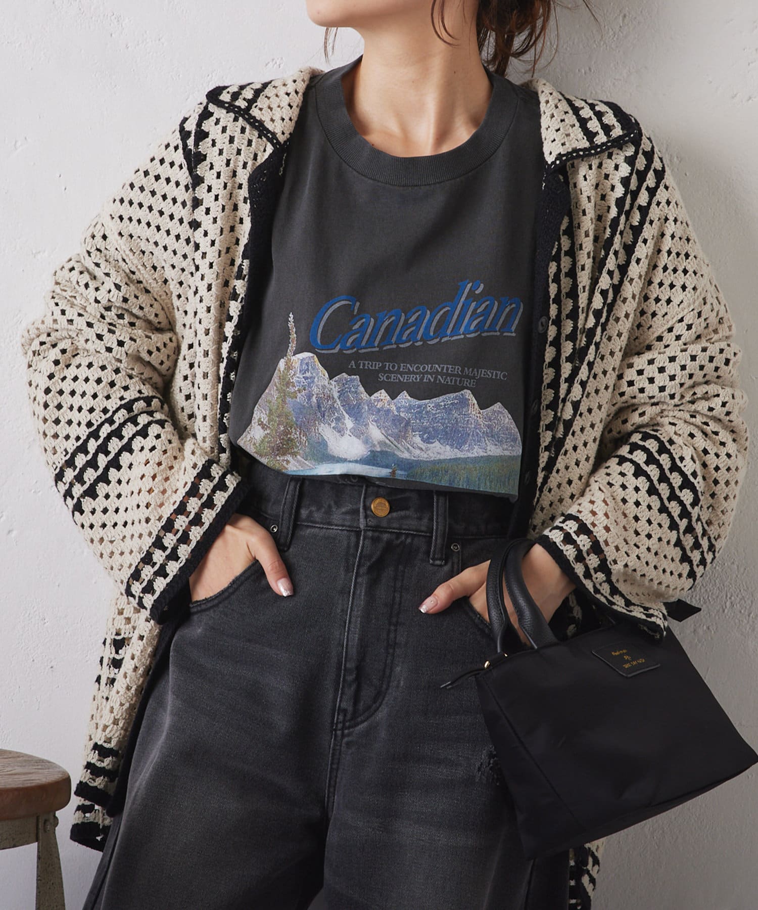キャッチーなデザインなので1枚着はもちろん、ジャケットやーカーディガンのレイヤード時にも抜群の存在感を発揮。