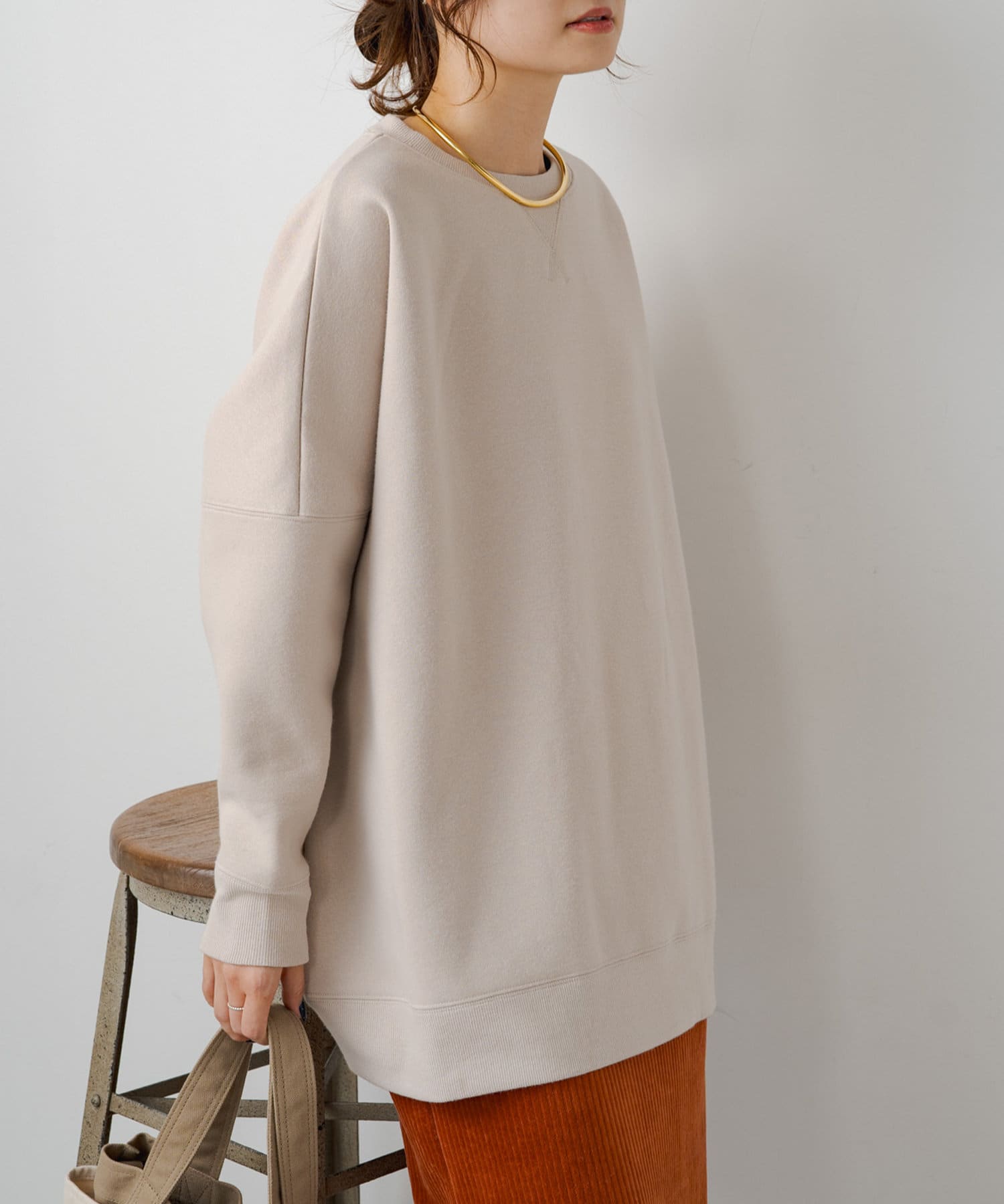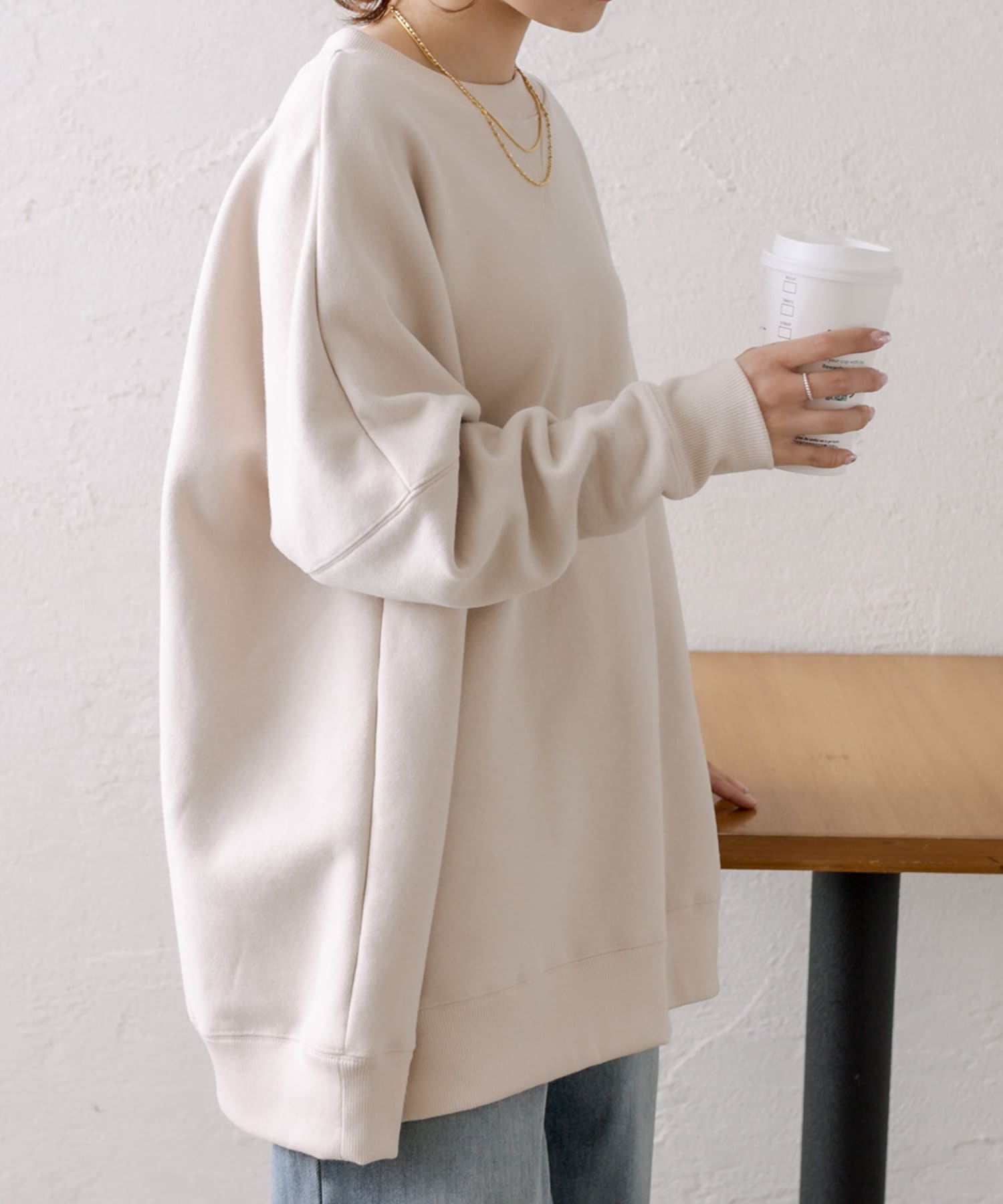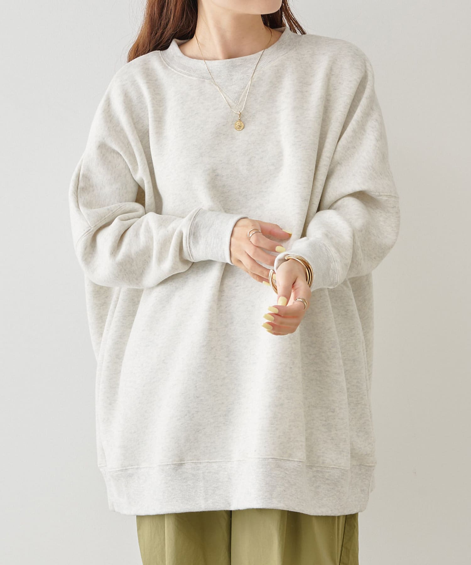 こなれ感たっぷりなオーバーサイズの裏起毛プルオーバー。