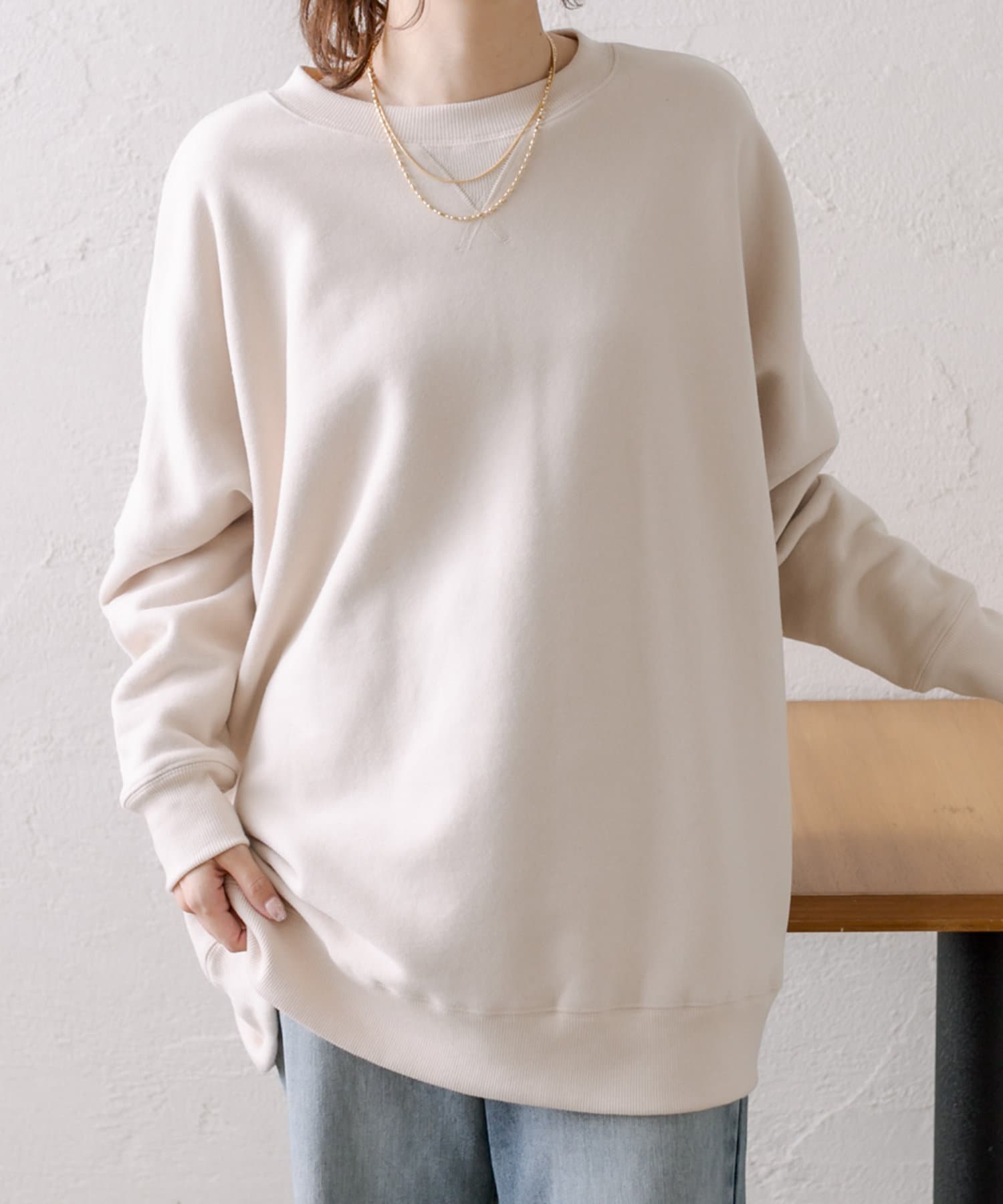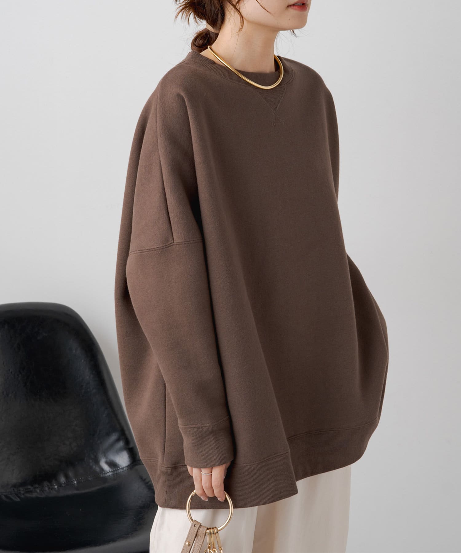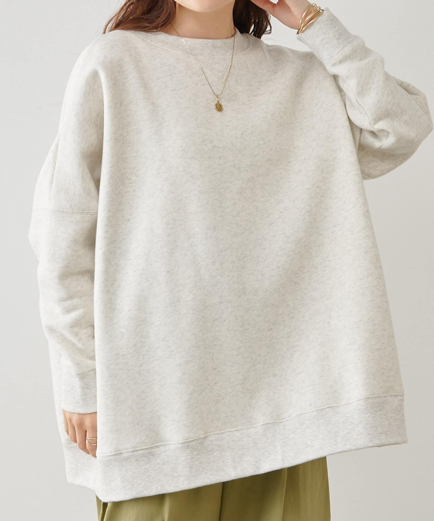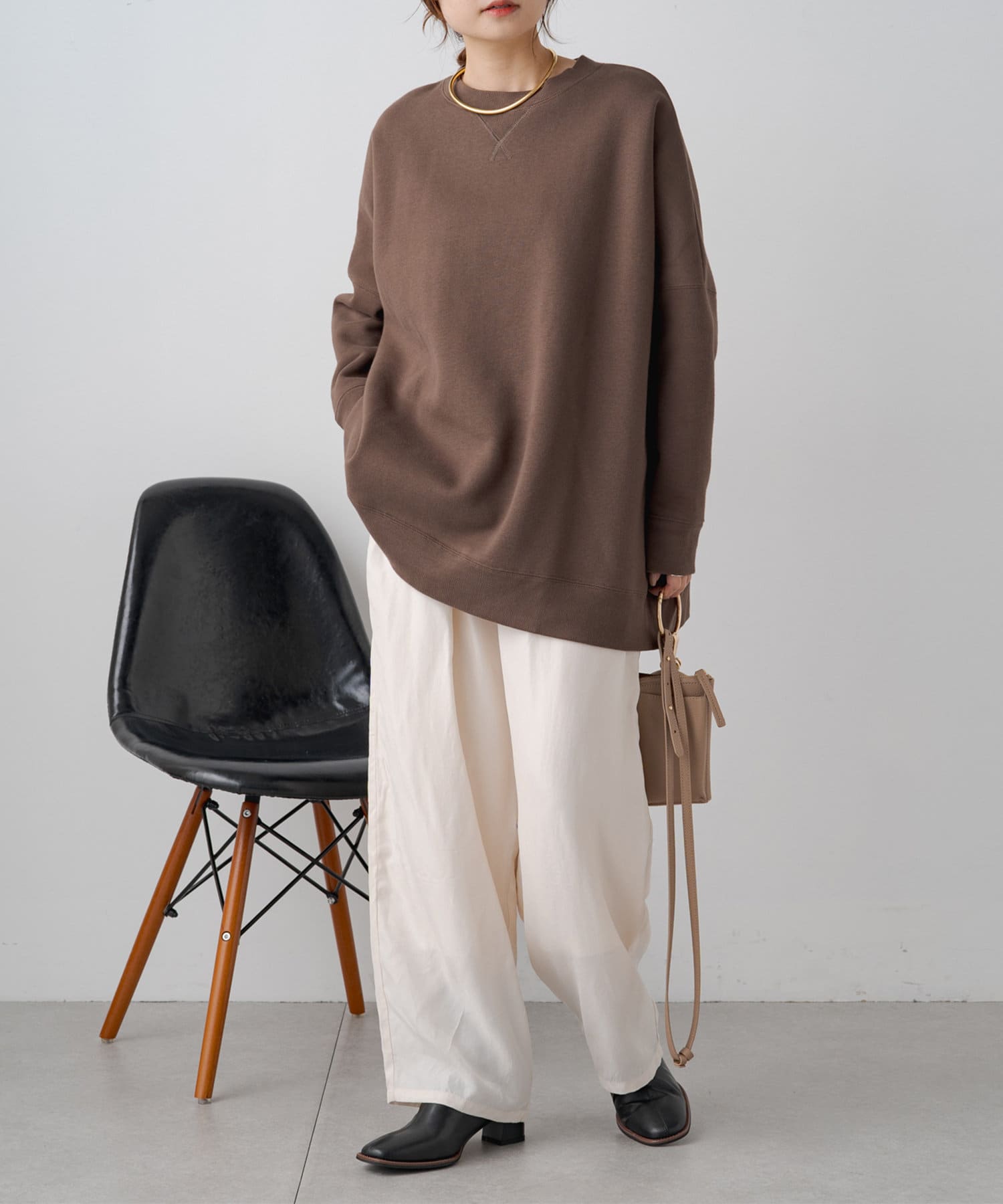 こなれ感たっぷりなオーバーサイズの裏起毛プルオーバー。