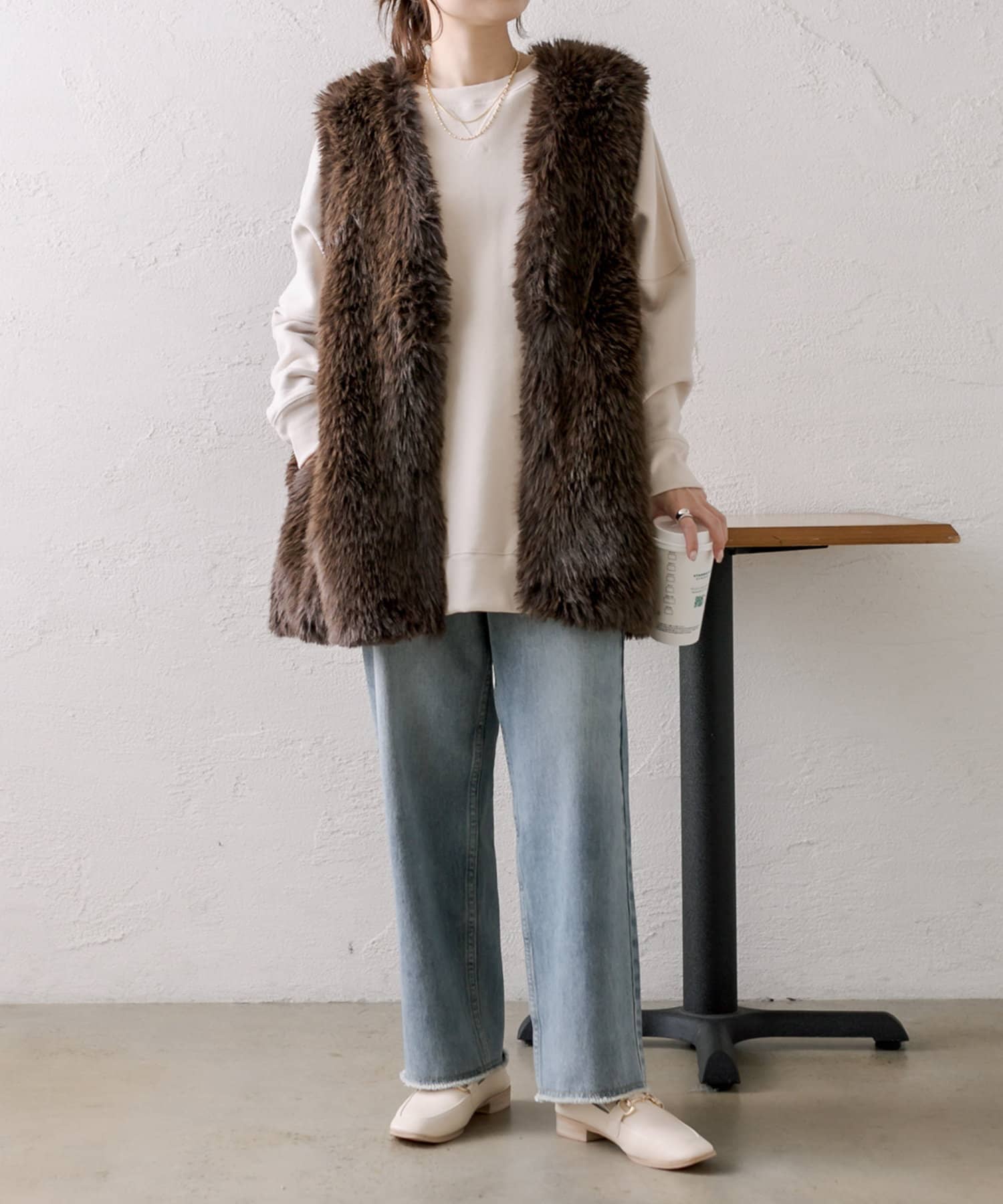 サイズ感:ヒップまで隠れるオーバーサイズで暖かい着心地です。