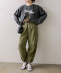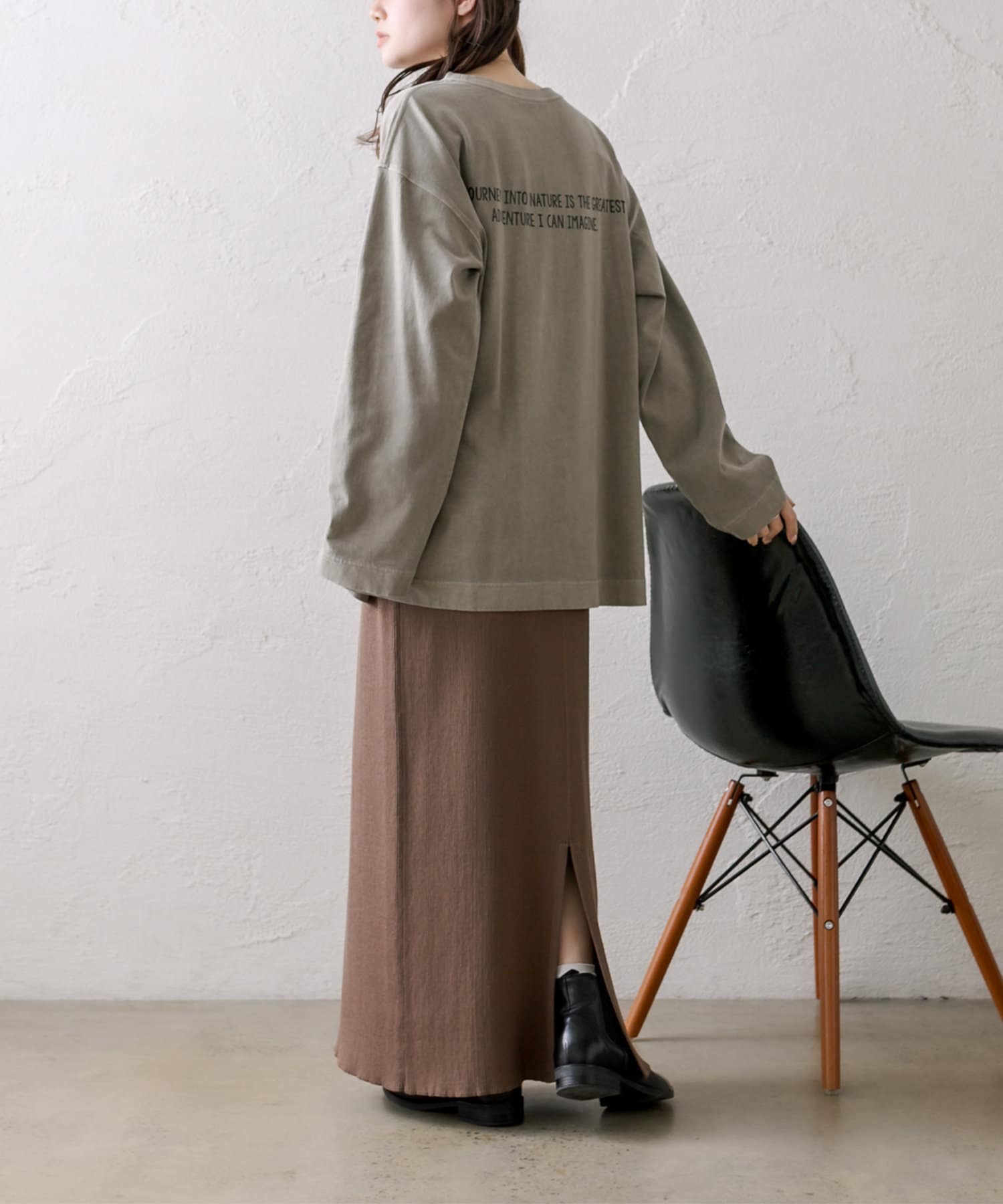 肩の落ちるラグランスリーブや身体のラインを拾わないゆとりのあるサイズ感がリラックスした着心地。