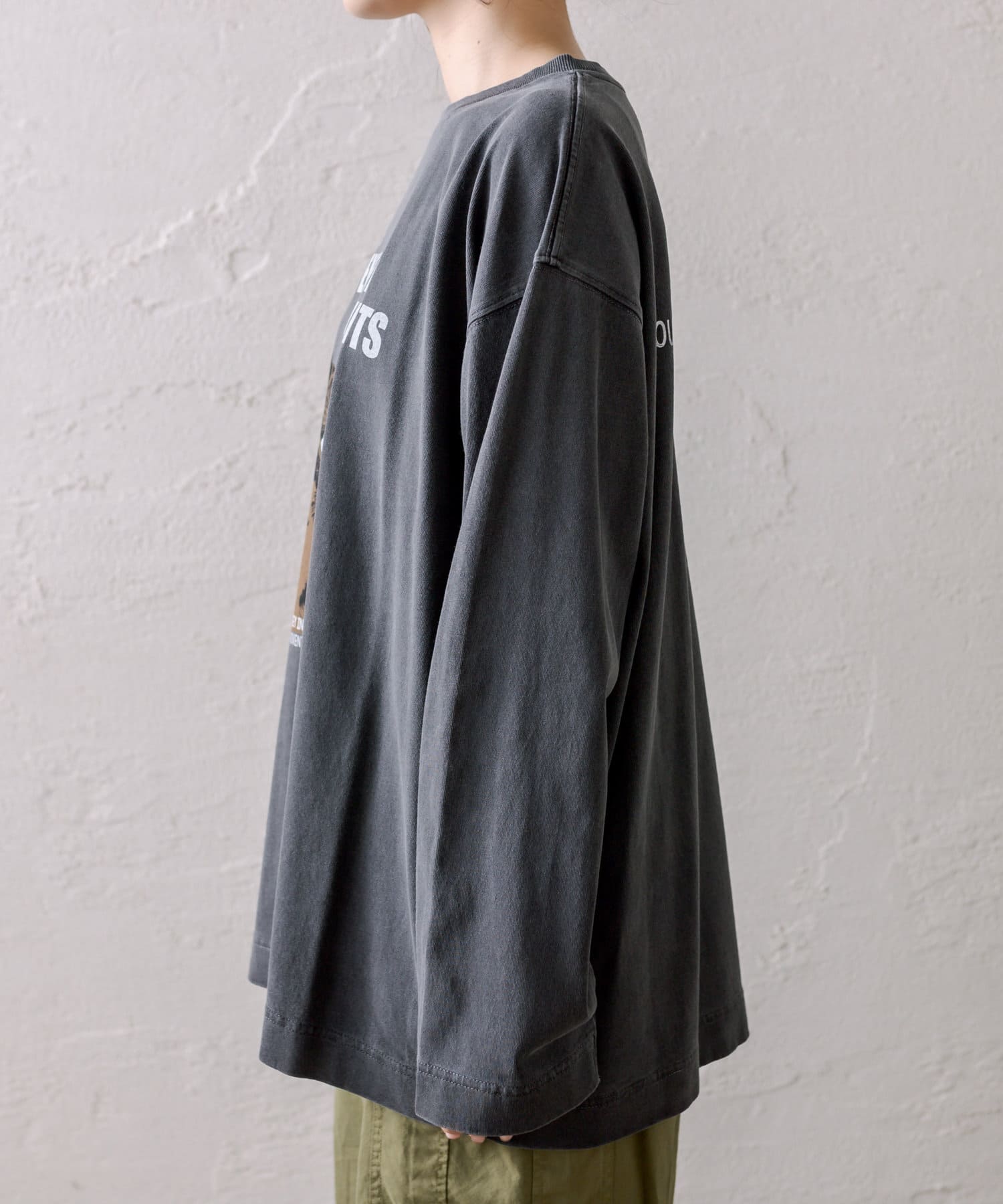 サイズ感:ゆとりのあるオーバーサイズでラフな着心地。お尻にかかる長めの着丈ですがタックインも可能です。