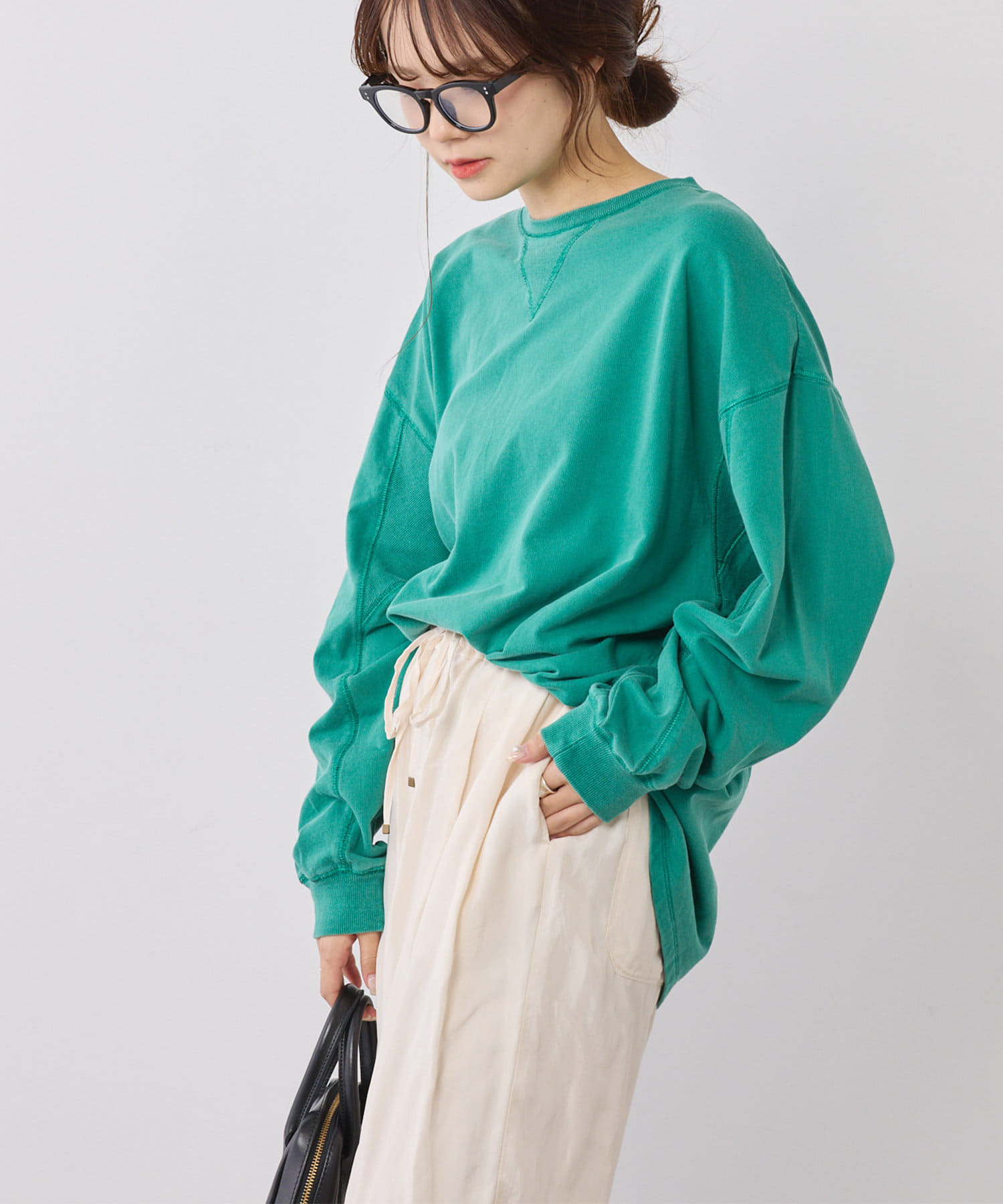 ビンテージ感のあるピグメント染めでこなれ感のある雰囲気に。