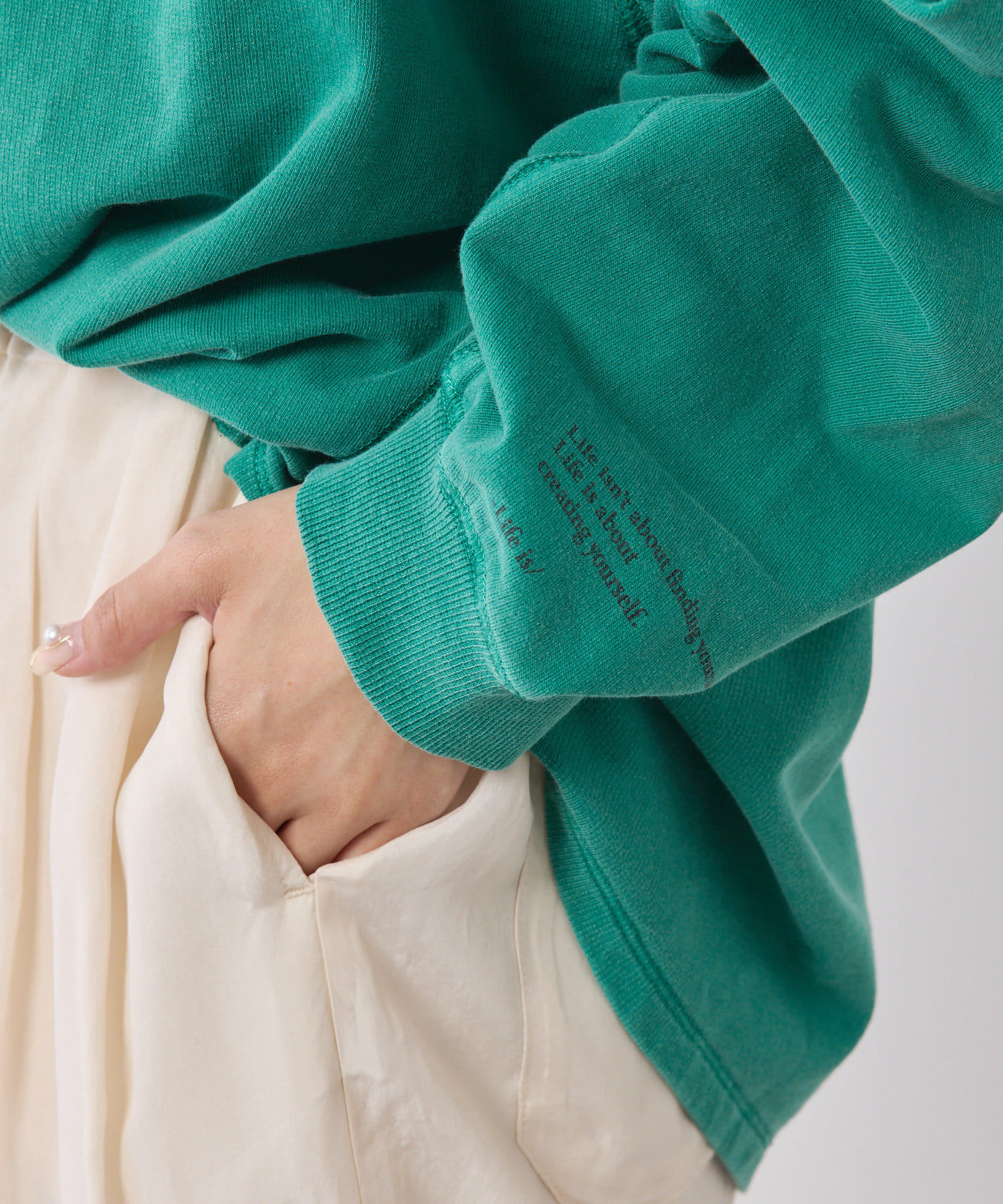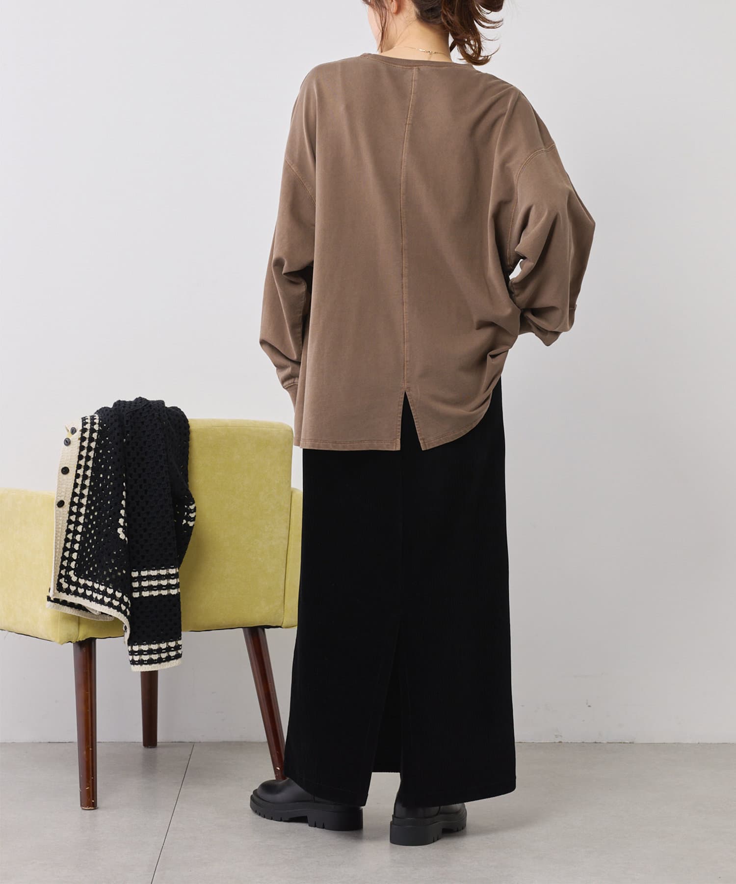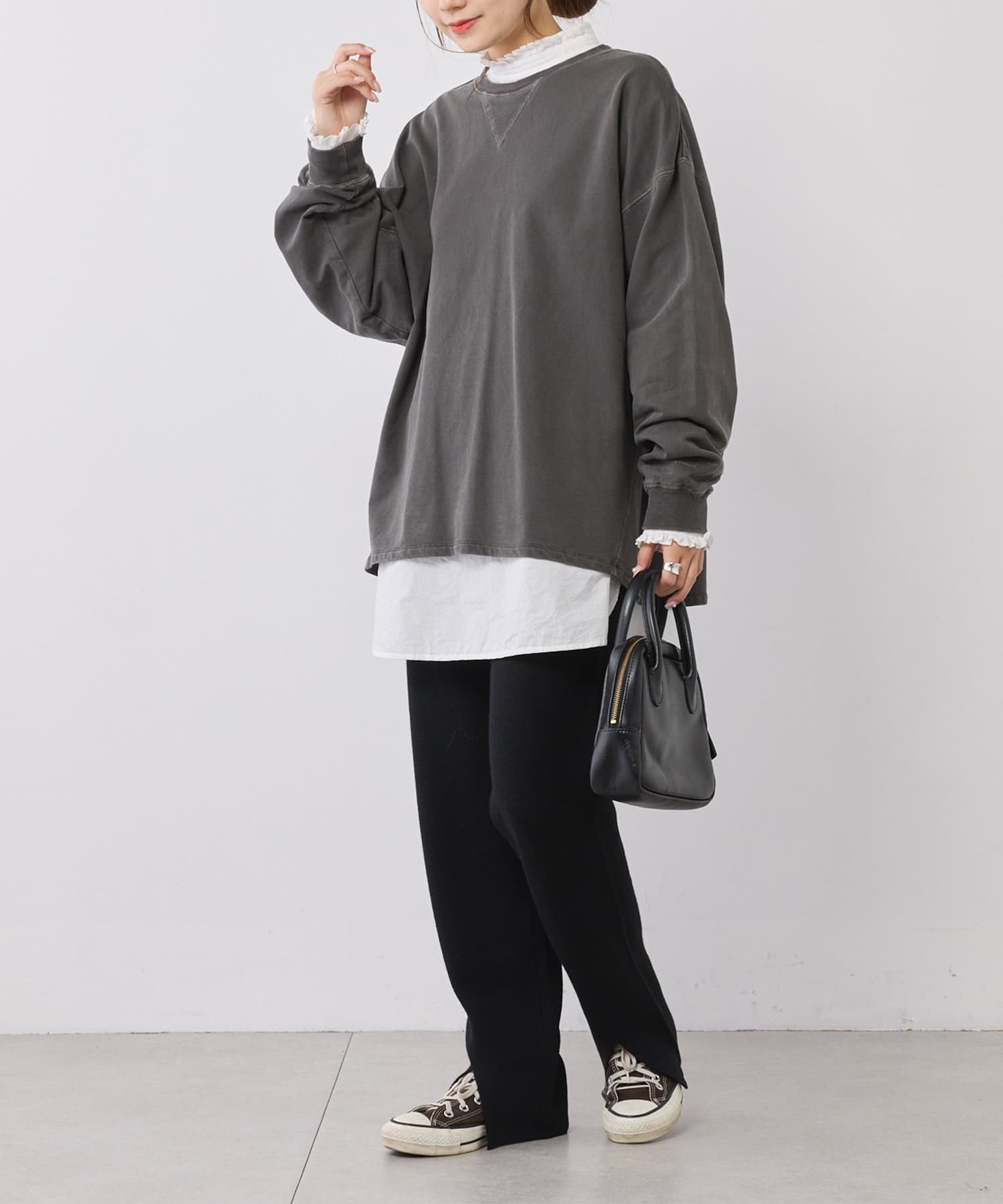 サイズ感:たっぷりゆとりのあるオーバーサイズ。腰回りもしっかりカバーできます。