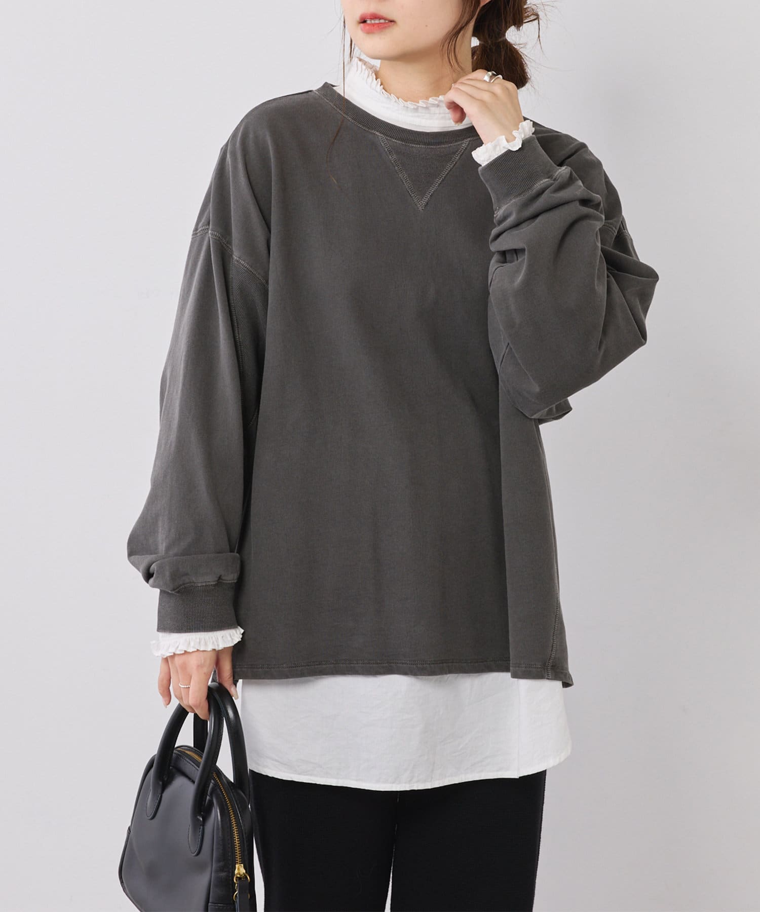 ボトムスに合わせてインもアウトもできるシルエットで、どんなスタイルにも決まる万能アイテムです。