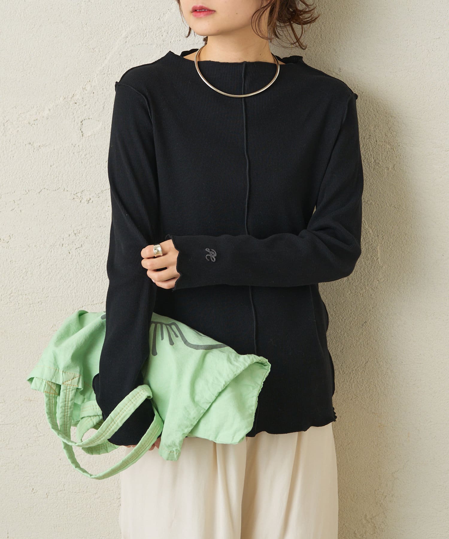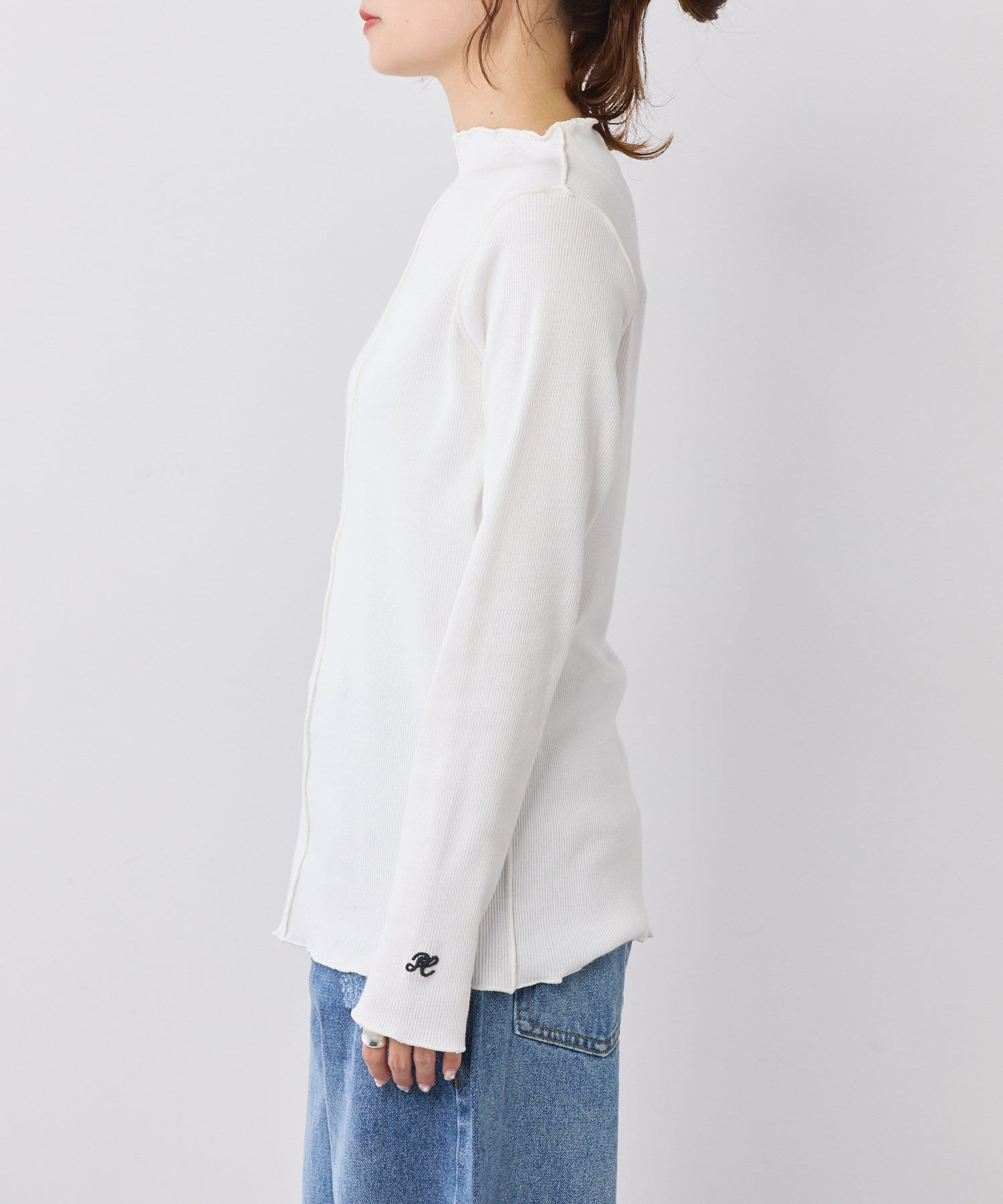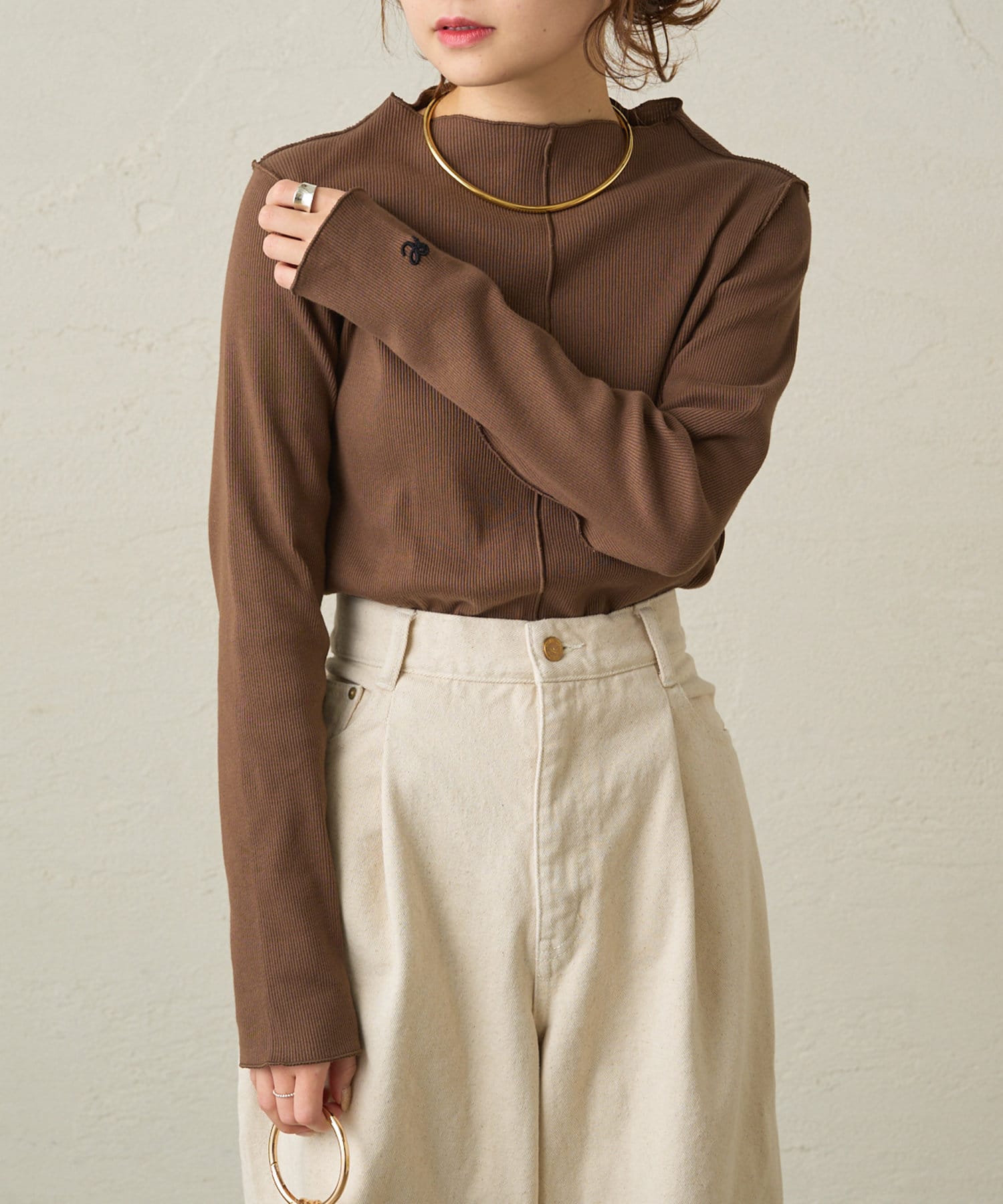 ニュアンスロゴ刺繍プチハイネックテレコメローカットソー