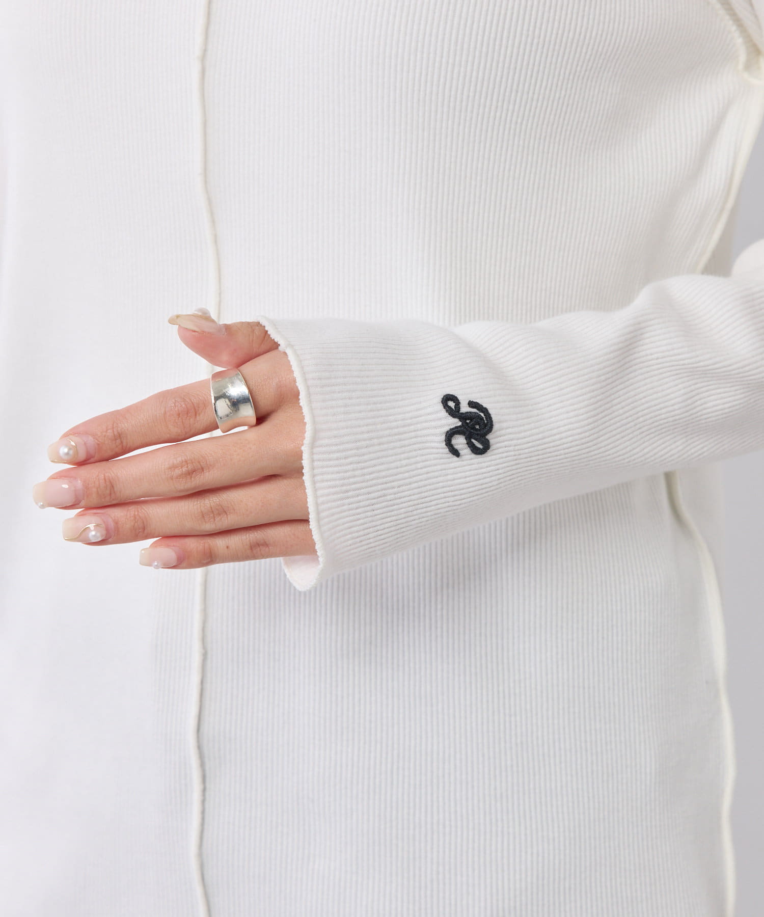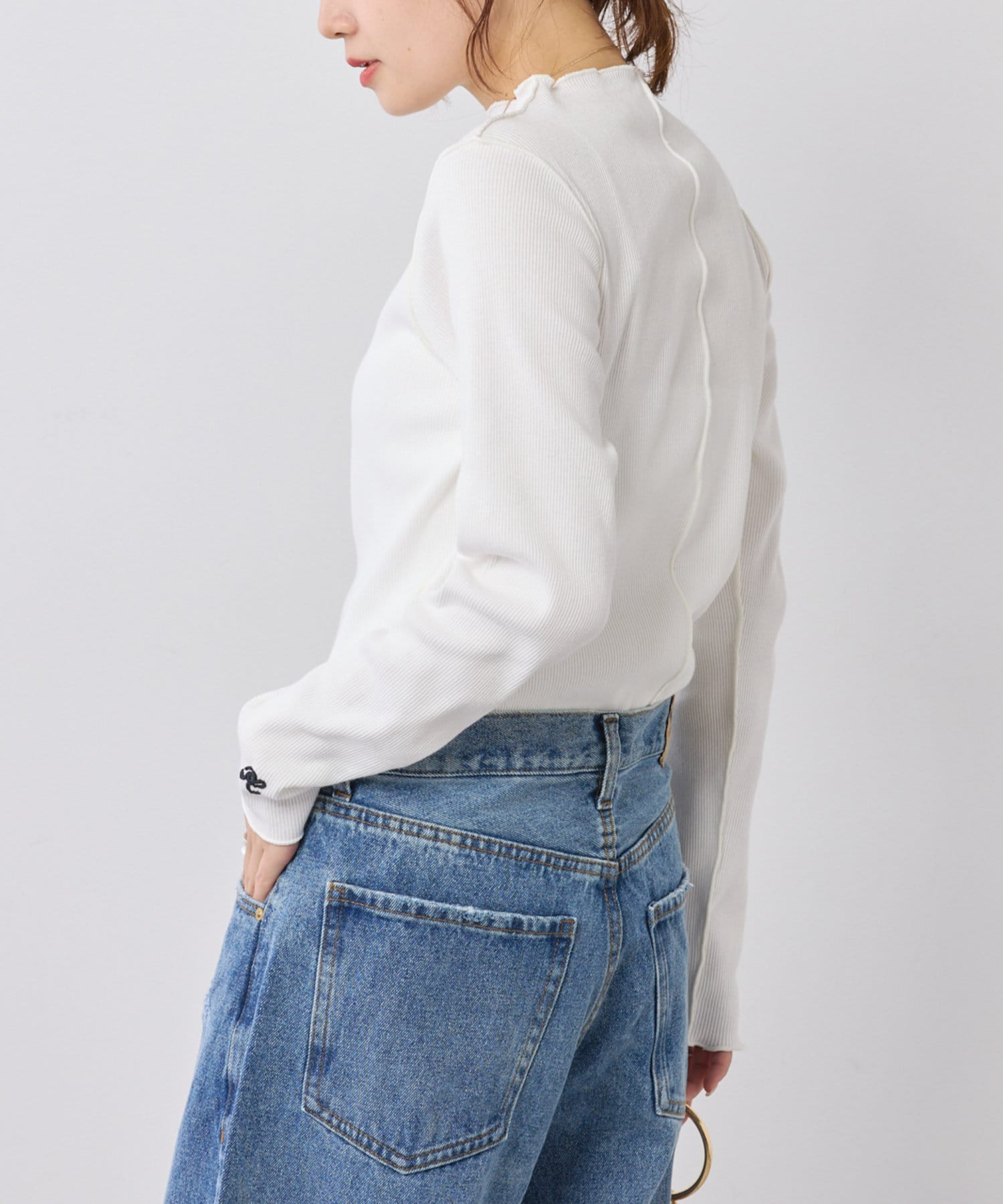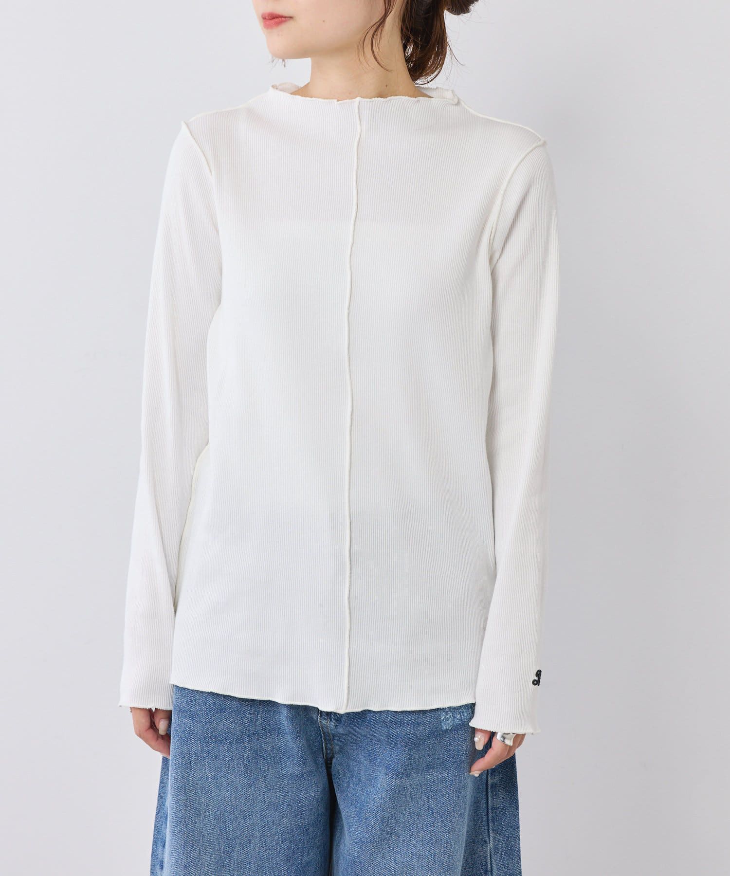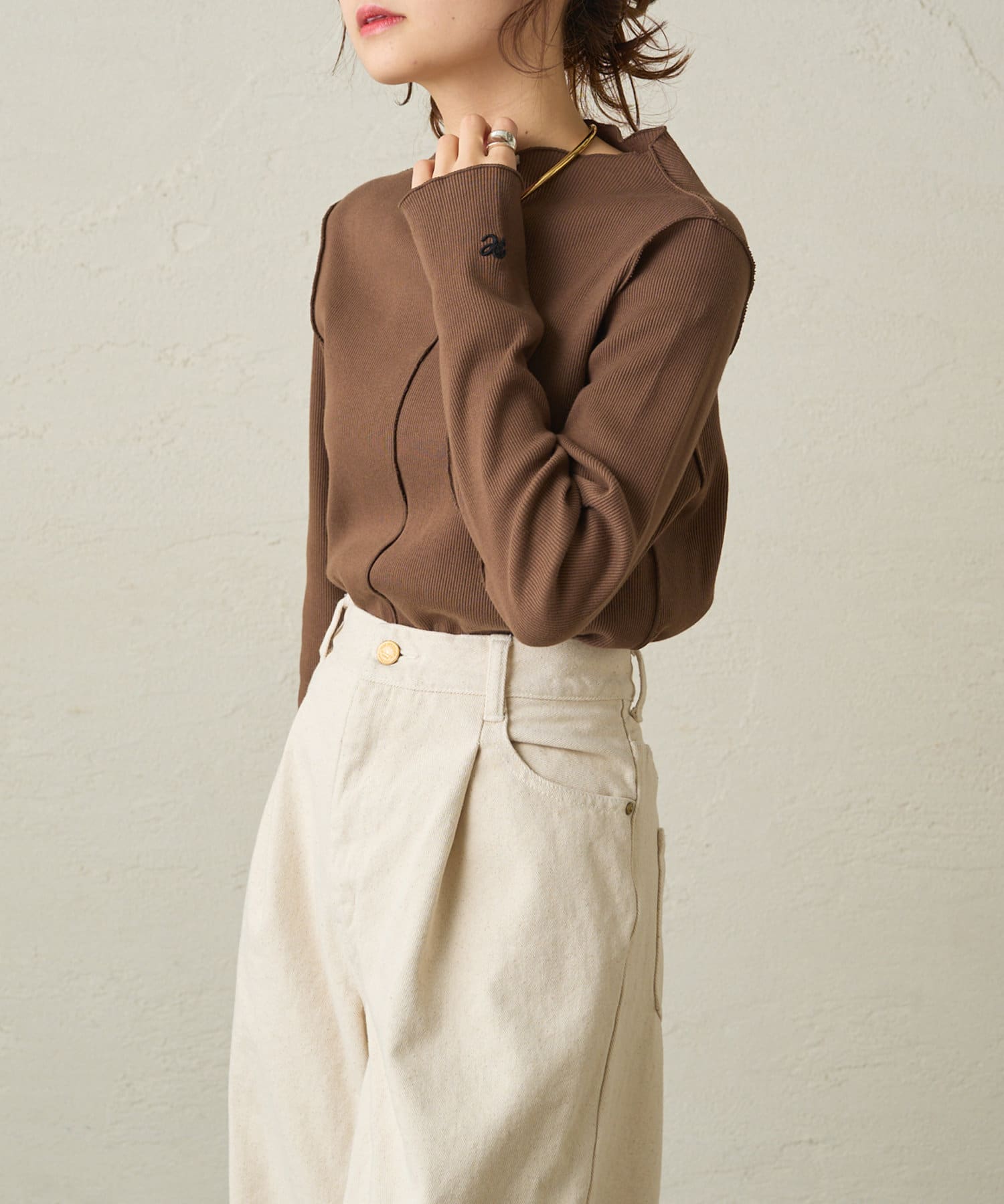 ニュアンスロゴ刺繍プチハイネックテレコメローカットソー