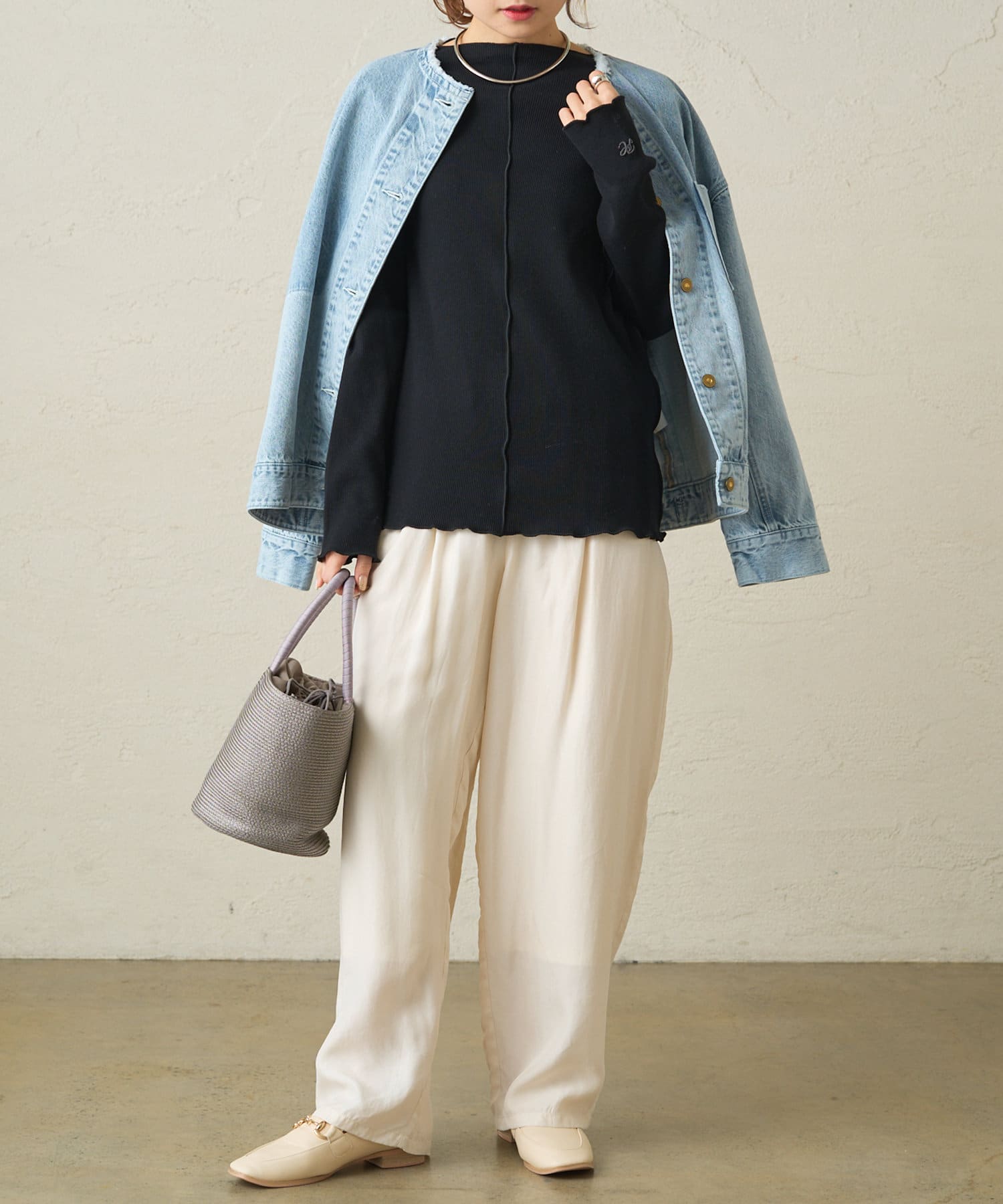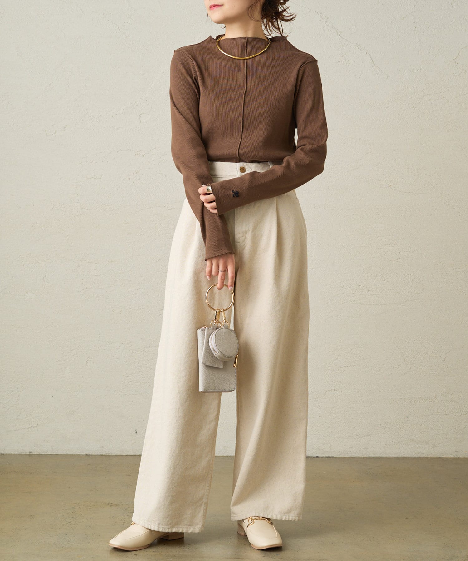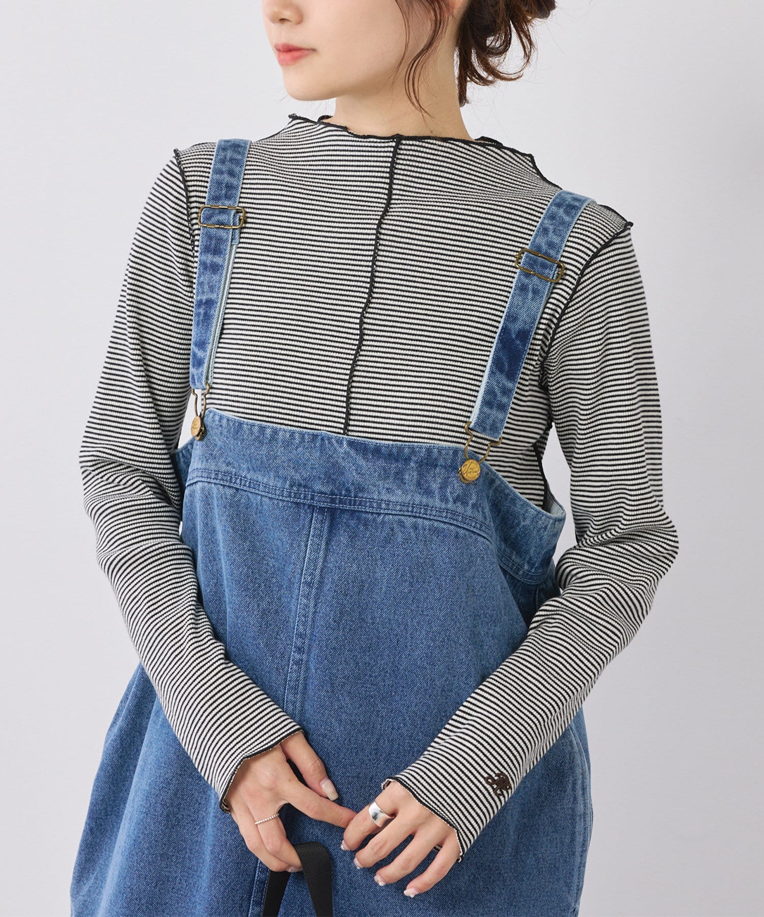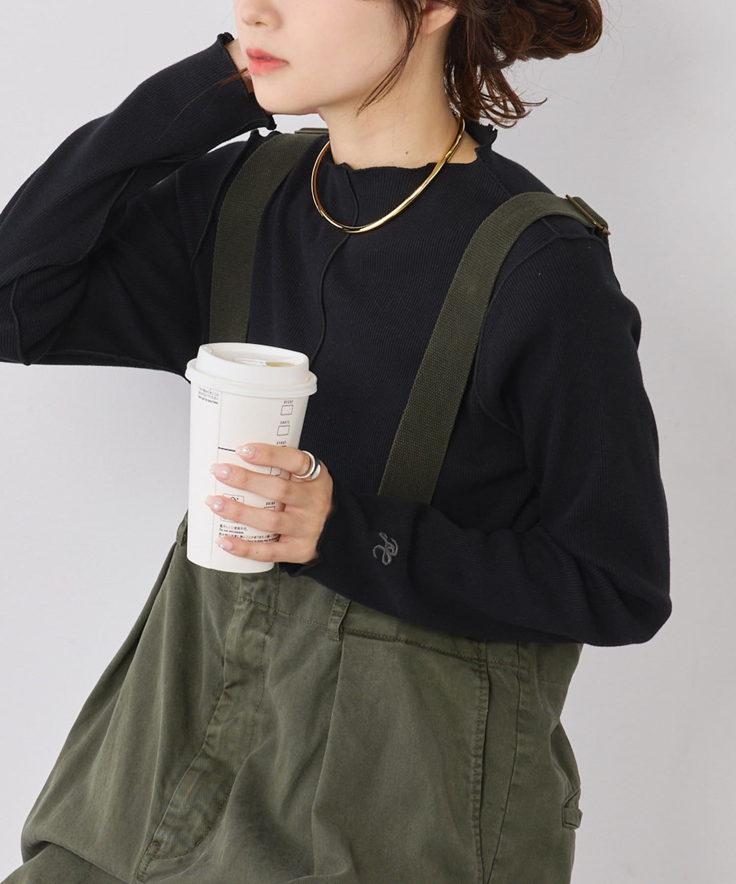 プチハイネックのデザインがキャミワンピースやサロペット、カーディガンなどレイヤードに重宝します。