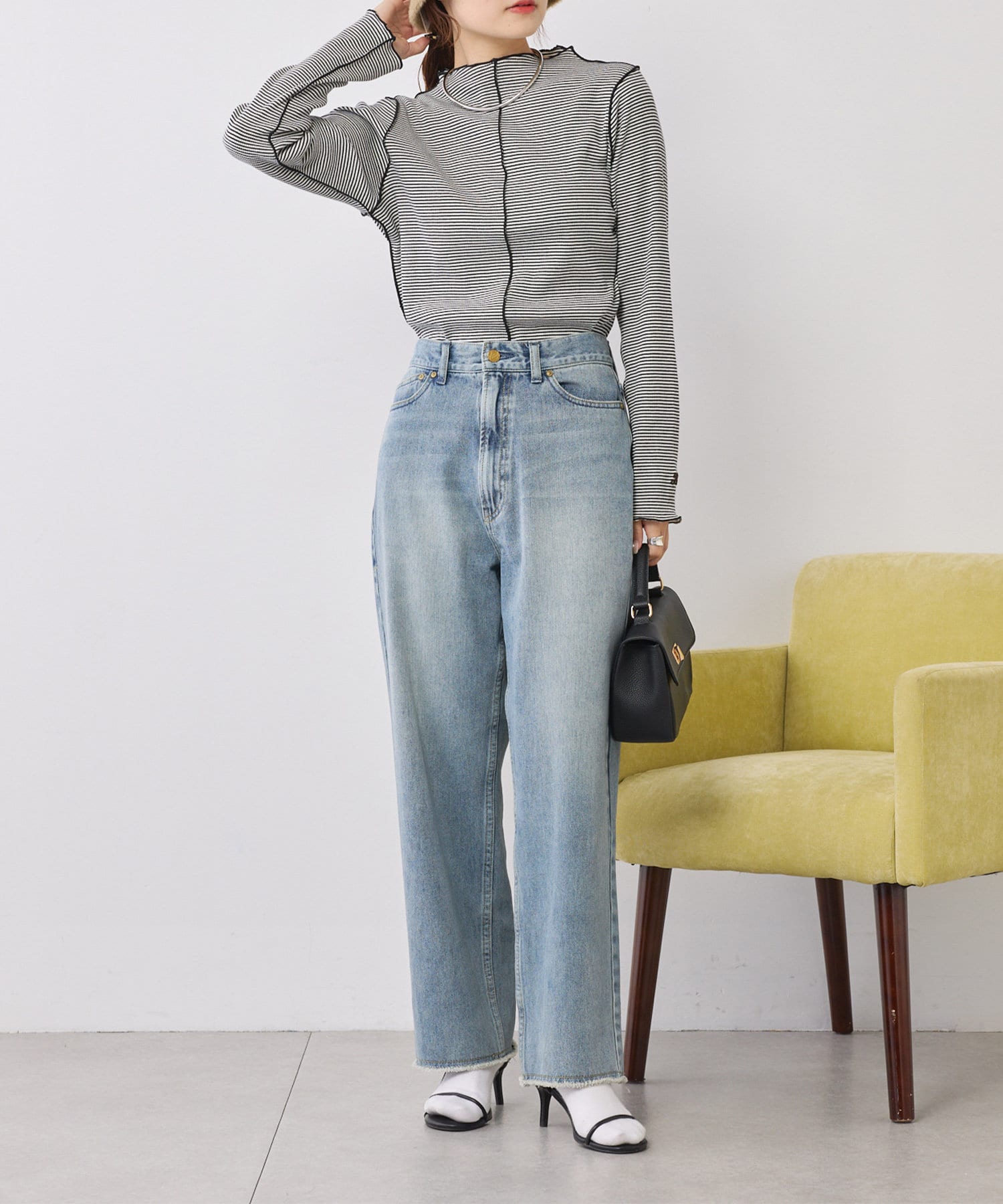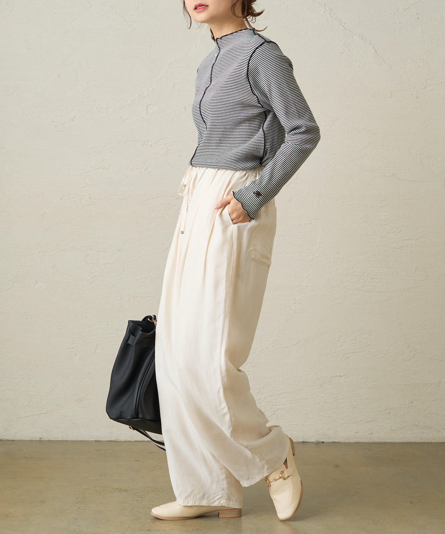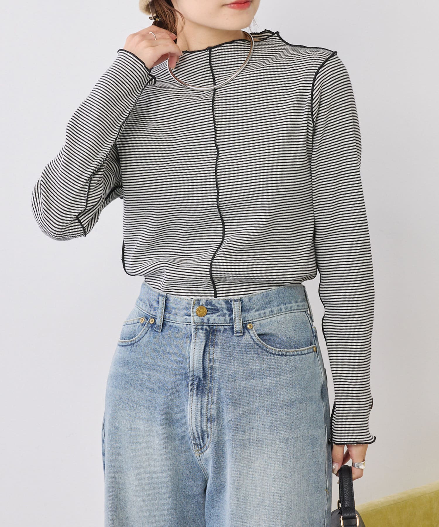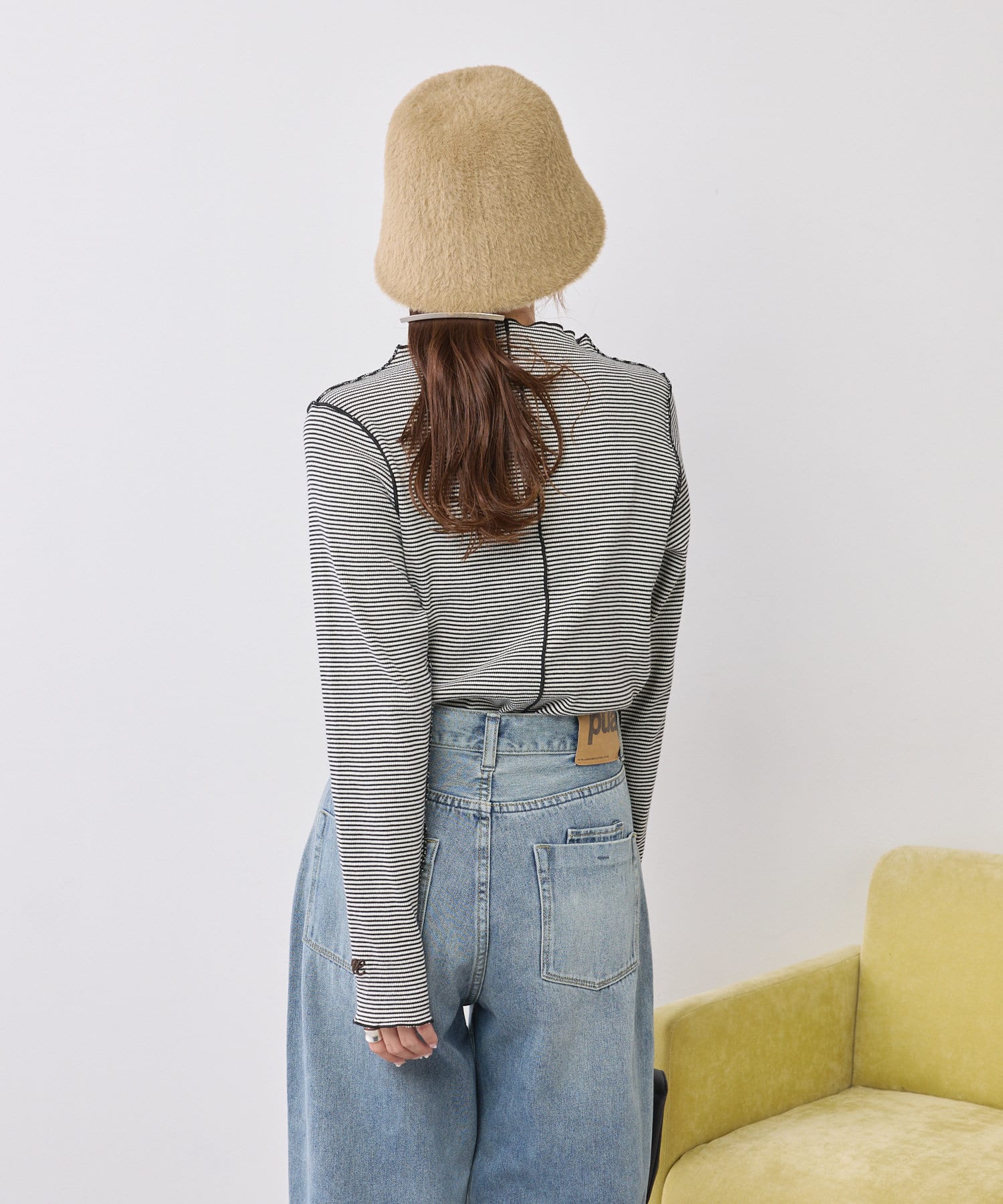 プチハイネックのデザインがキャミワンピースやサロペット、カーディガンなどレイヤードに重宝します。
