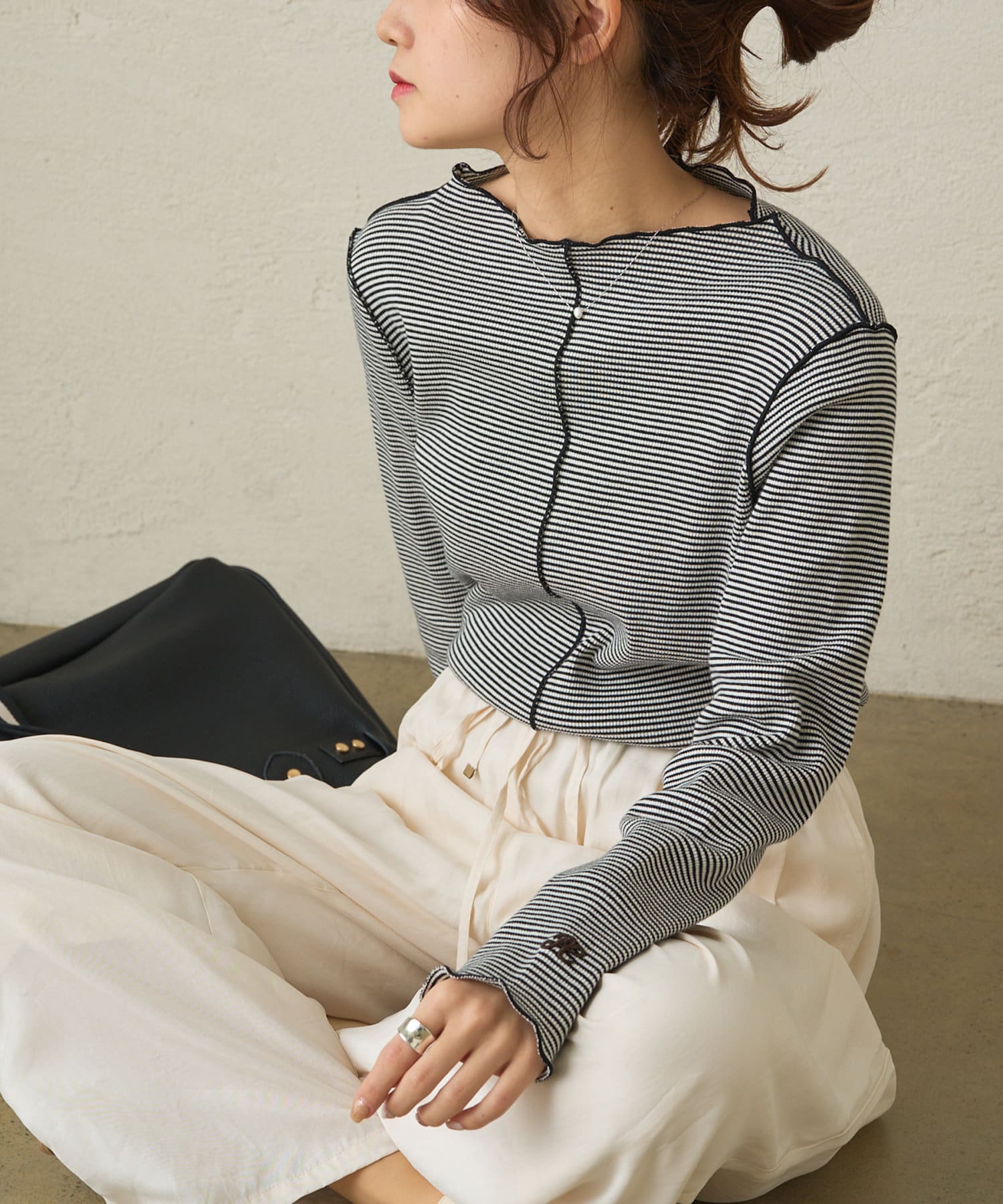 オフ/ブラウン/ブラック/ボーダーの4色展開。