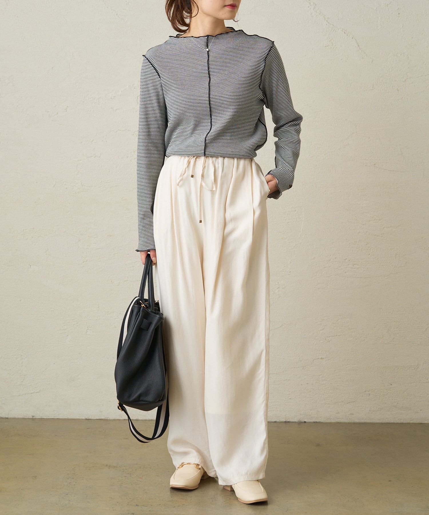 デニムやワイドパンツに1枚でさらっとした着こなしはもちろん
