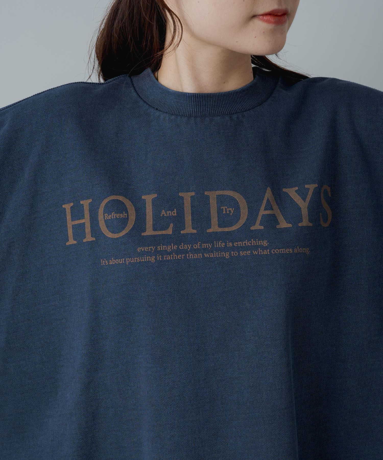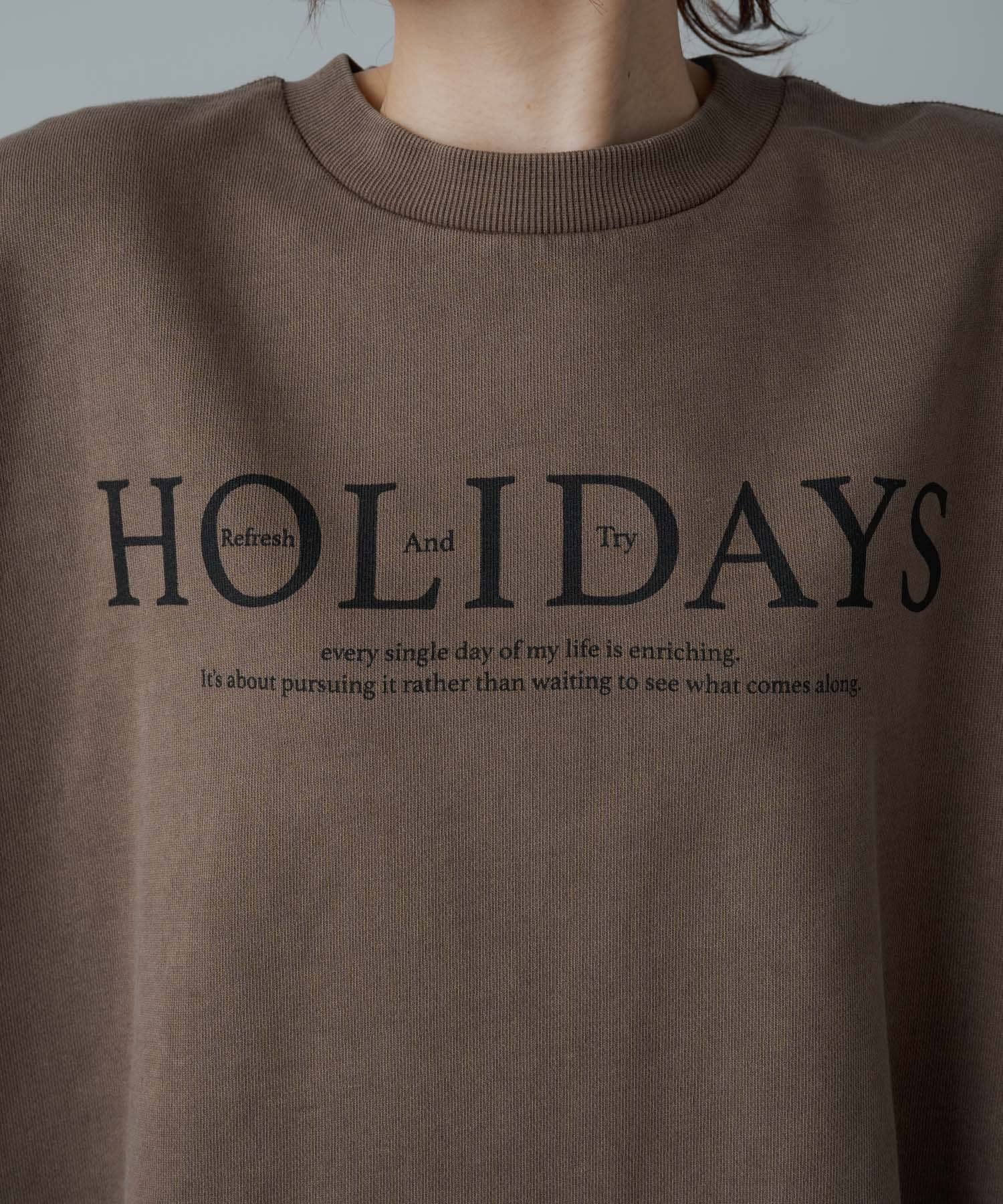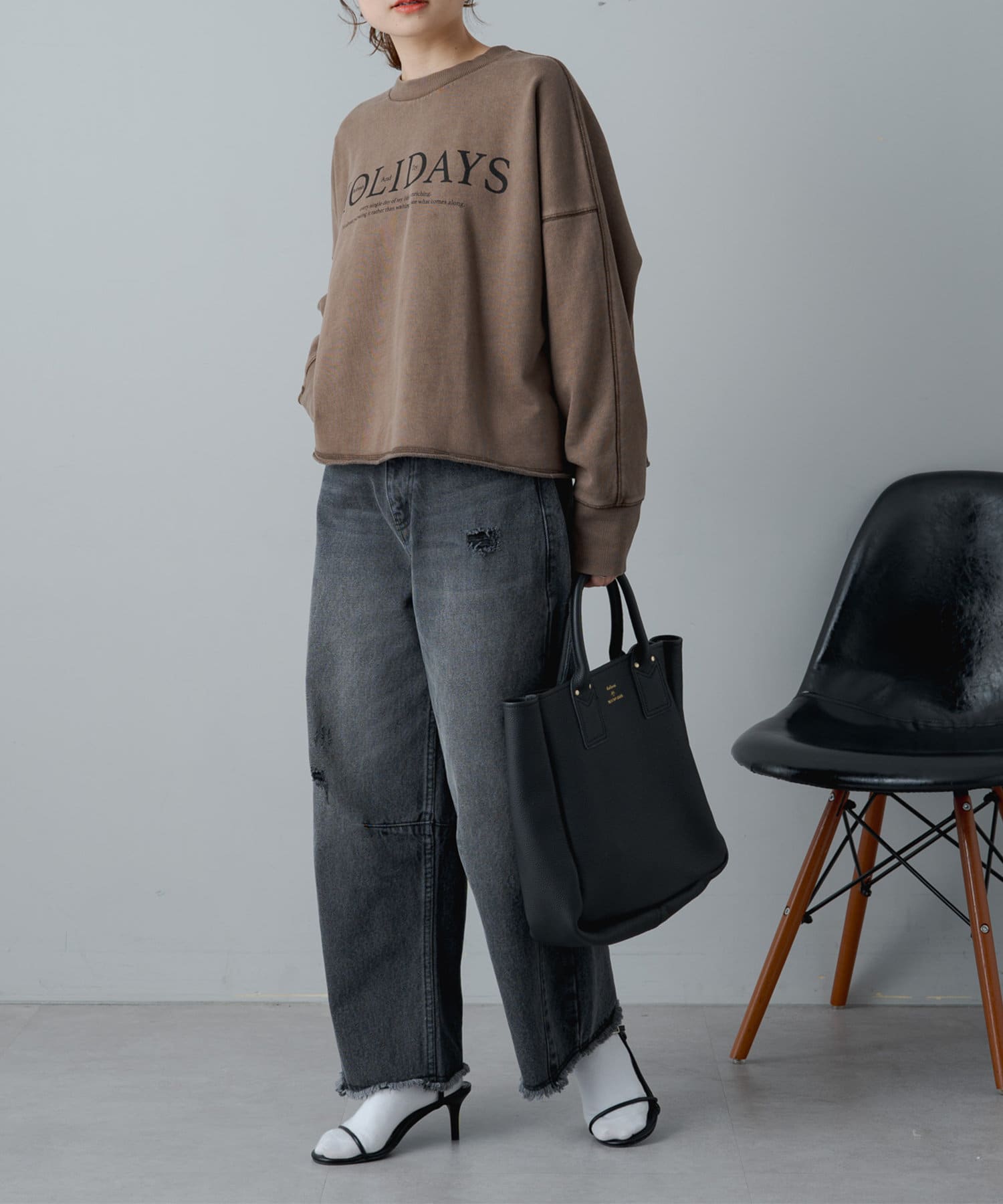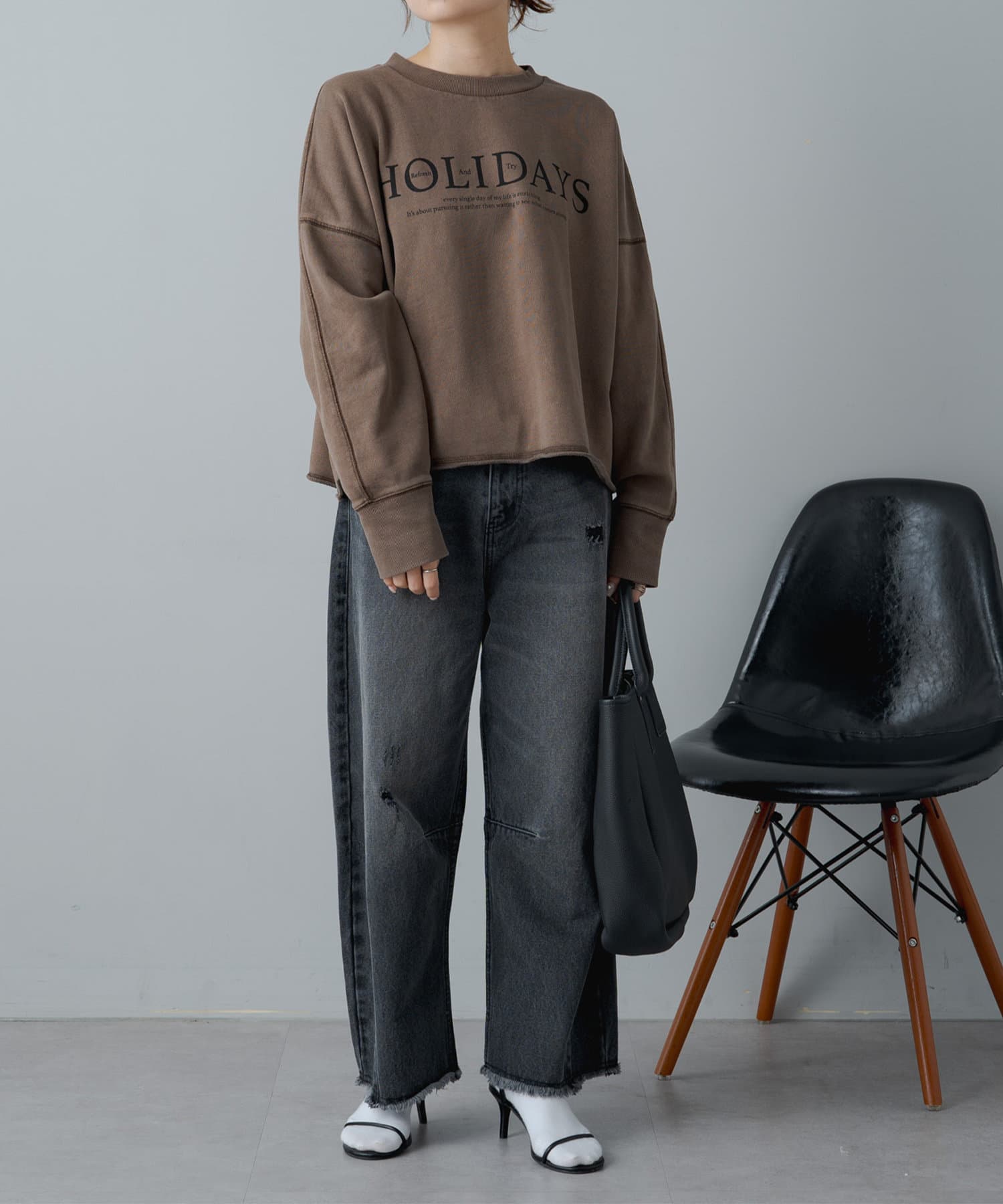 トレンドライクなショート丈が大人のカジュアルスタイルをアップデートするロゴプリントスウェット。