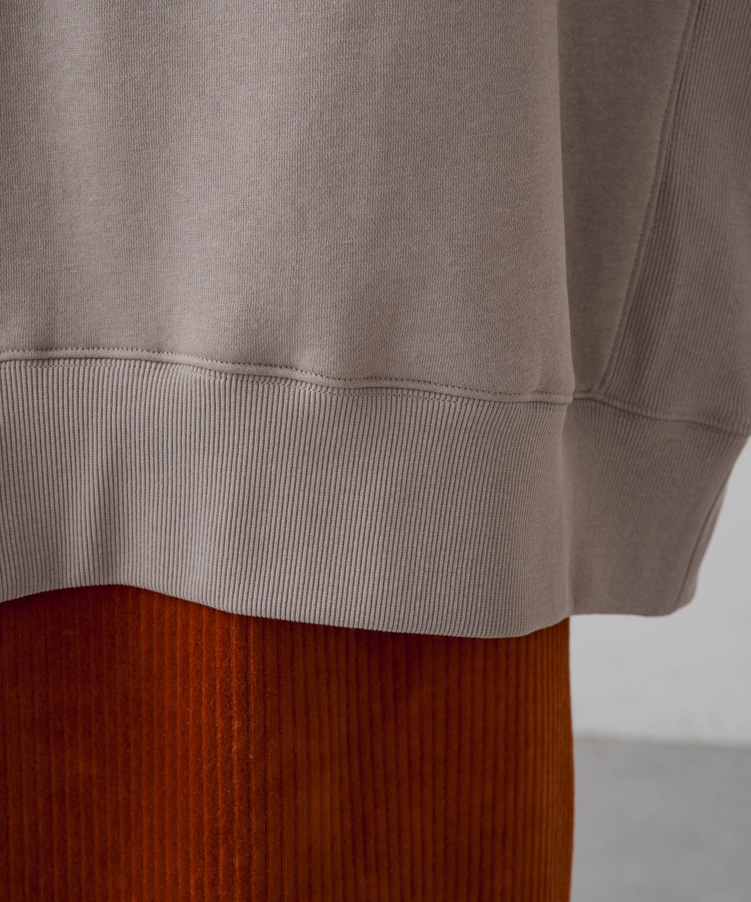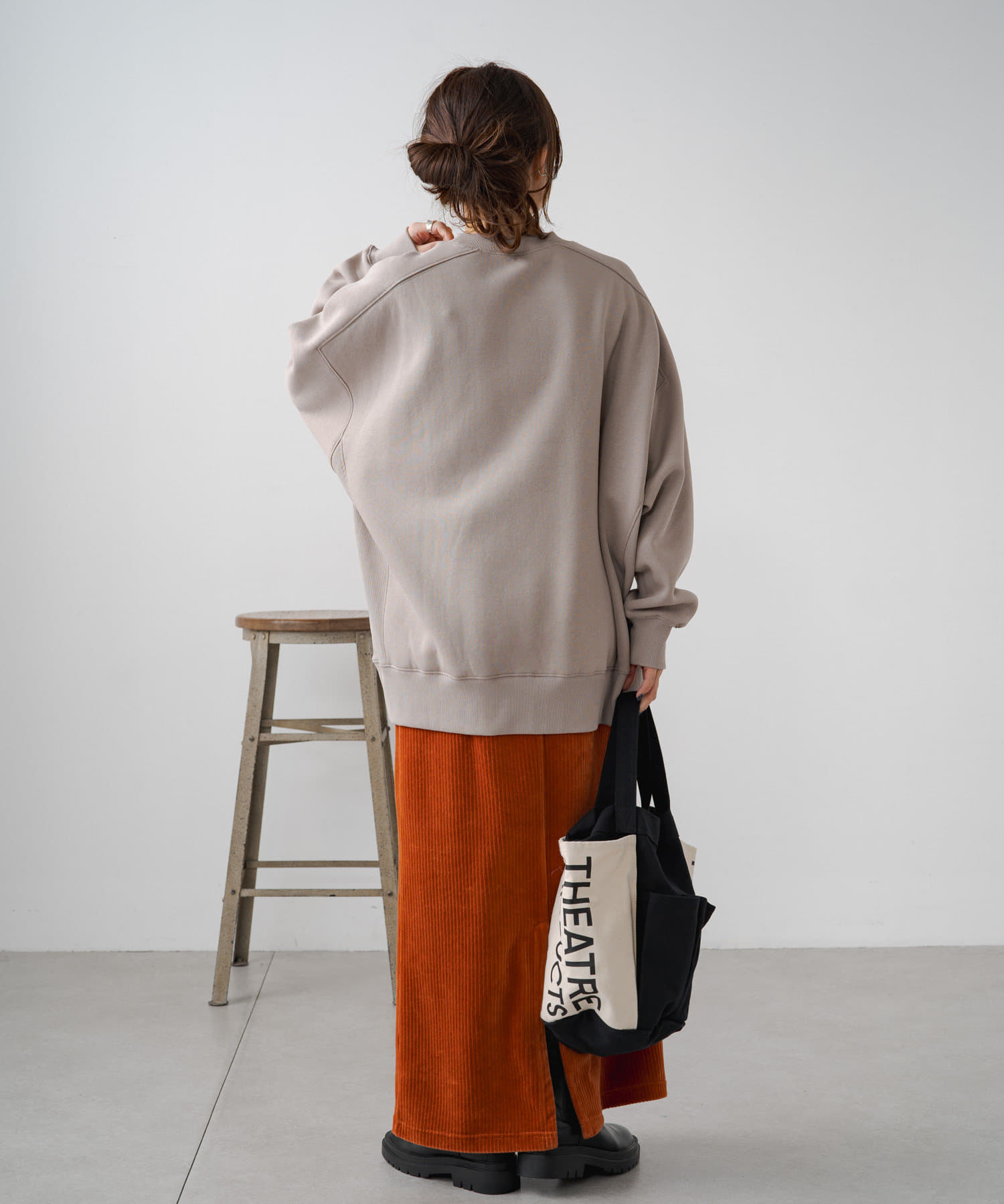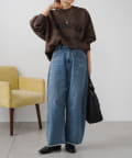 ゆとりのある身幅なので、ハイネックトップスなどインナーとのレイヤードも楽しめます。