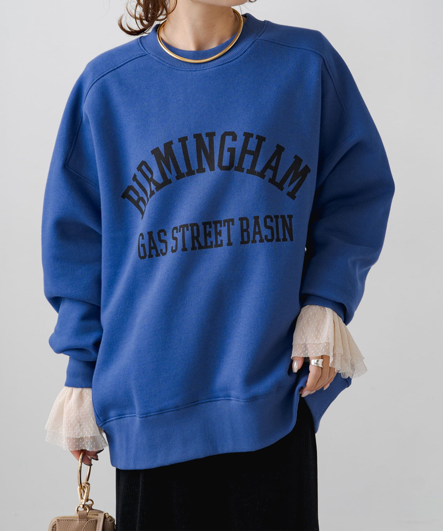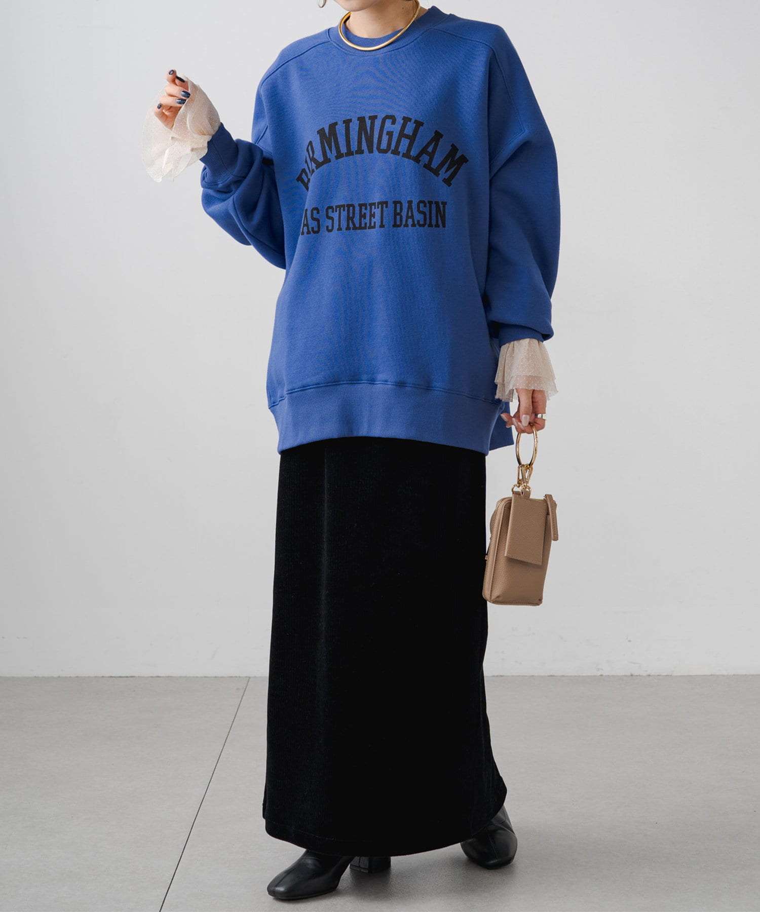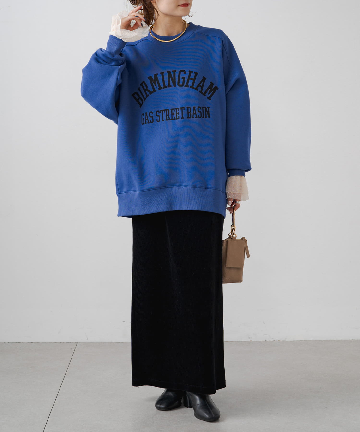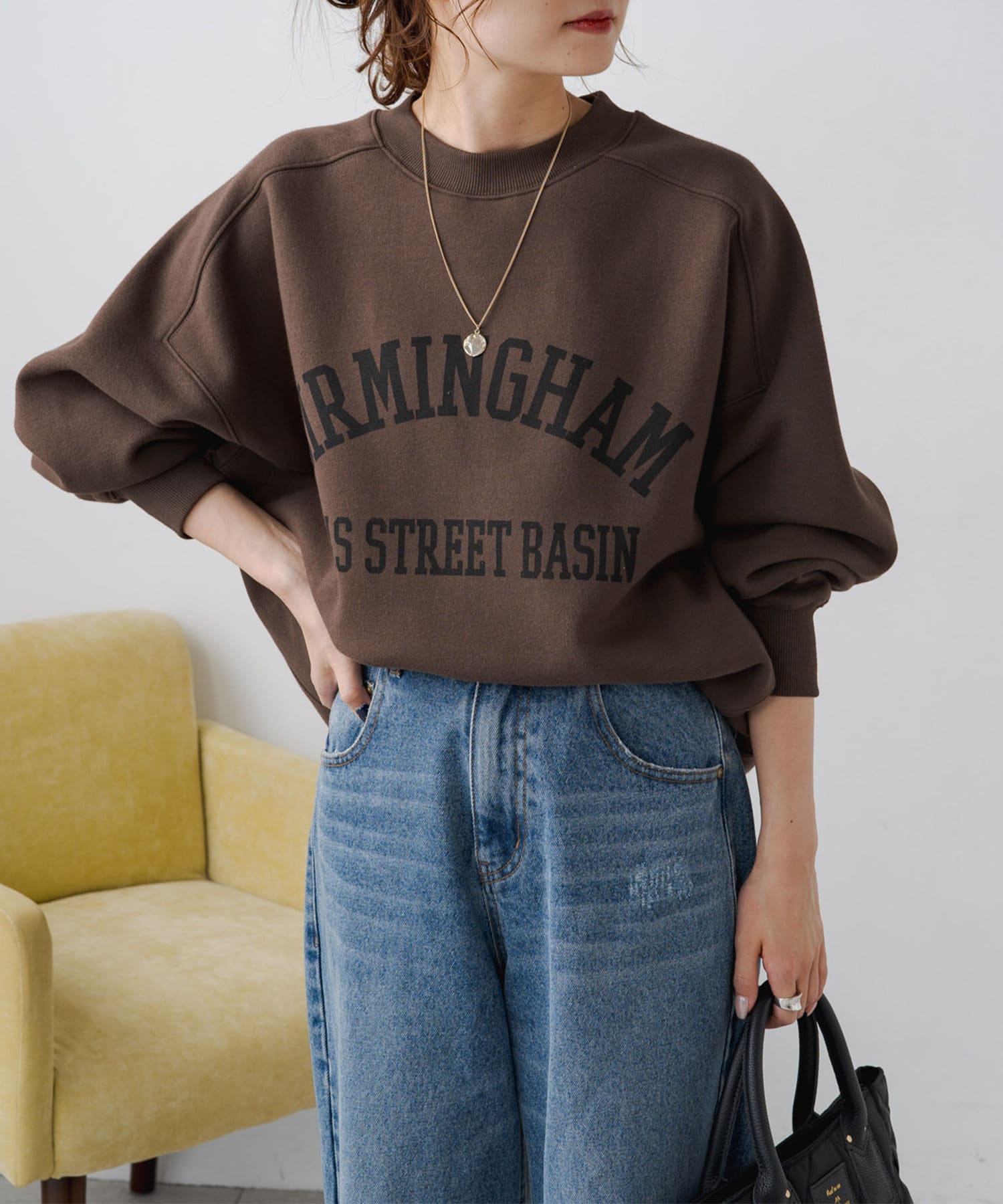 秋冬のメイントップスとして最適なロゴプリントプルオーバー。