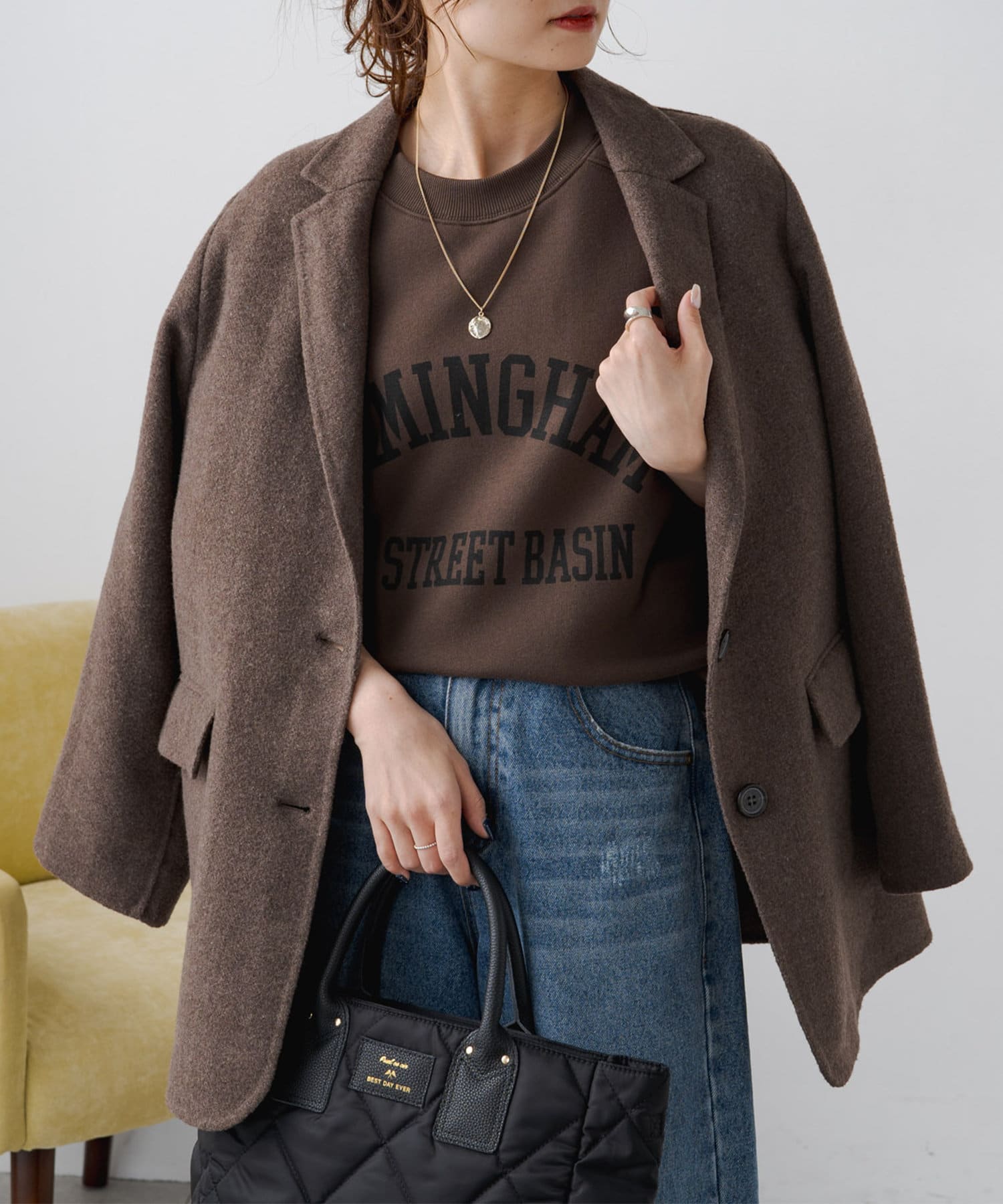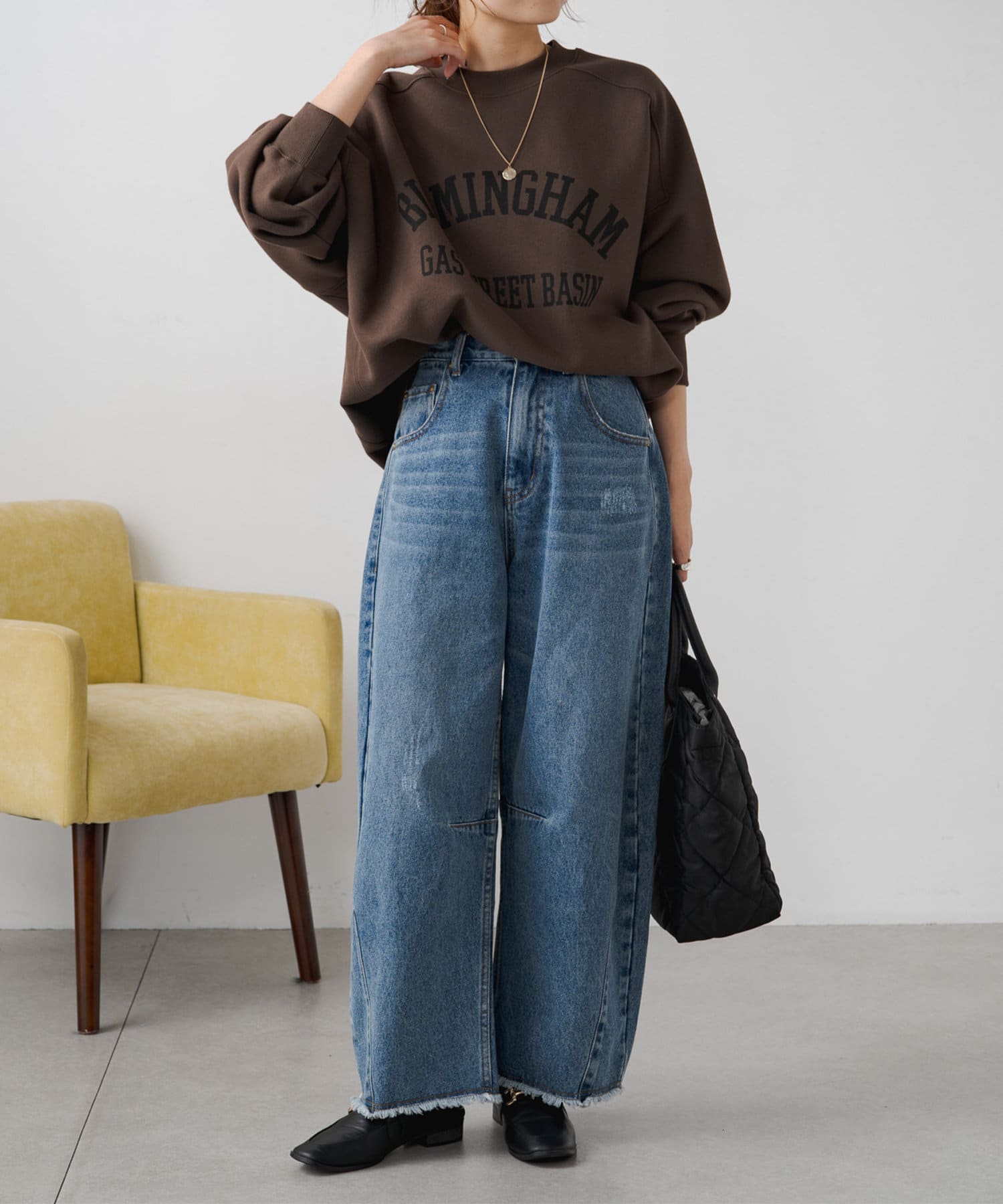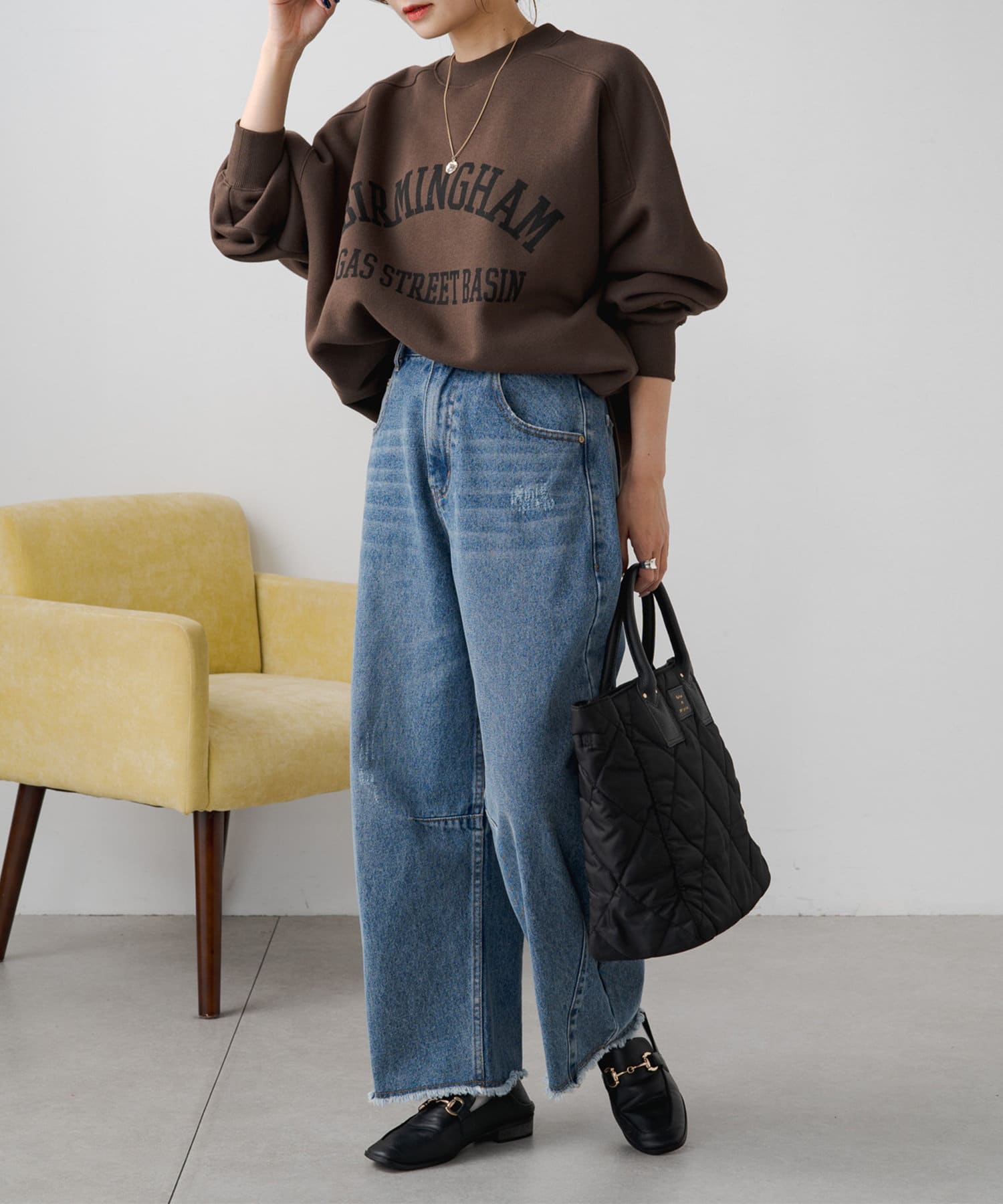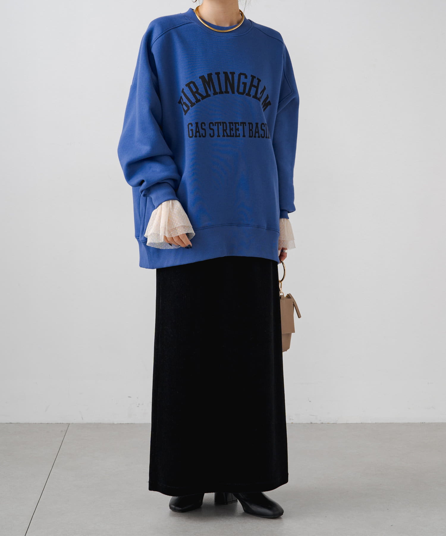 秋冬のメイントップスとして最適なロゴプリントプルオーバー。