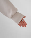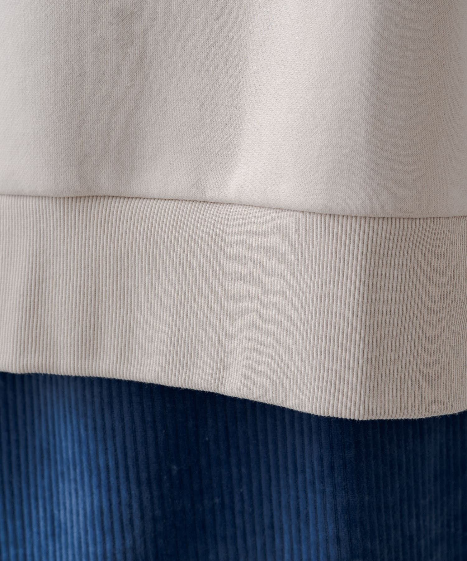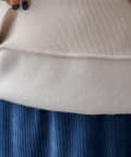 切り替えで付けた裾のリブ効果でボトムスとの境目にアクセントをプラス。