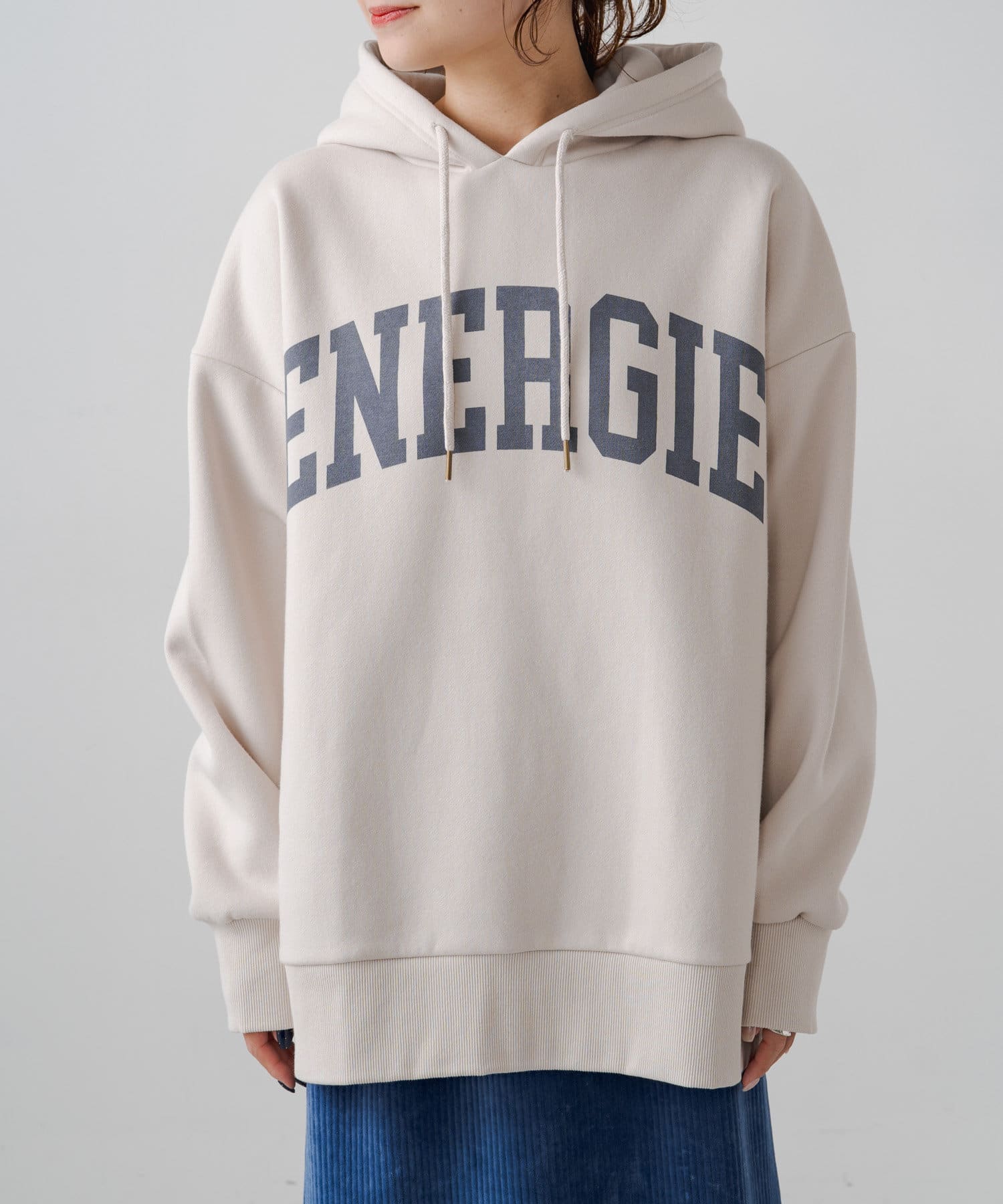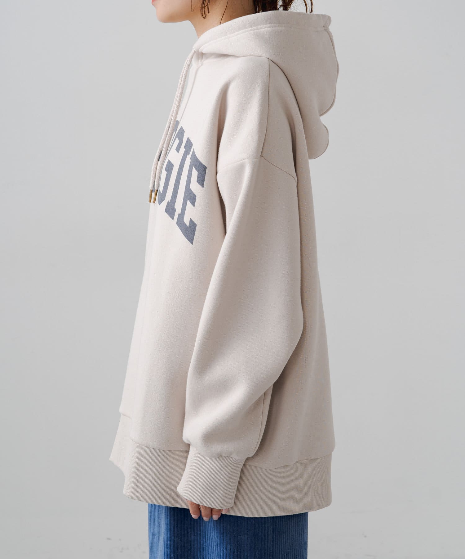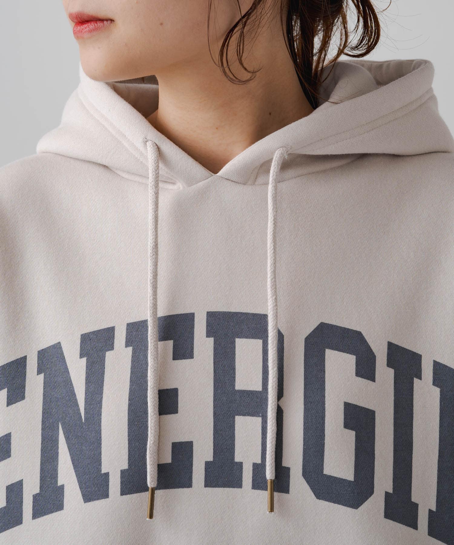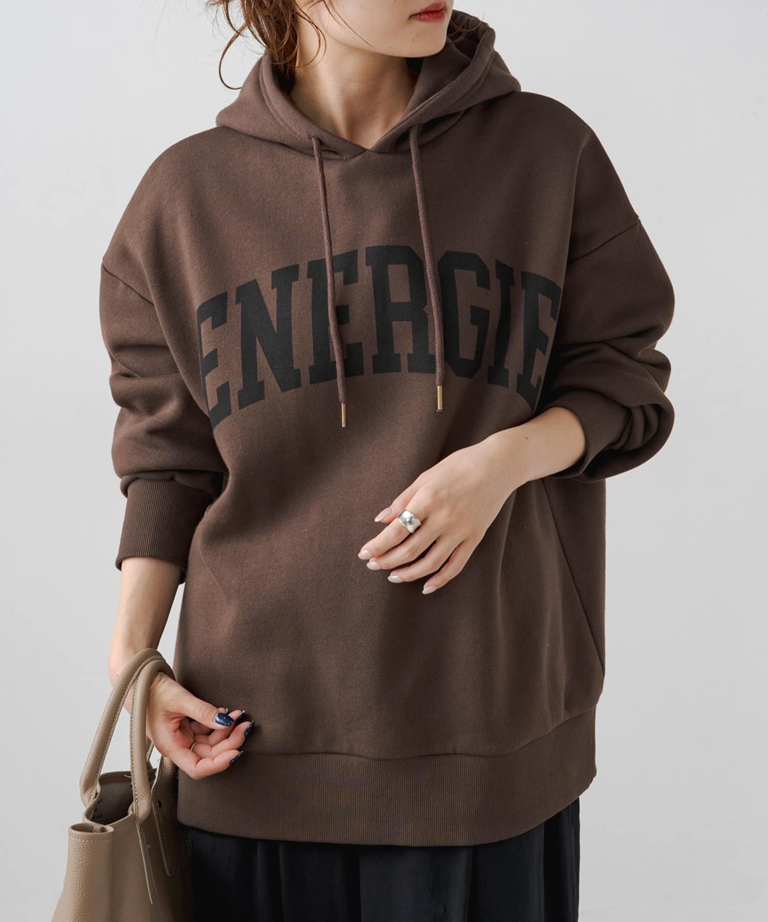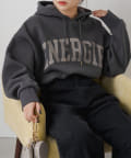 ロゴも落ち着いた色合いなので大人っぽく着れるパーカーでした。
