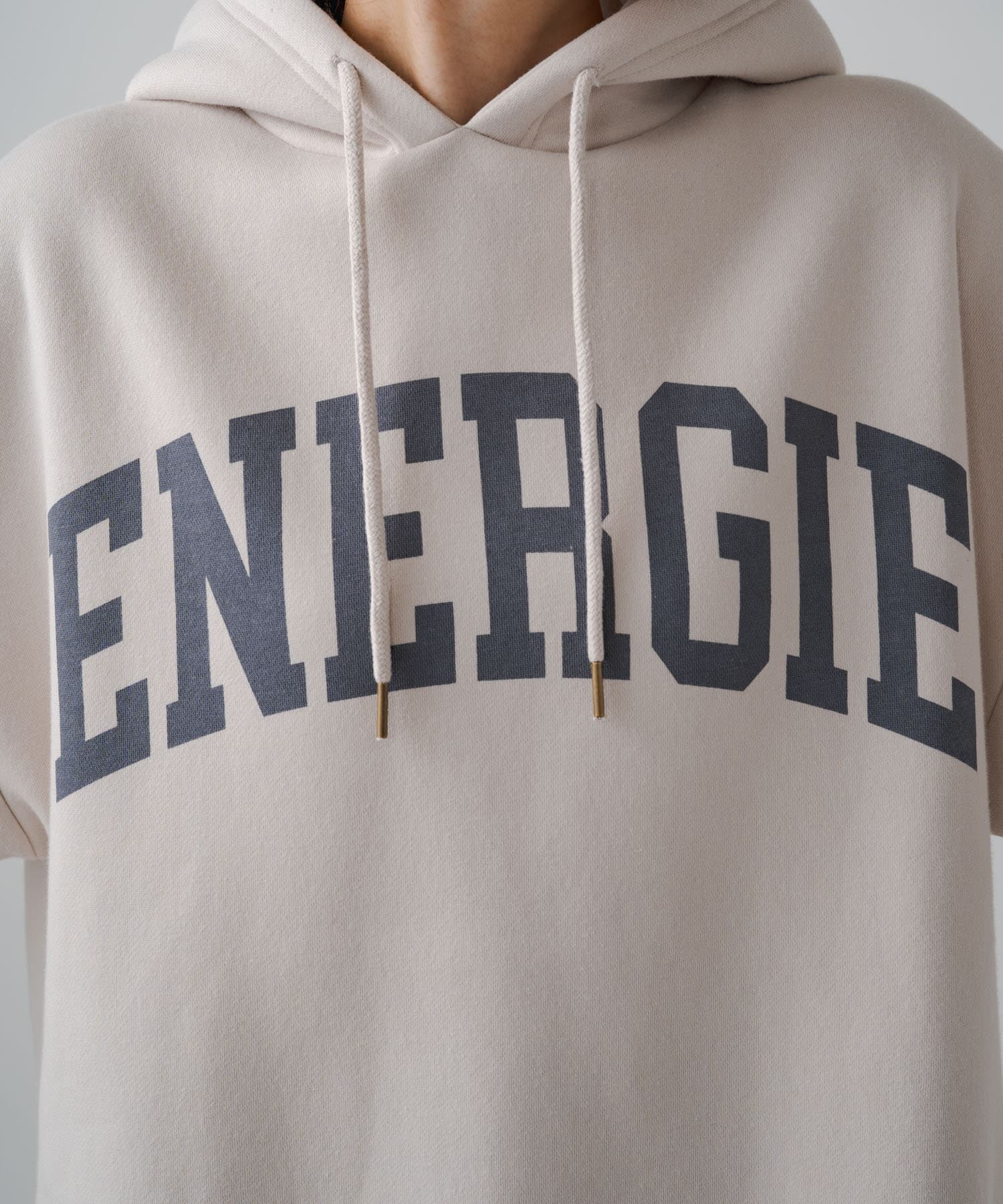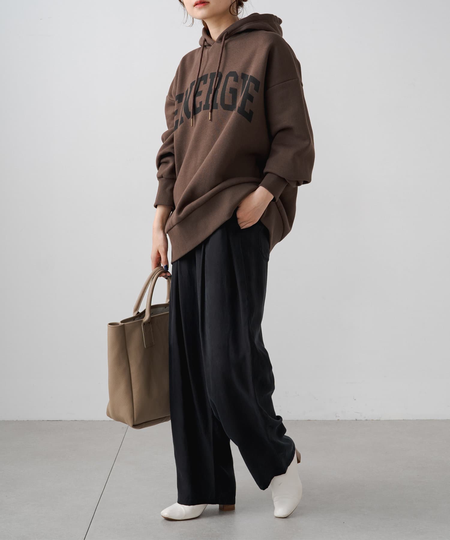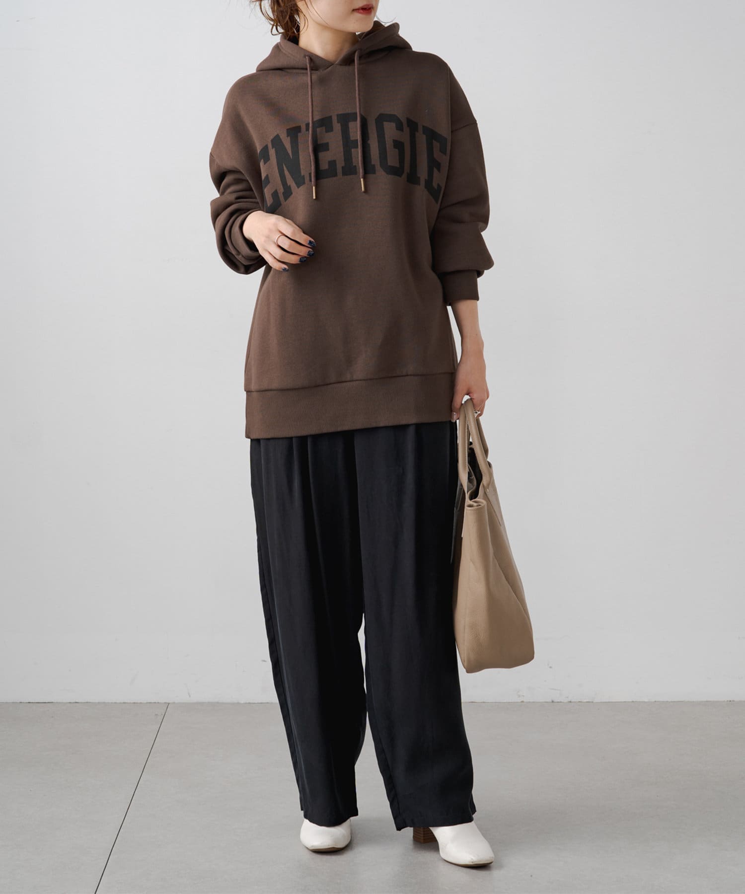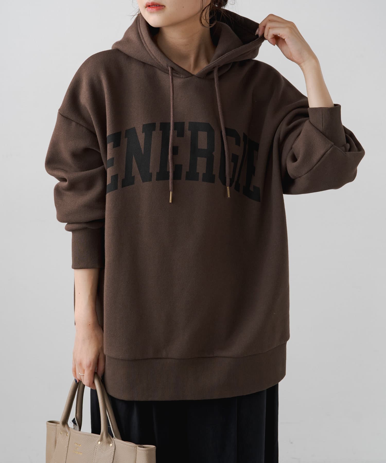 ロゴも落ち着いた色合いなので大人っぽく着れるパーカーでした。