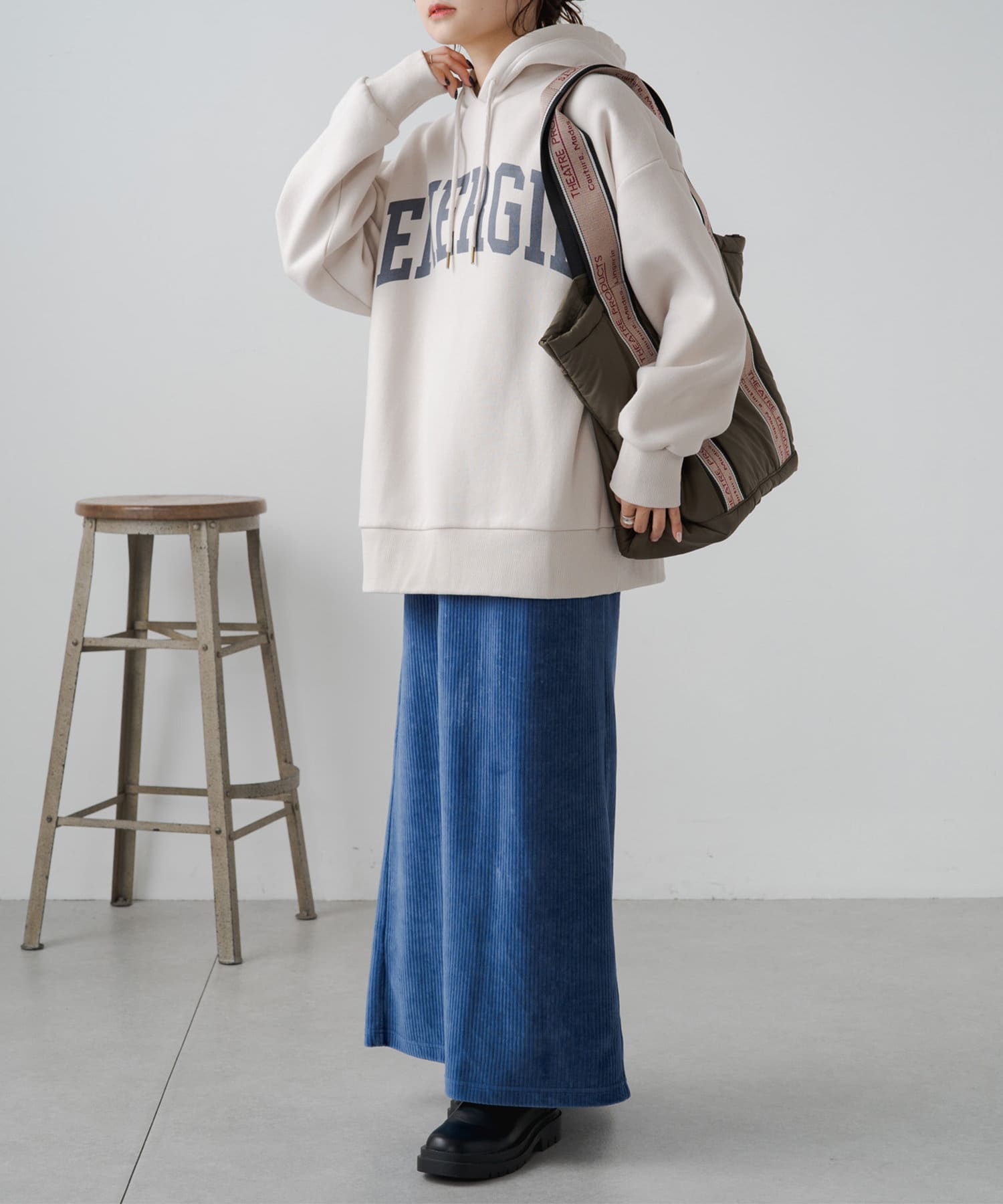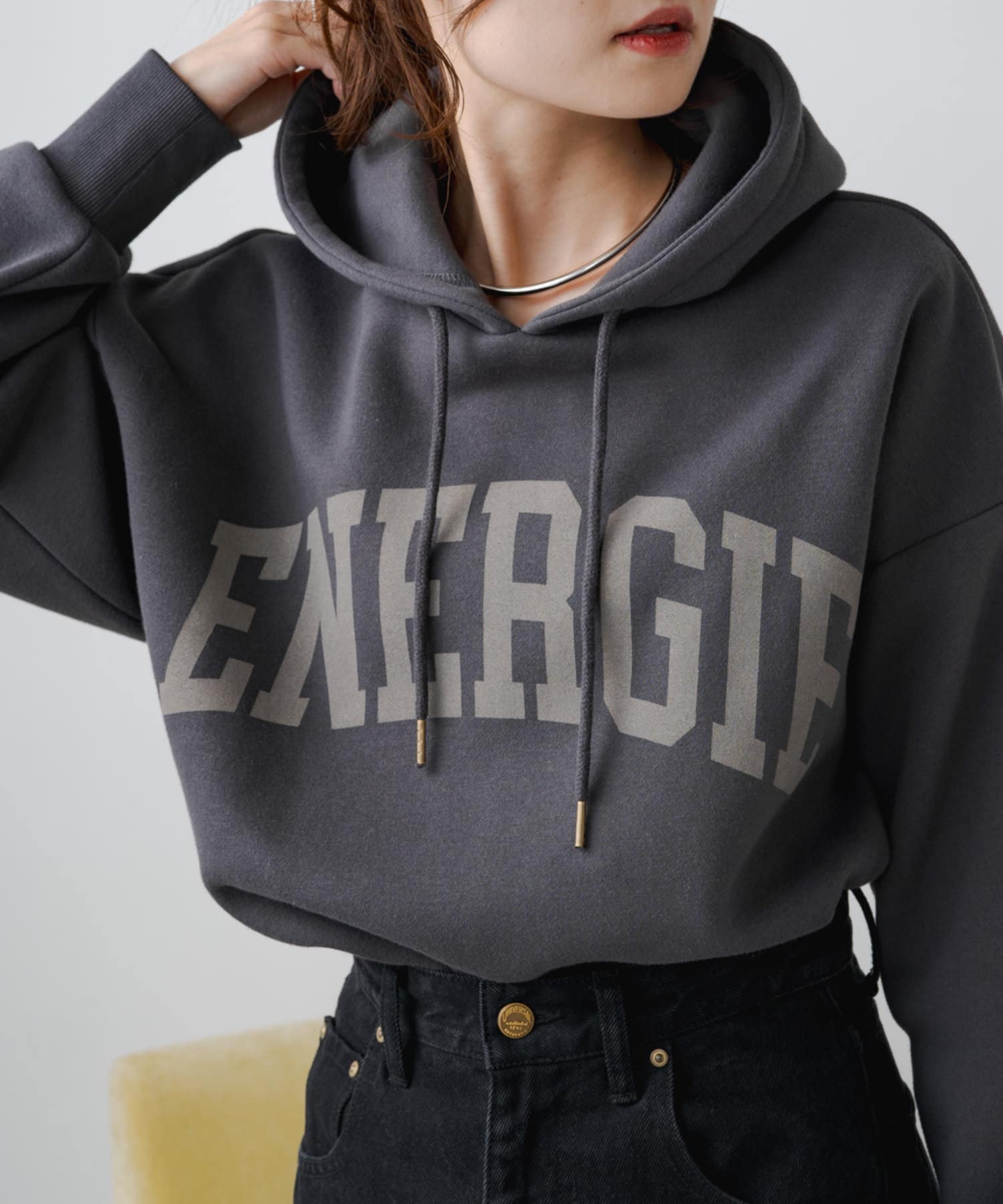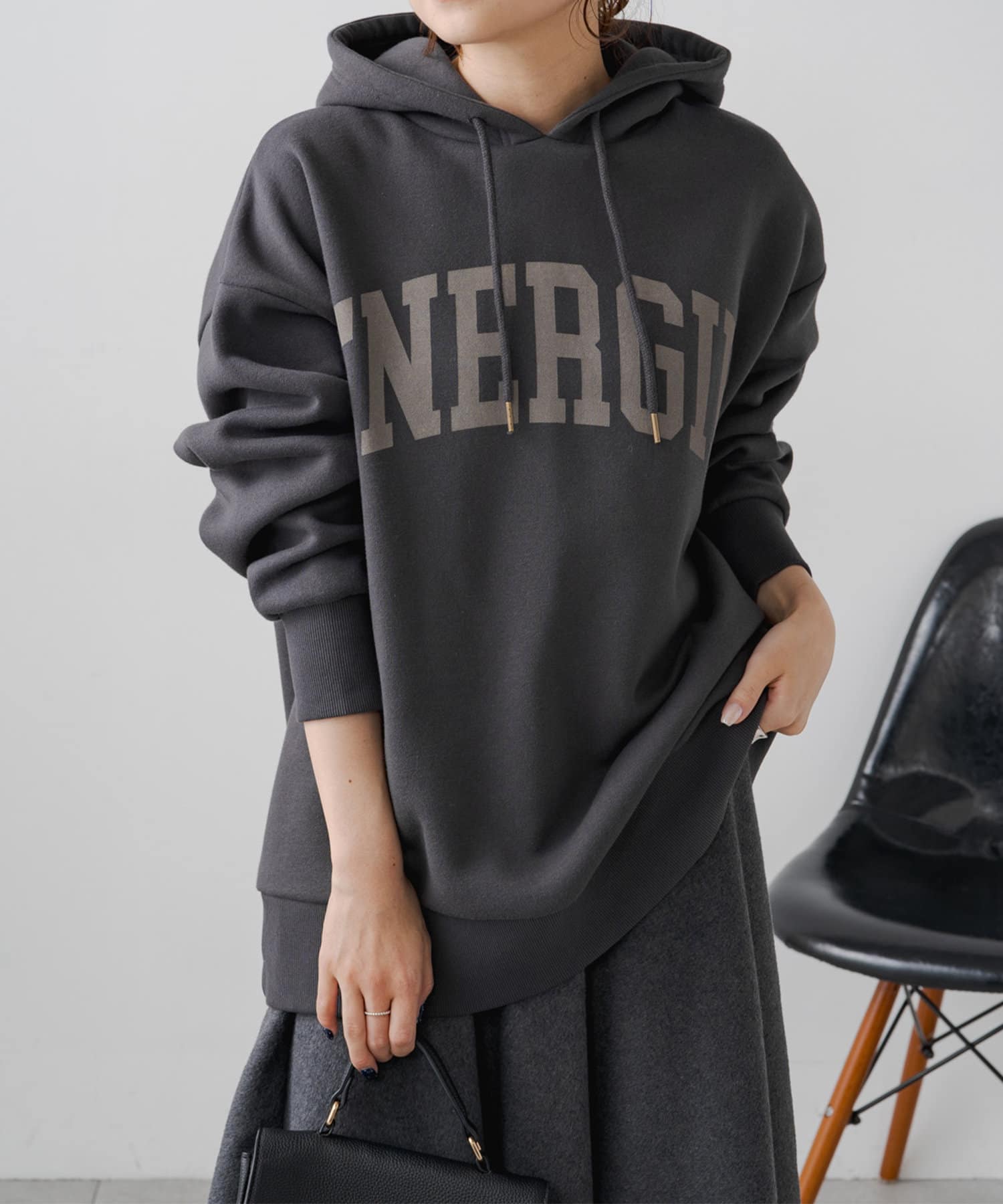 冬場はアウターを着てしまうので、ロゴ入りのパーカーを中に着るとチラ見えが可愛いと思うので買いました。