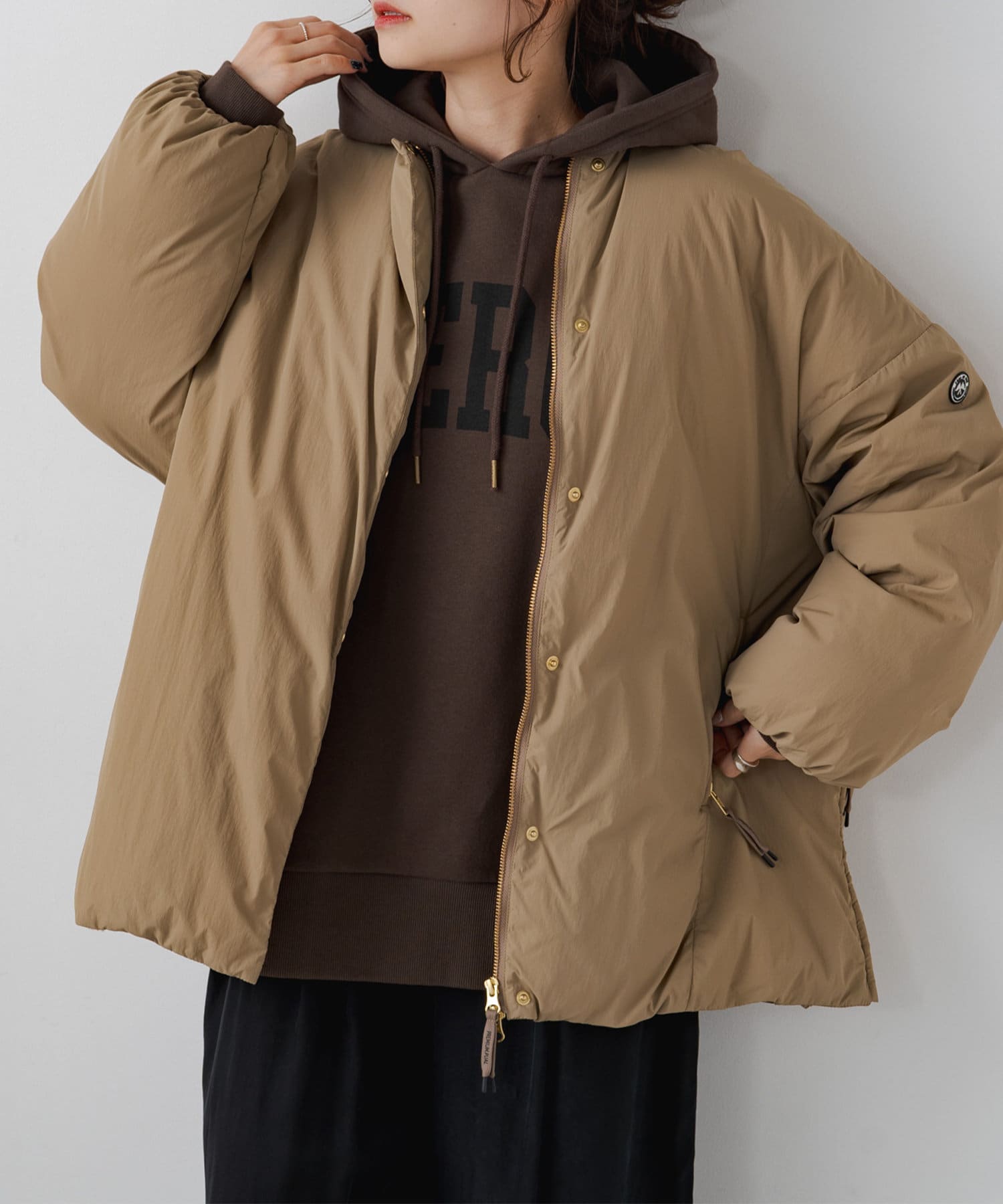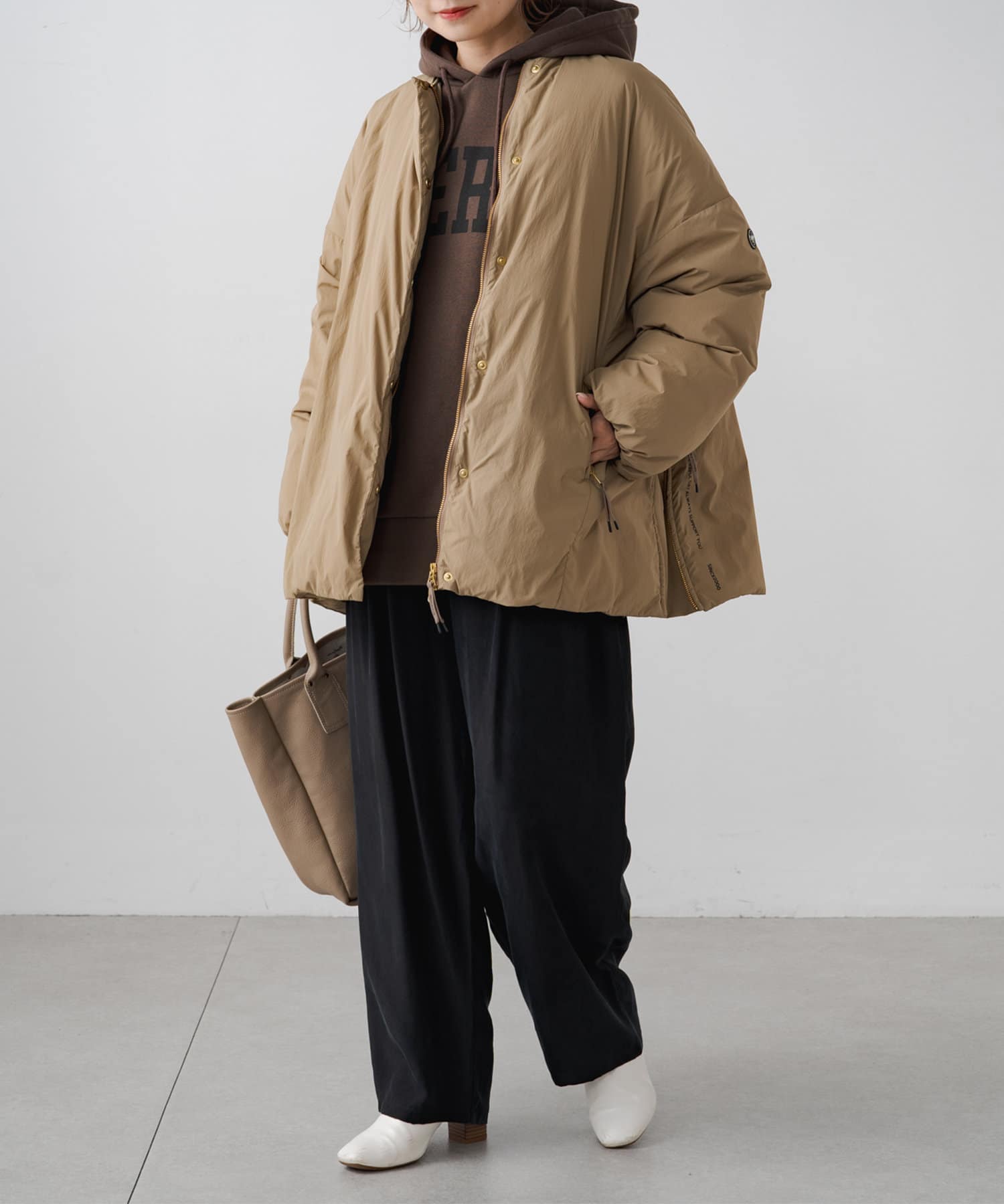 ゆったりとした身頃は、寒い日にはインナーを仕込んで着てももたつかずに着ていただけます。