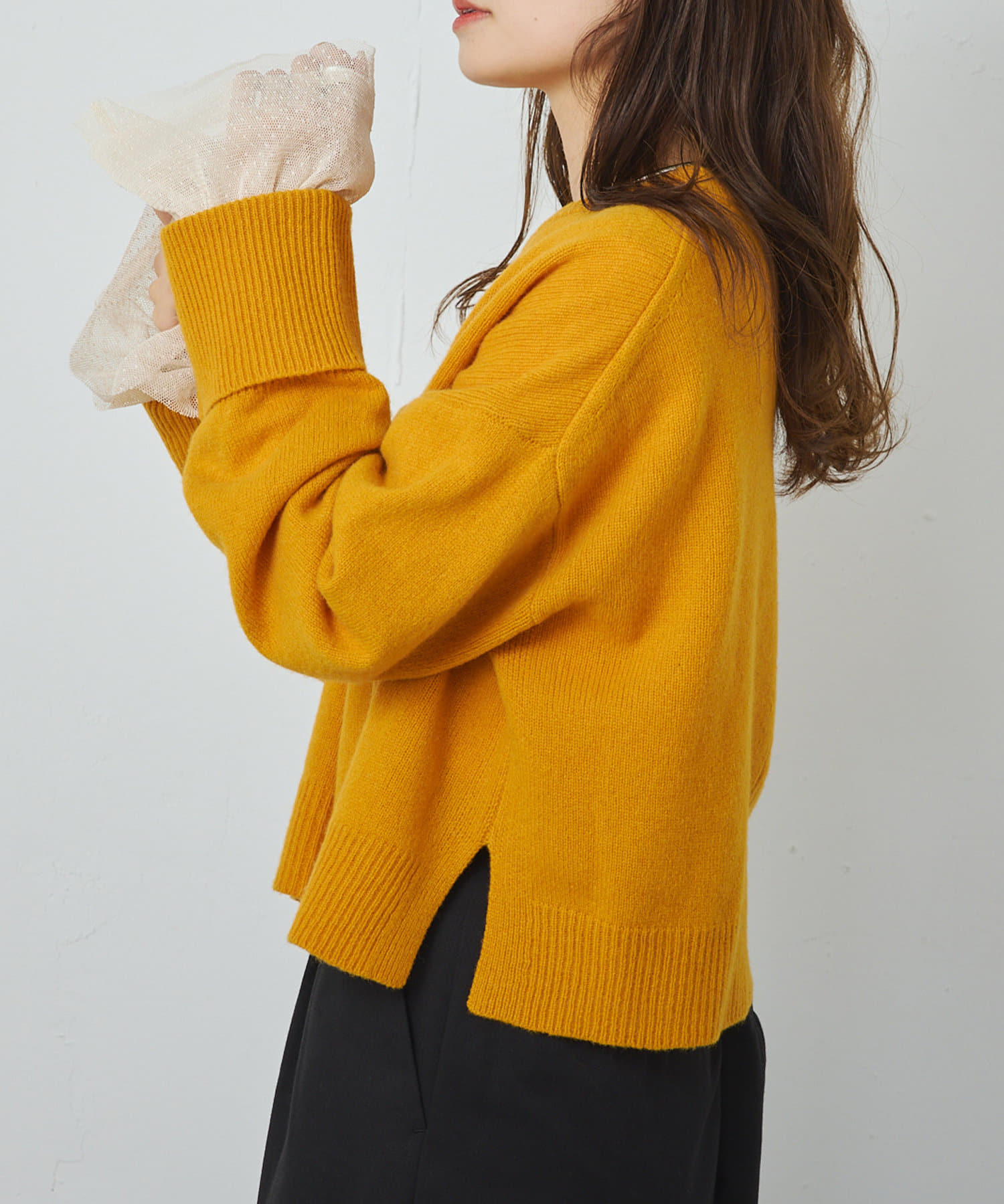 サイズ感:指先が見える程度の袖丈です。程よく身体にフィットするサイズ感なので、秋冬のレイヤードにもピッタリです。