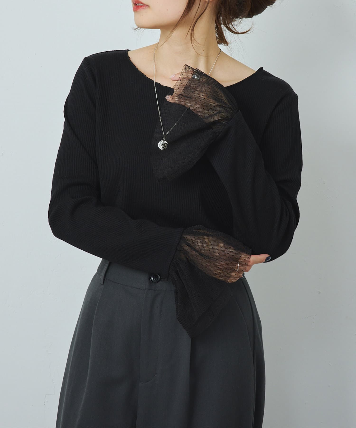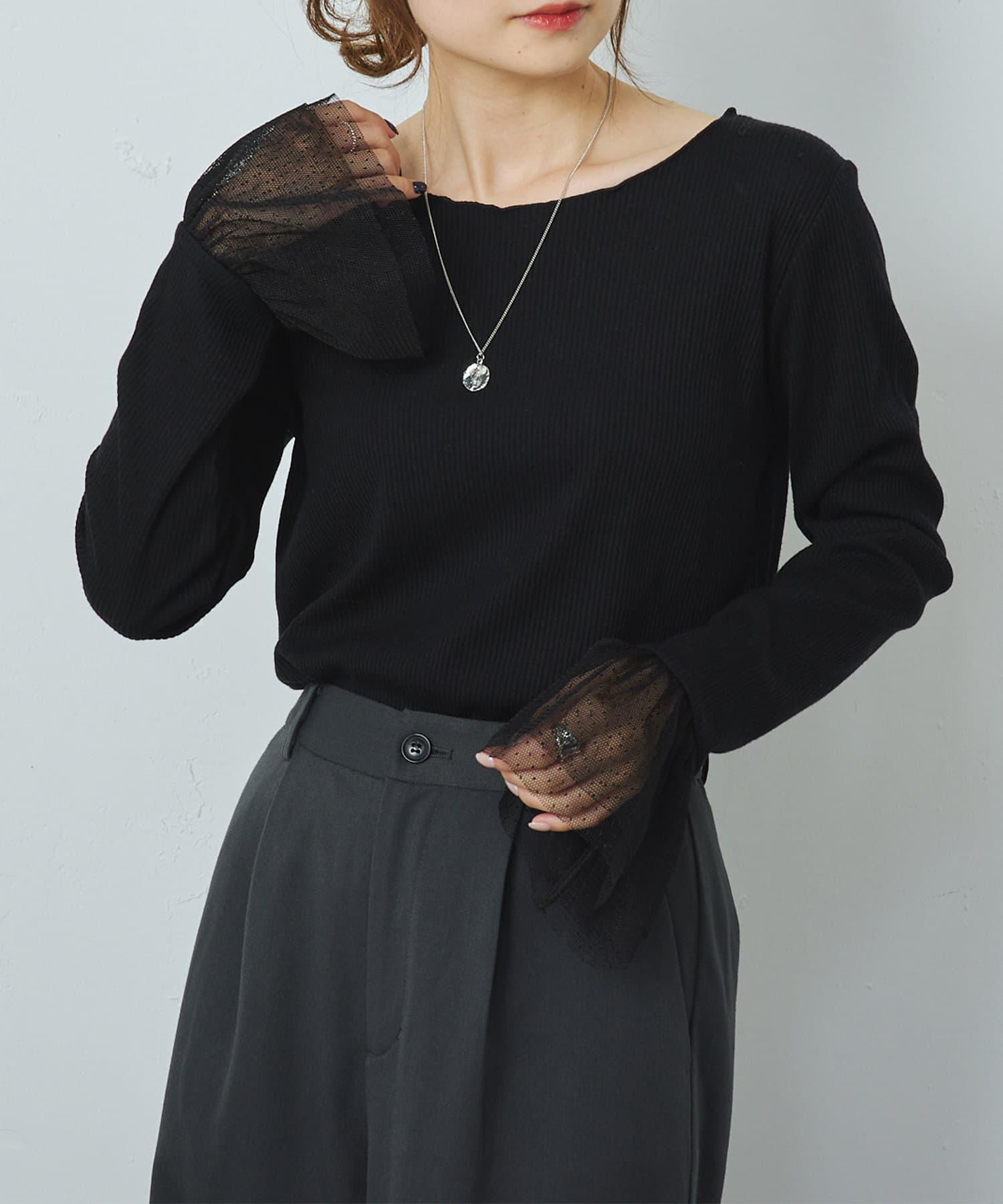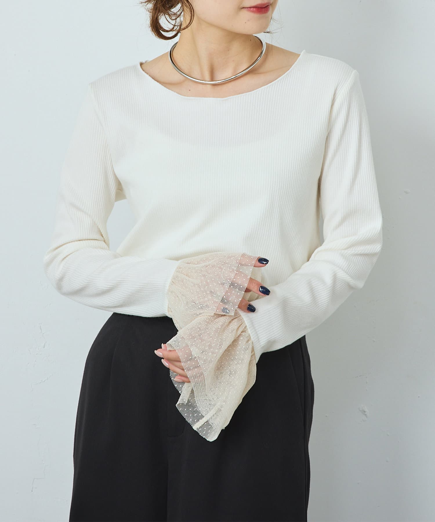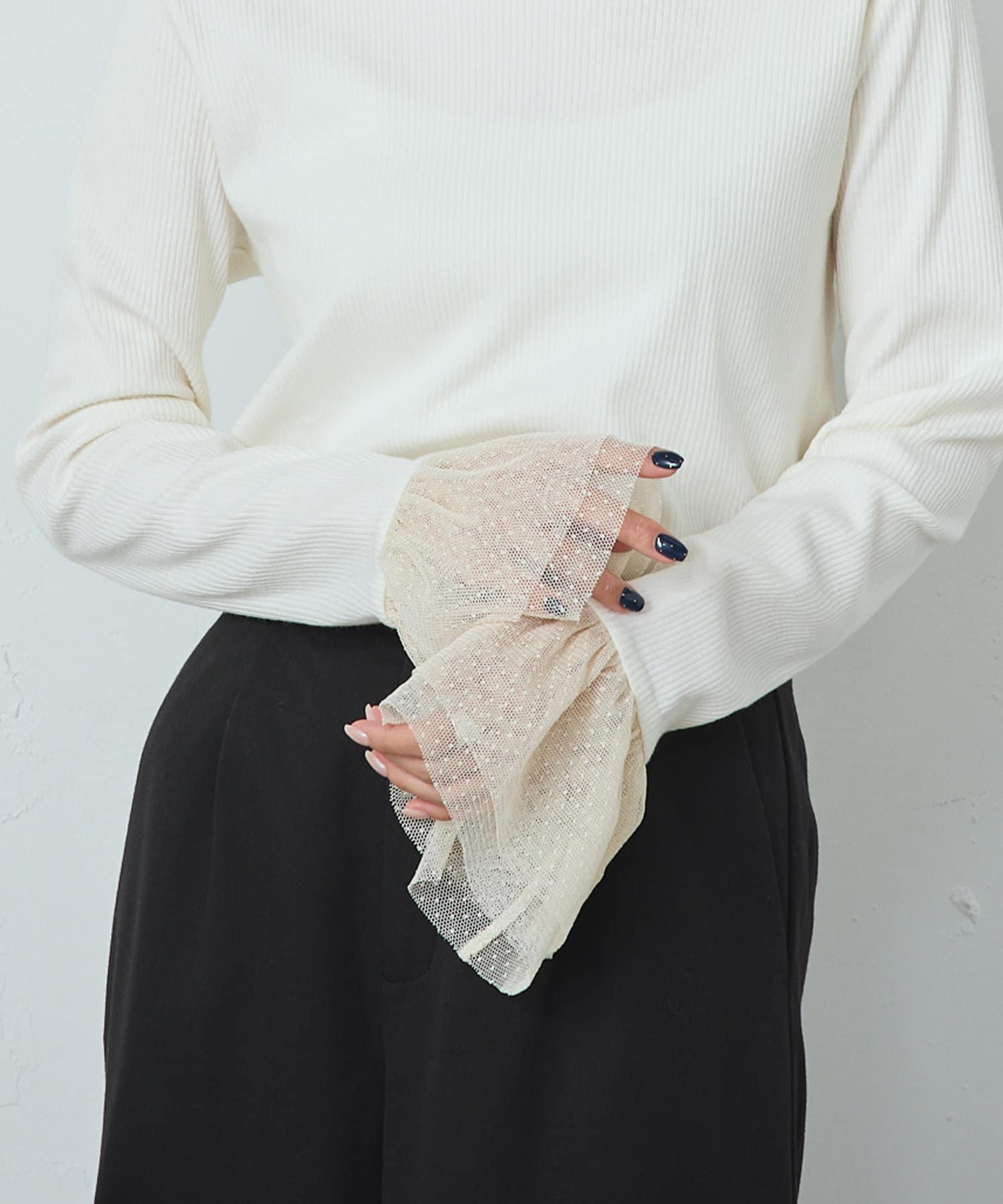チュールと同色のドット柄なので甘くなり過ぎず、