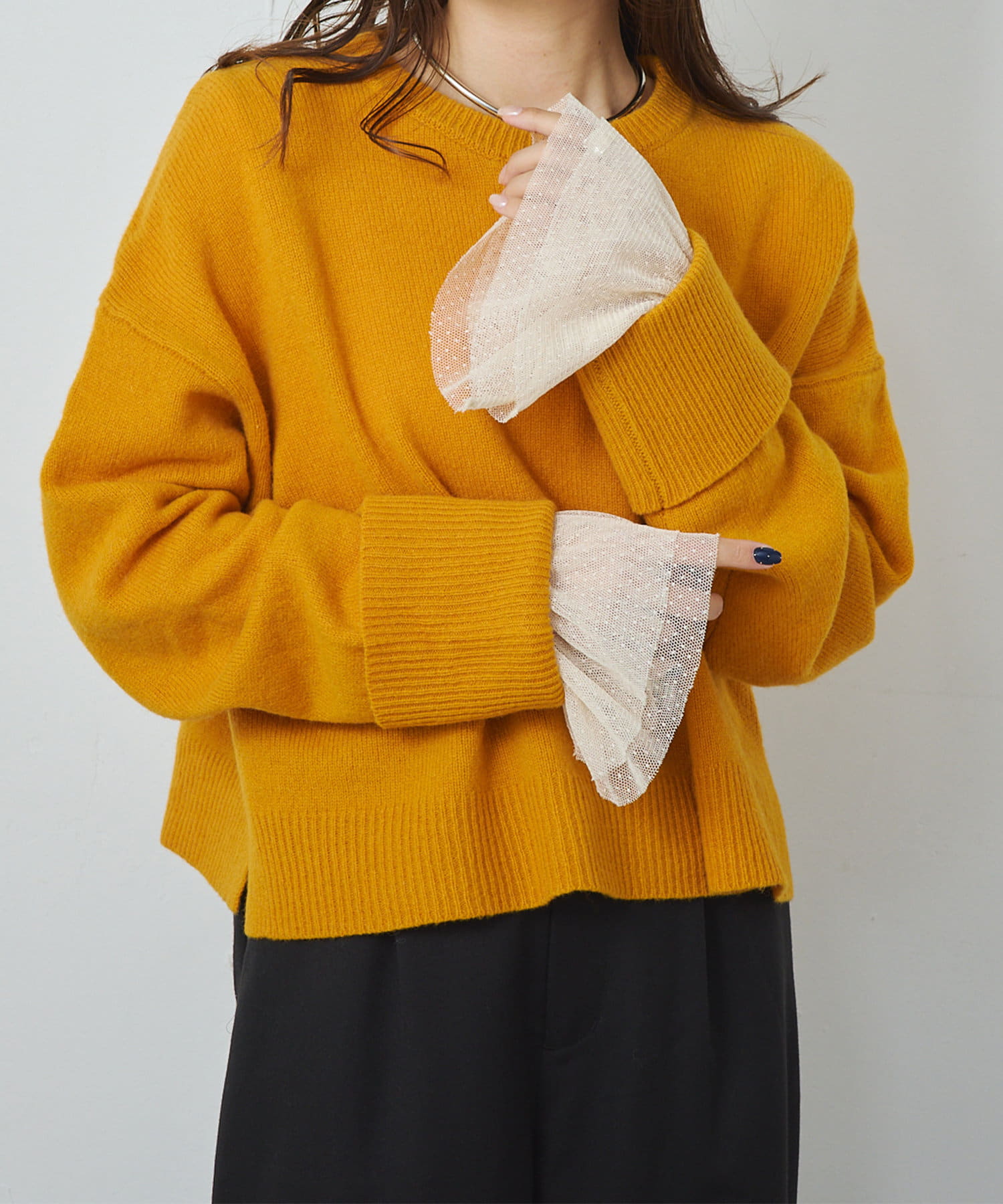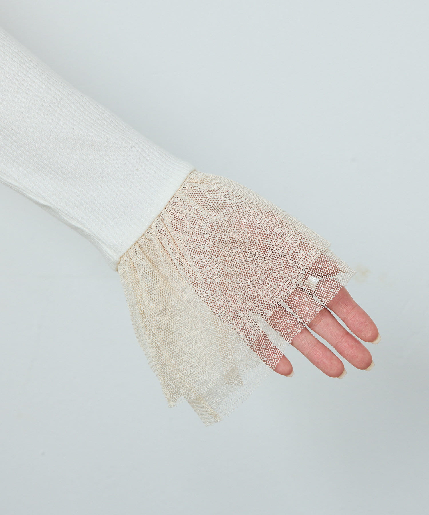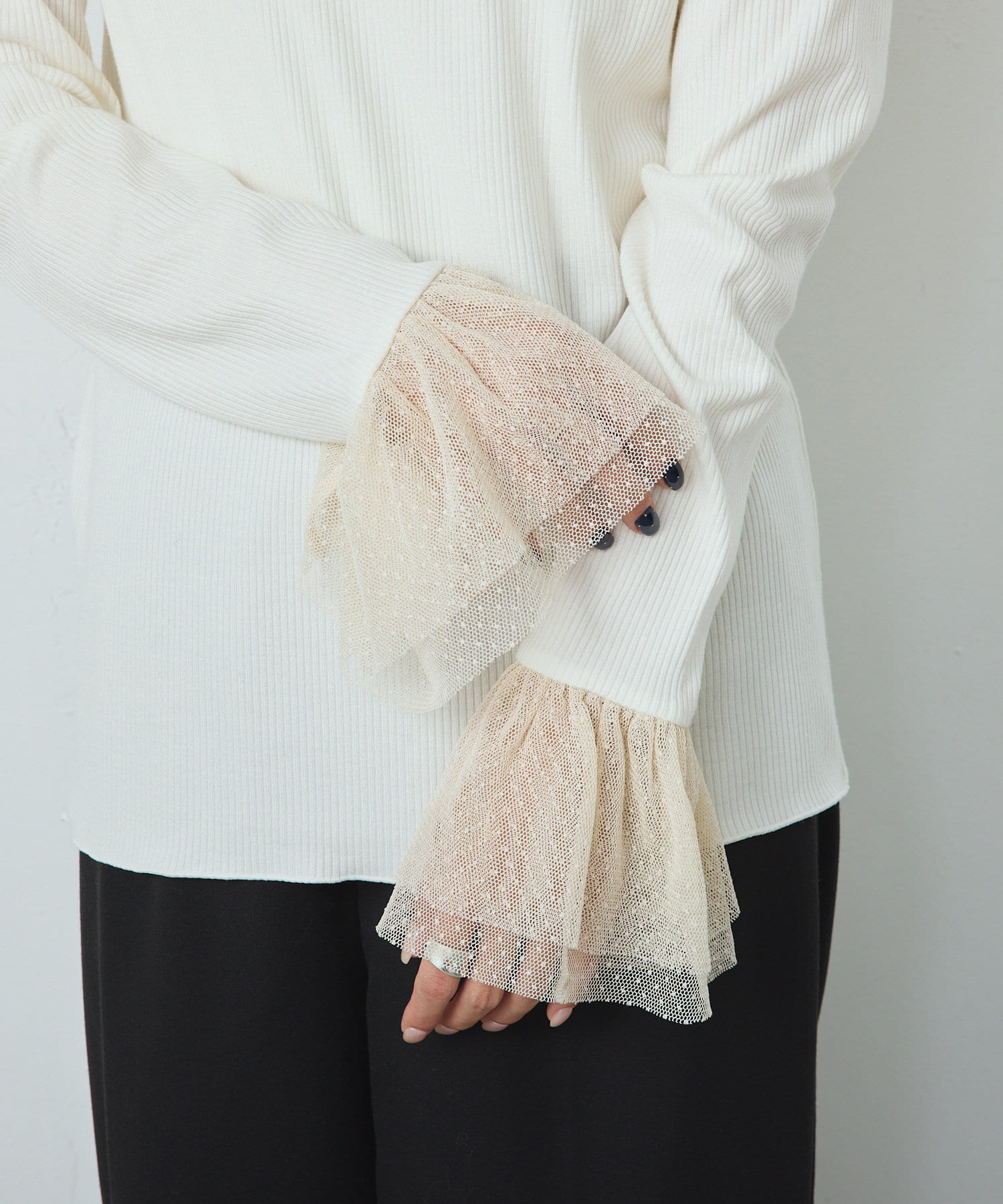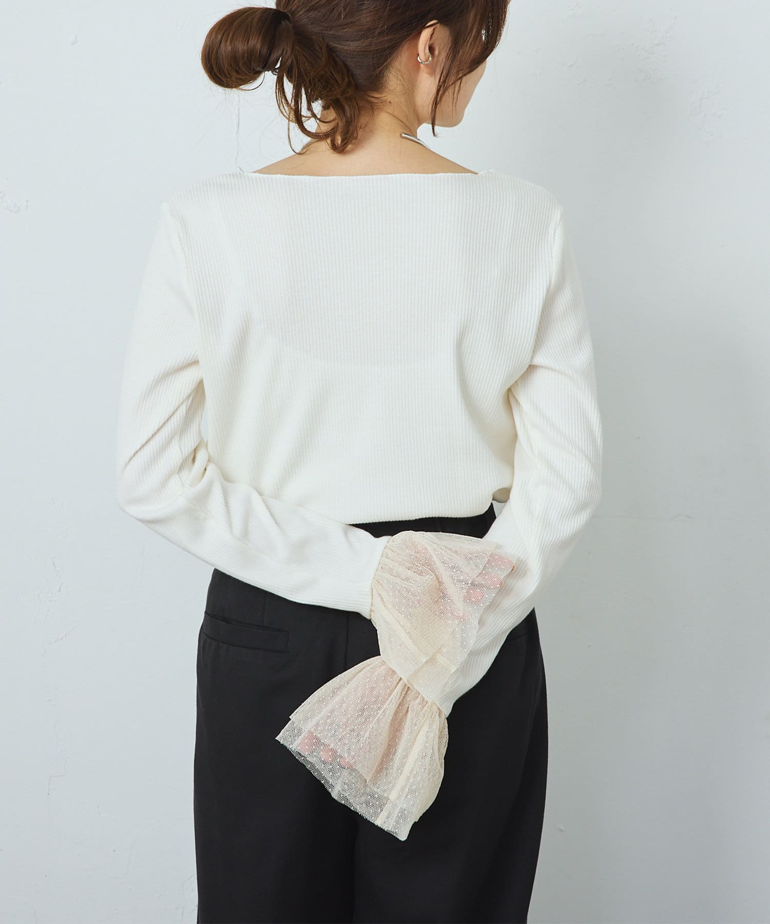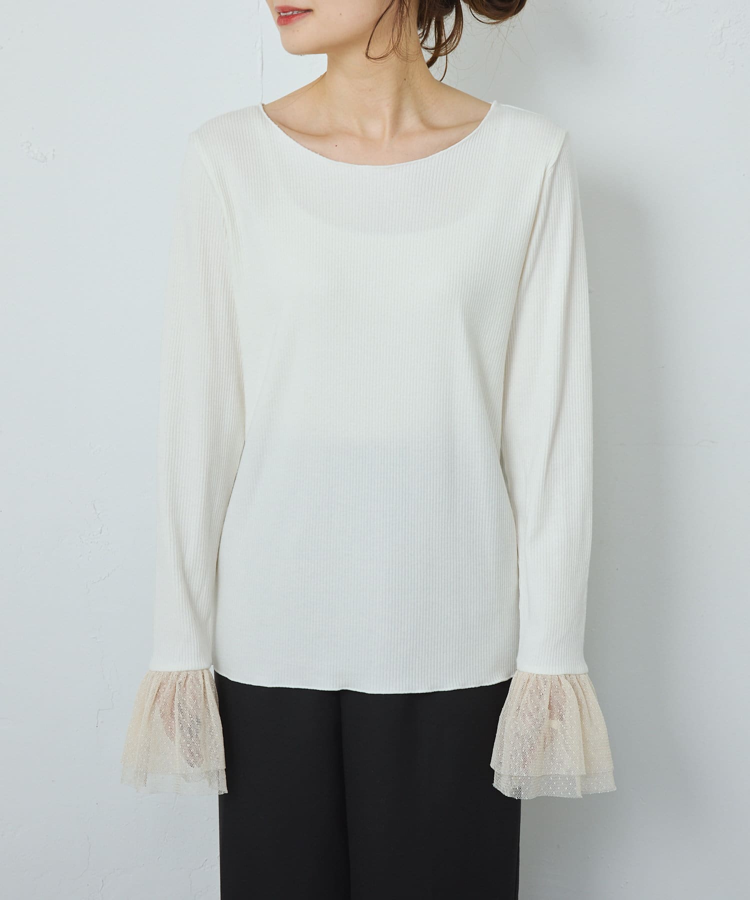 チュールと同色のドット柄なので甘くなり過ぎず、