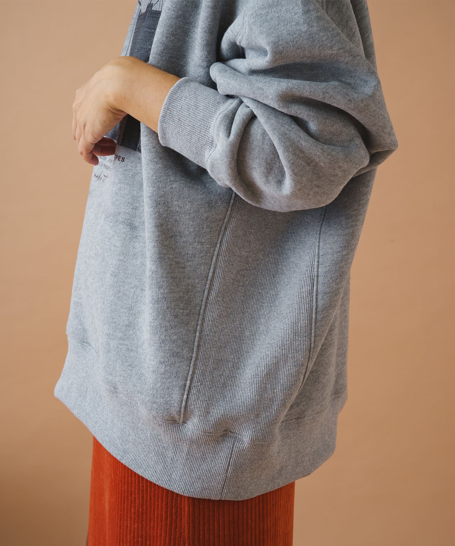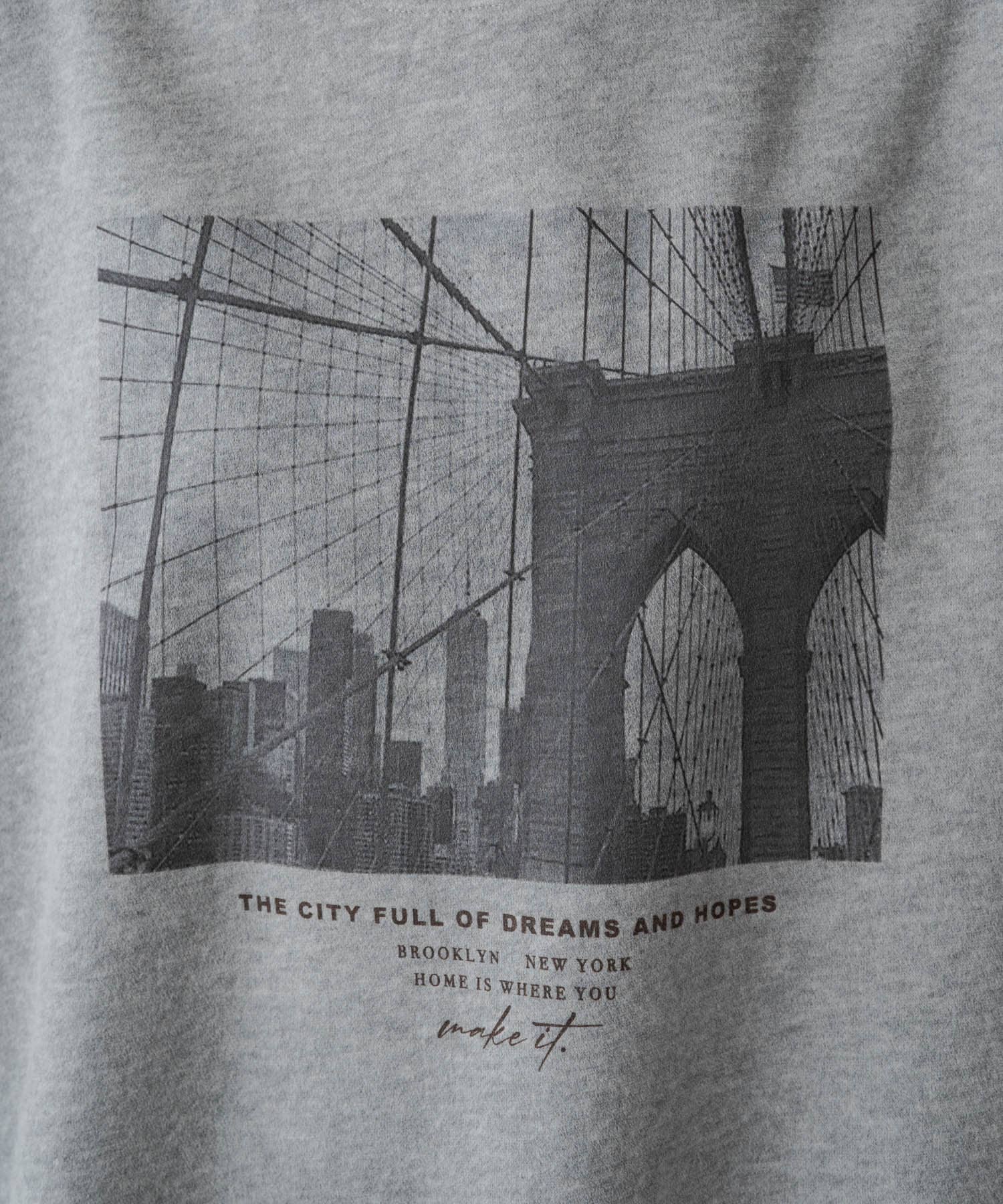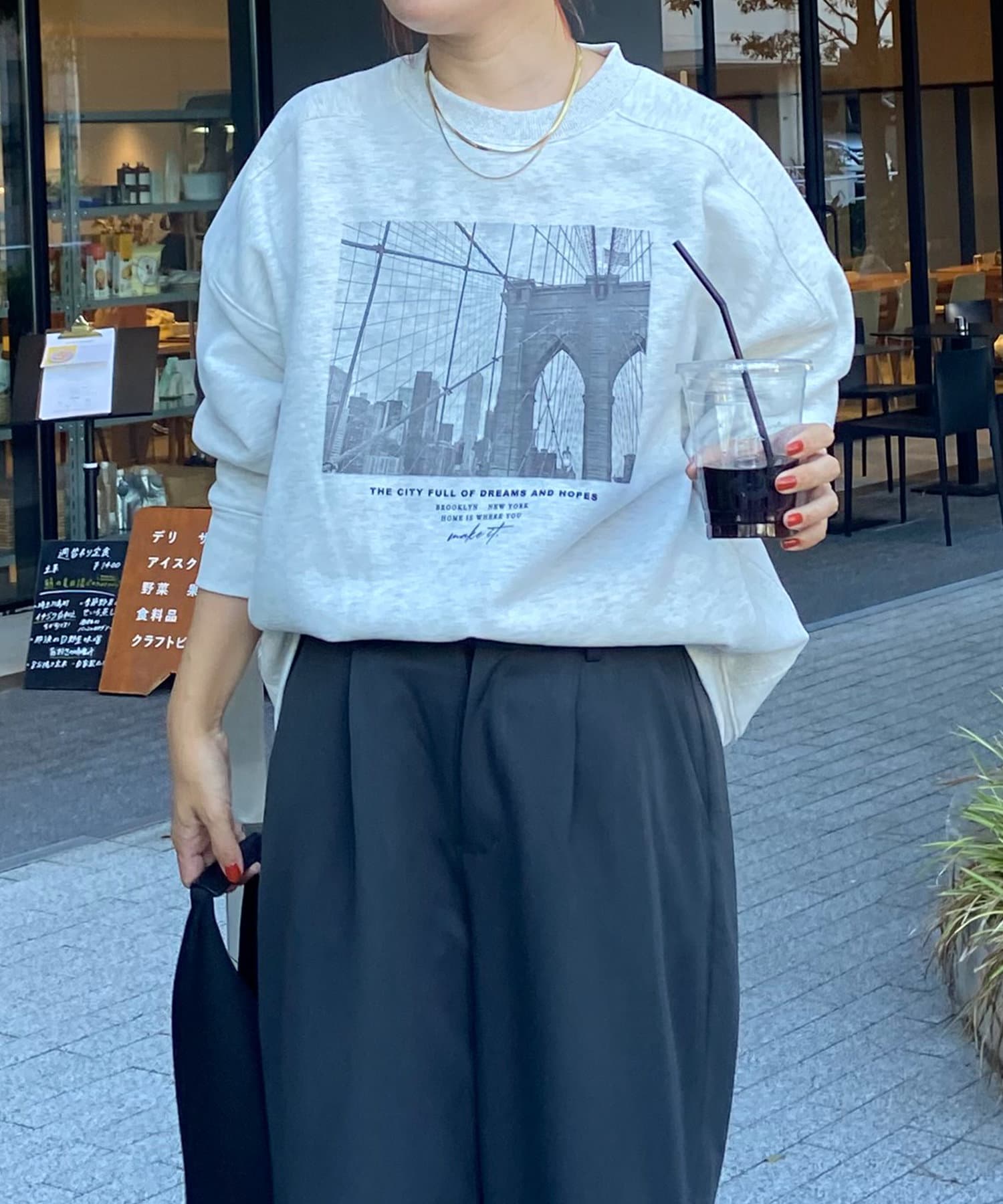 ニューヨークのブルックリン・ブリッジのフォトプリントがアクセントになった裏起毛スウェット。