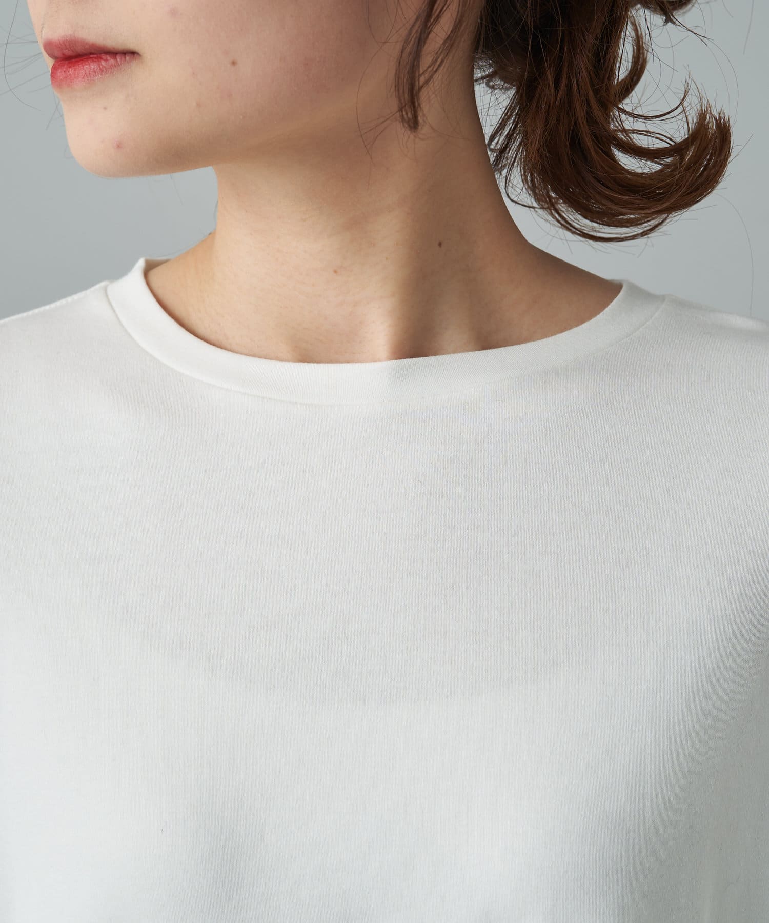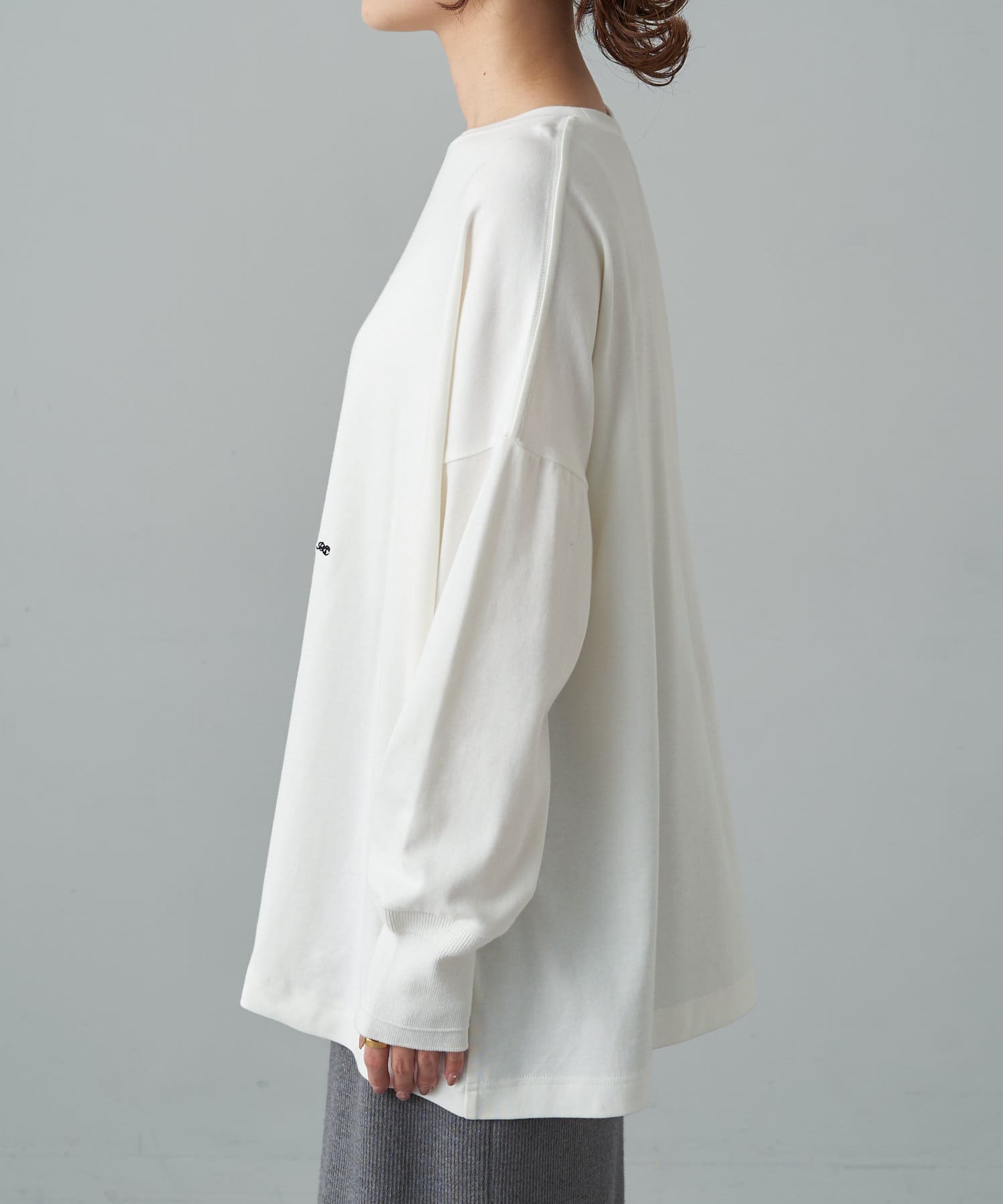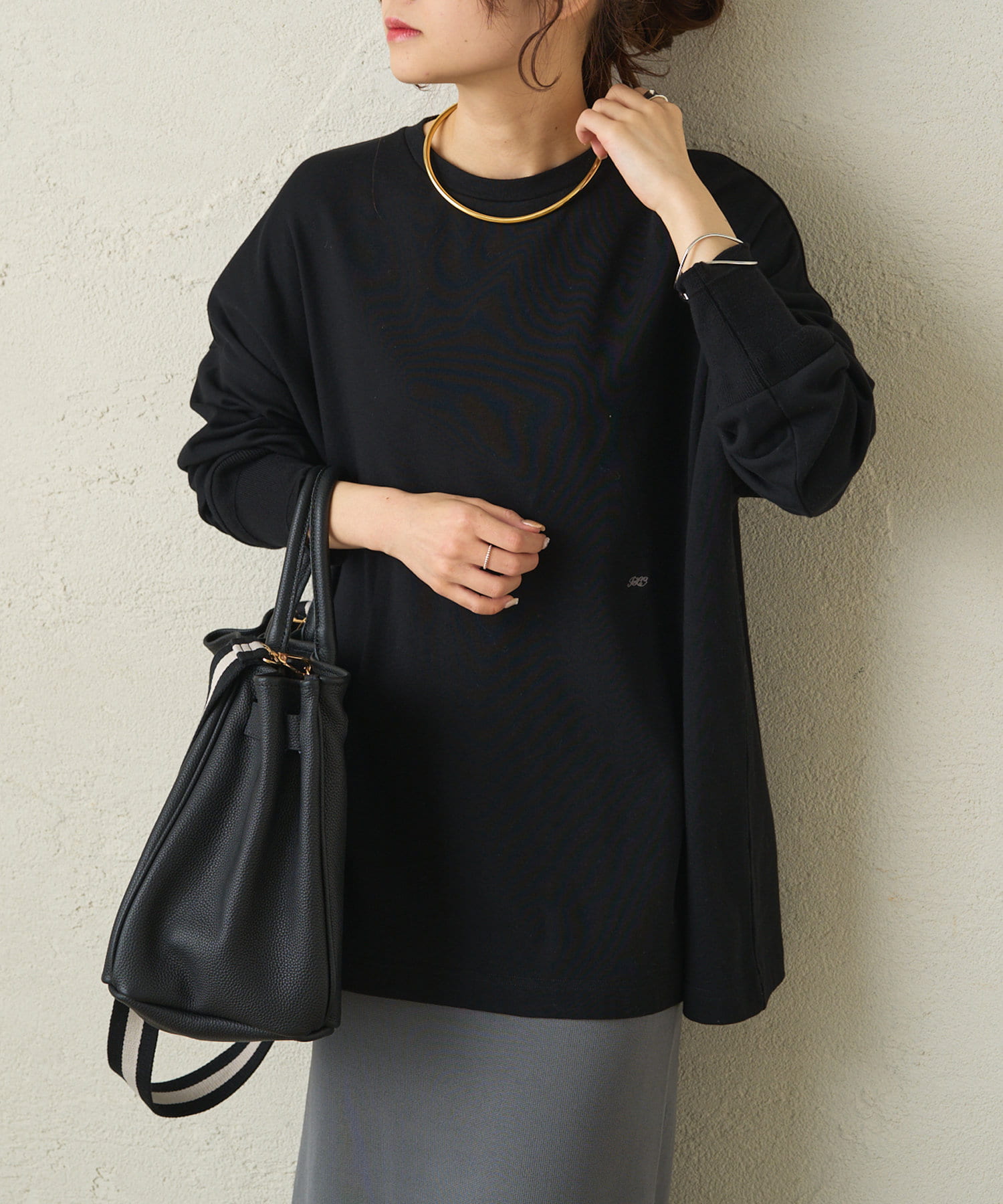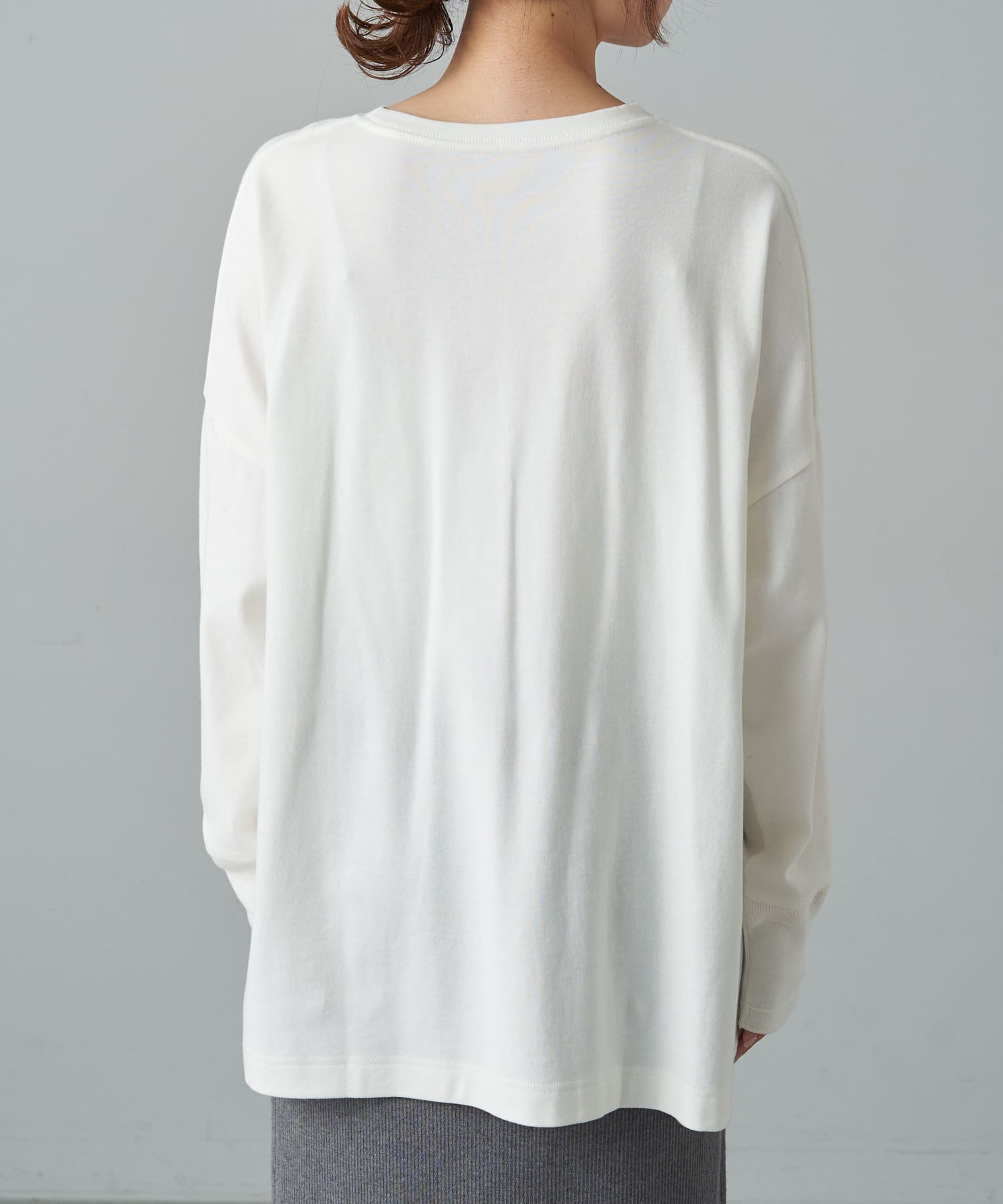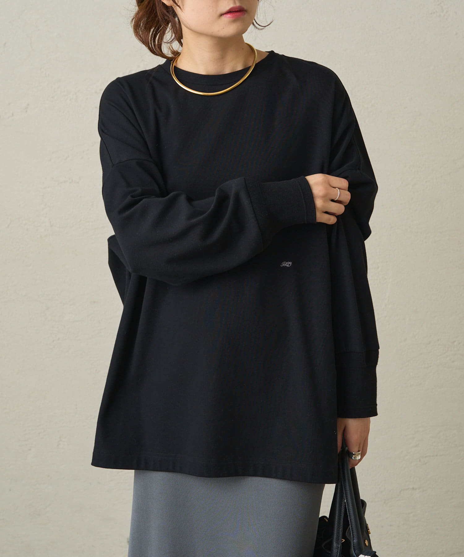ドロップスリーブの袖付けで身幅にゆとりを持たせているので、ボディラインを気にせずラフに着ていただけます。