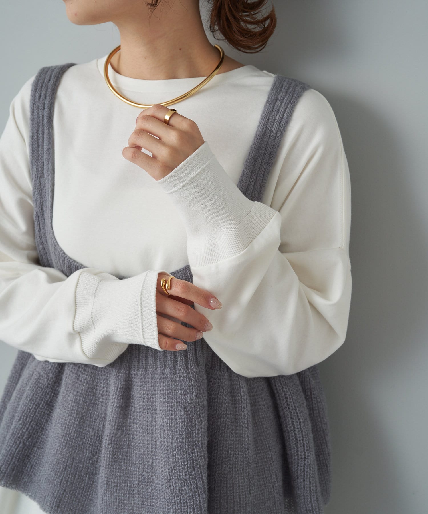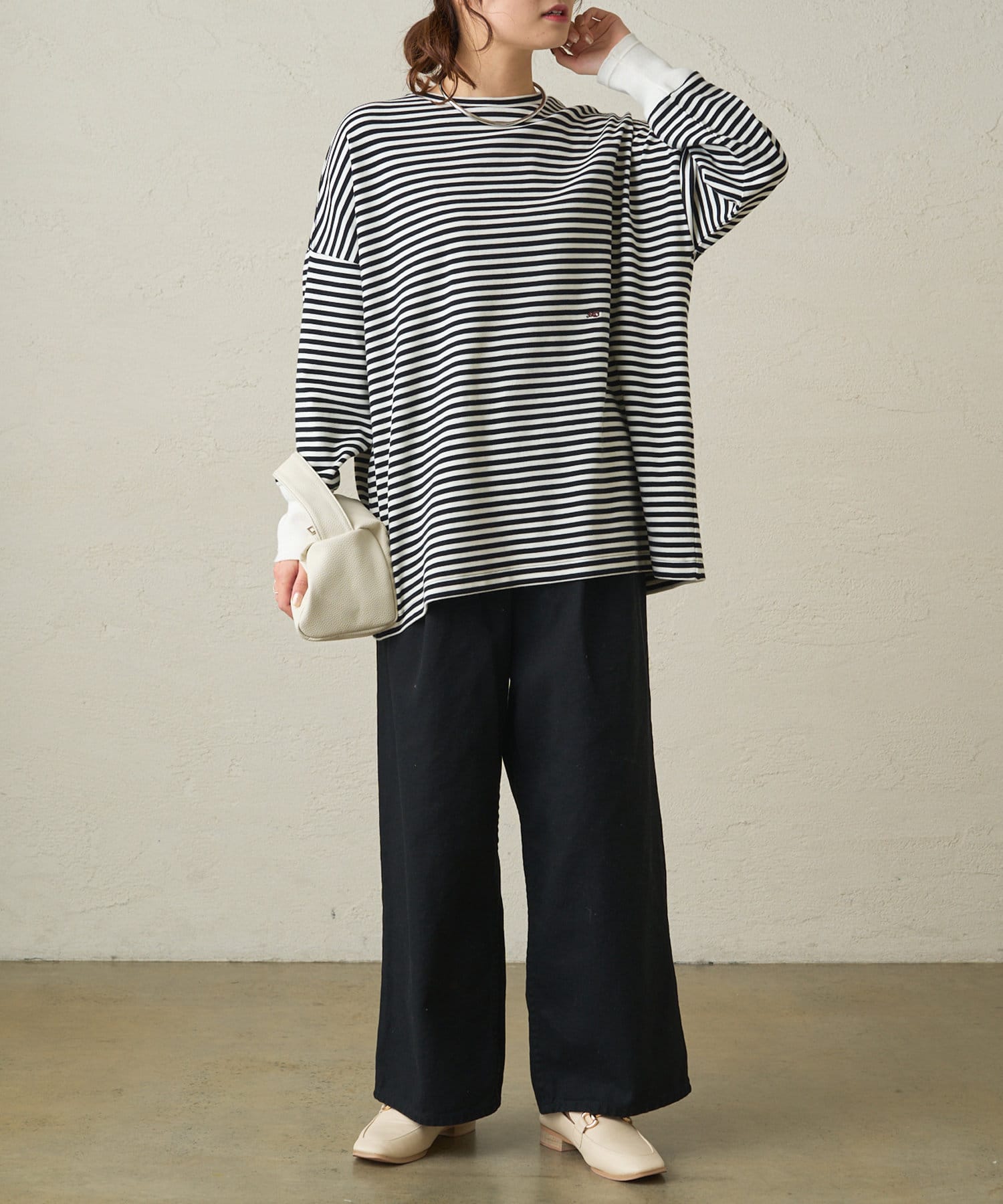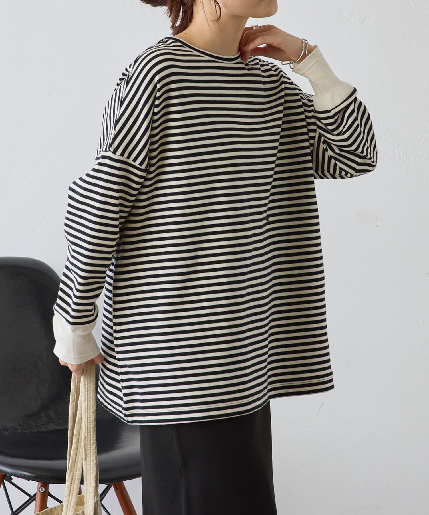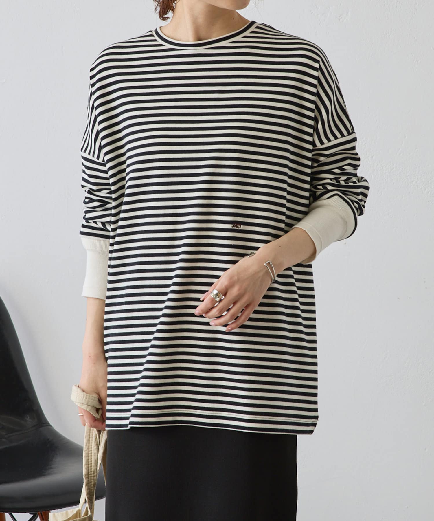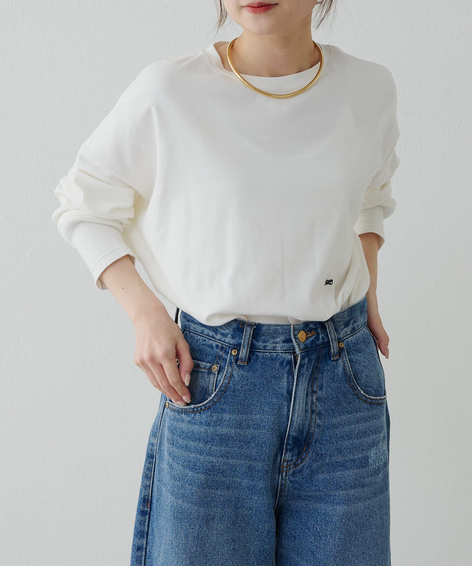 ドロップスリーブの袖付けで身幅にゆとりを持たせているので、ボディラインを気にせずラフに着ていただけます。
