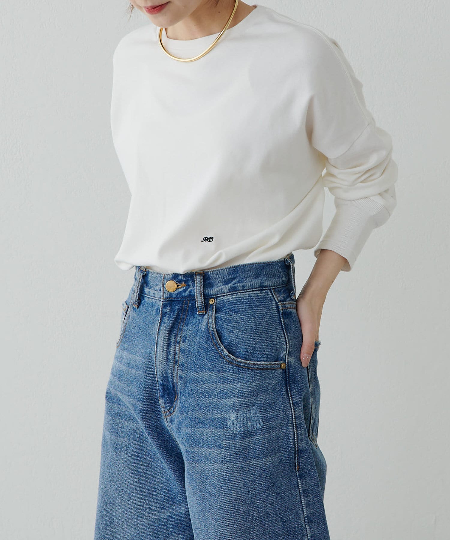PUAL CE CIN(ピュアルセシン) ワンポイントモノグラム刺繍スムース起毛プルオーバー