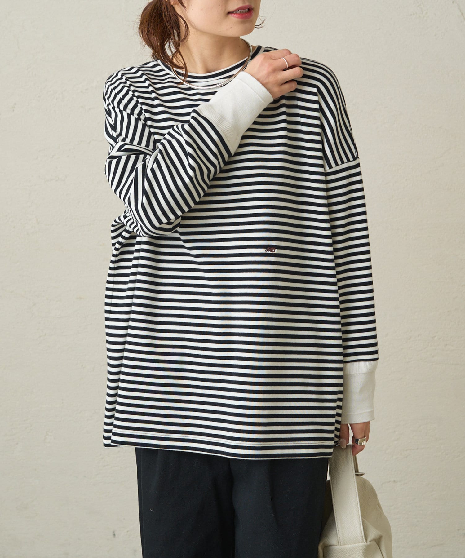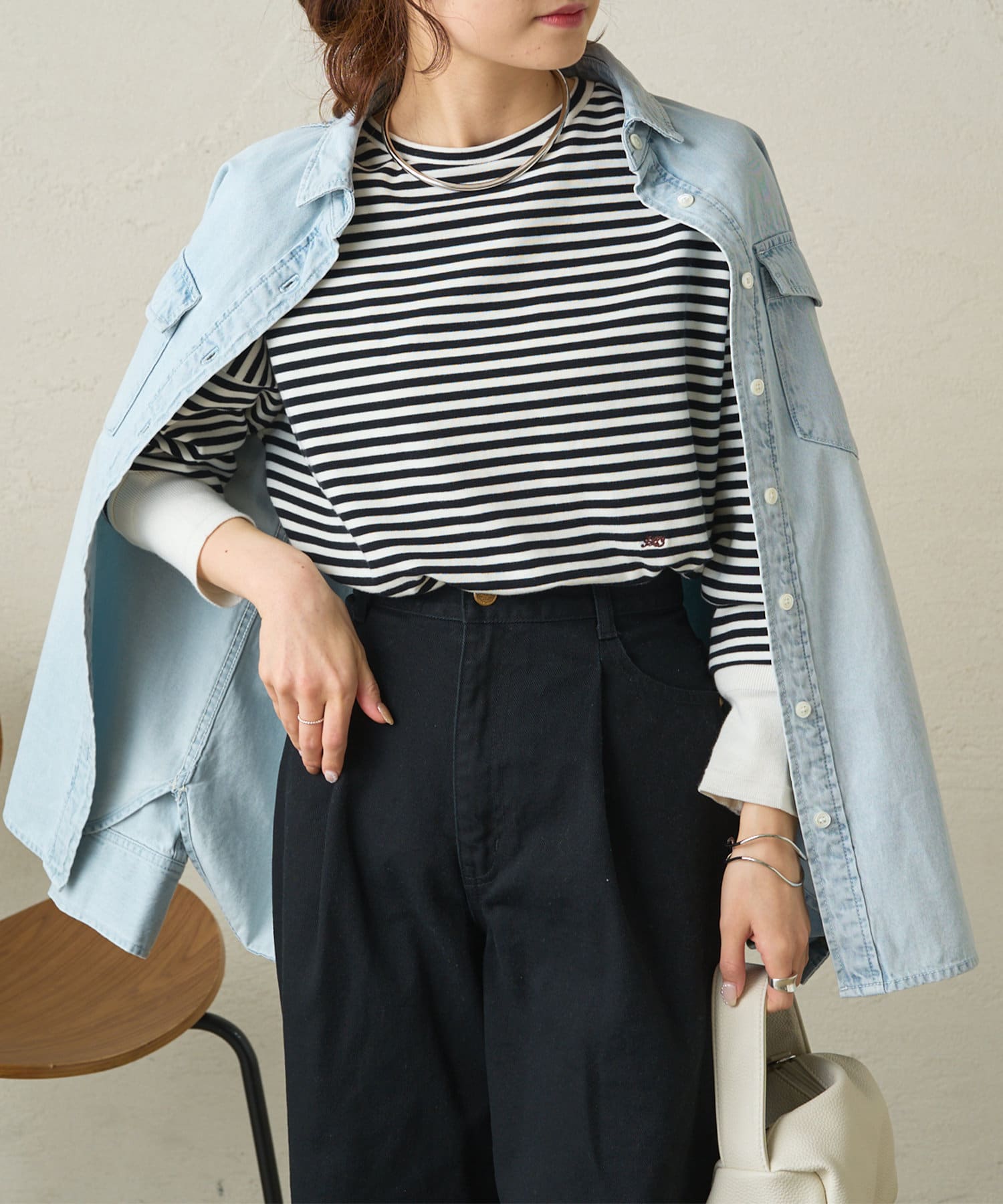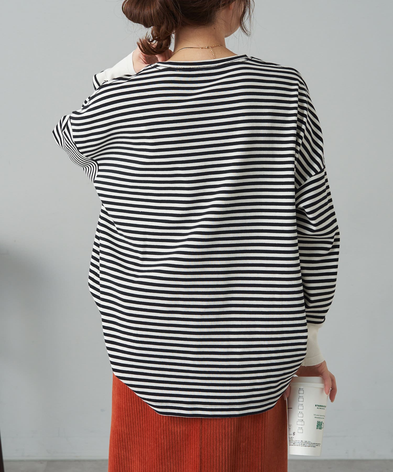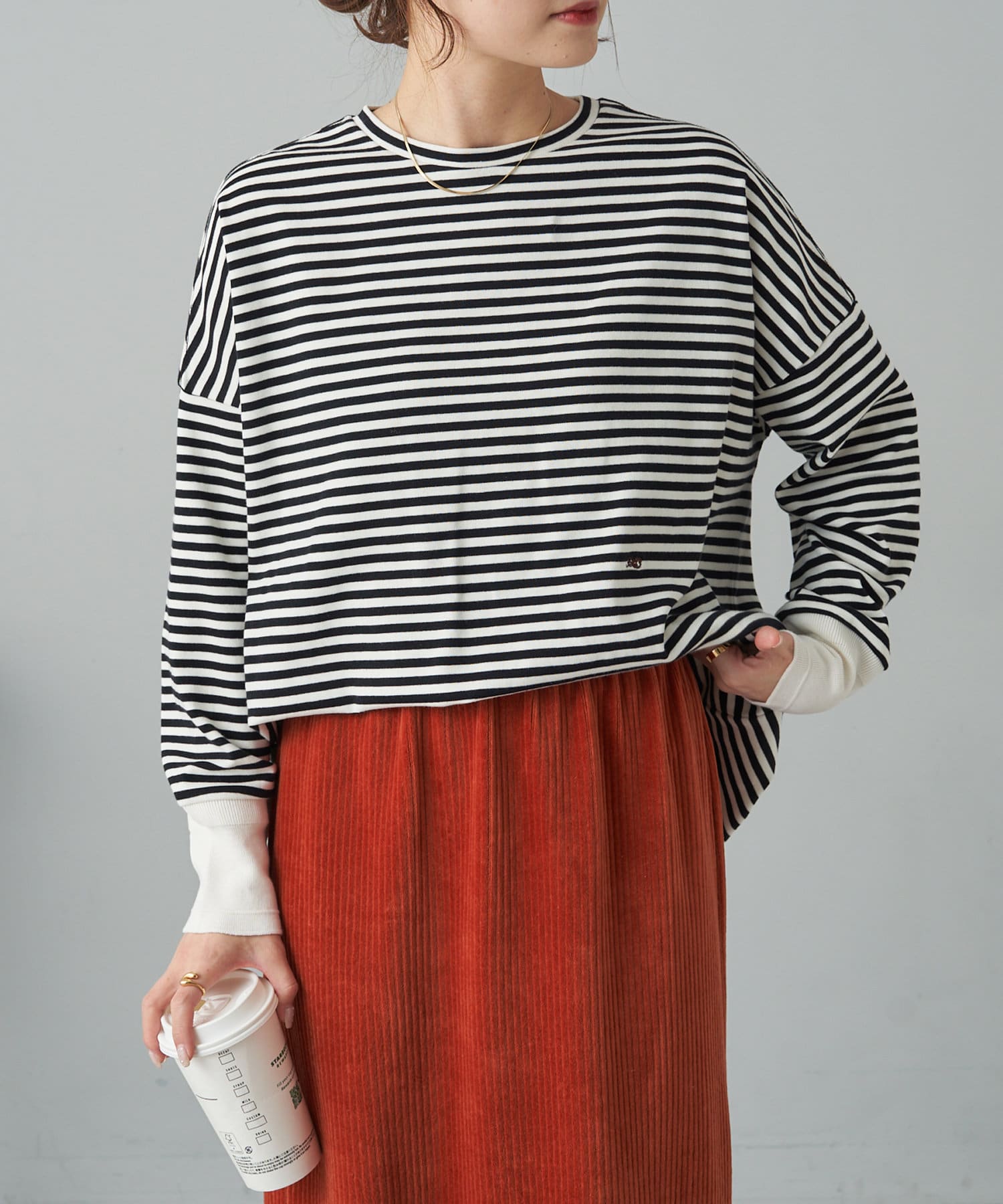 パルクロで初購入です。ホワイトの方が着回しきくかなと思いますが、あえてボーダーにしました。今の時期はインナーで、春先は1枚で可愛くオシャレに着こなせそうです。