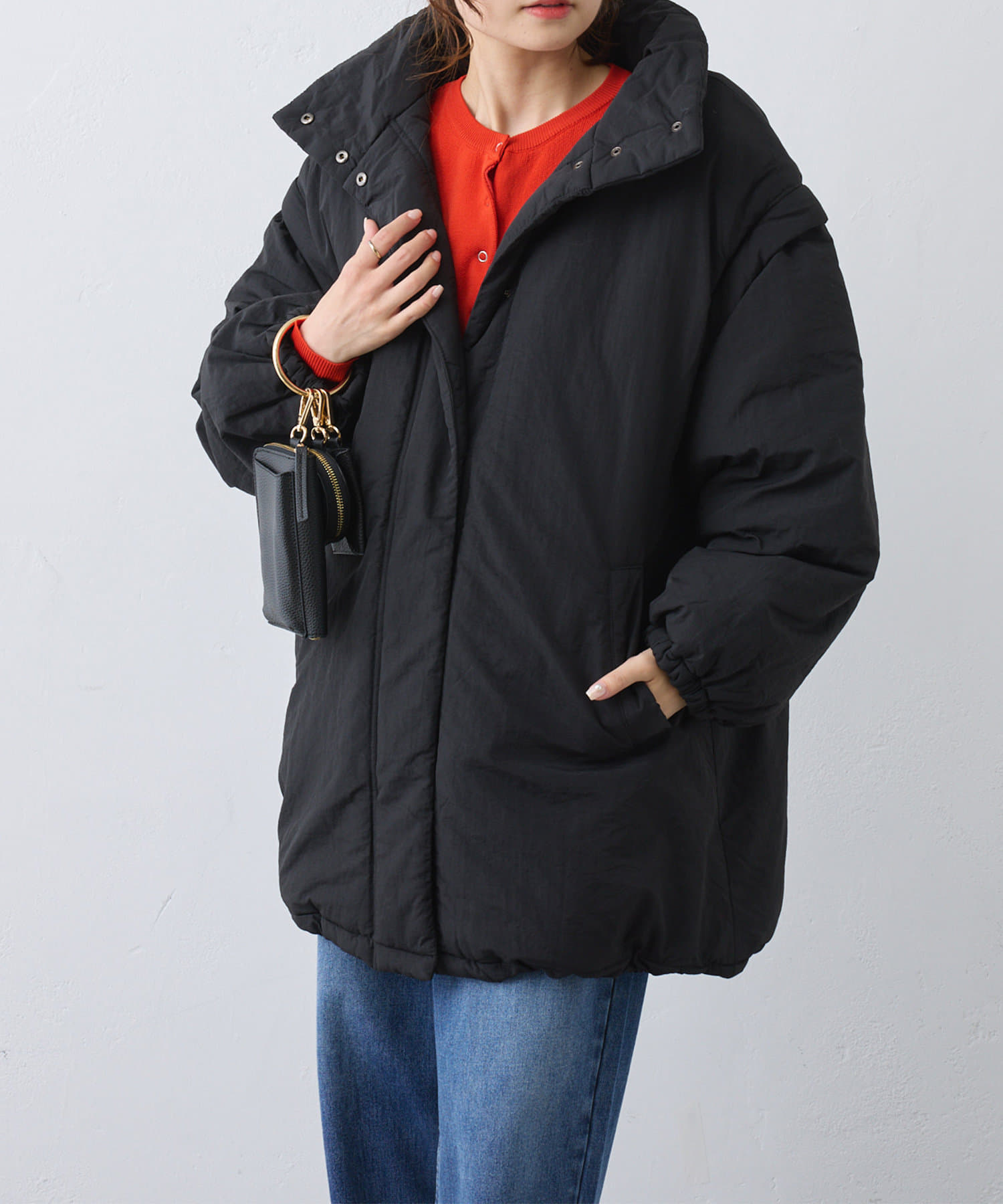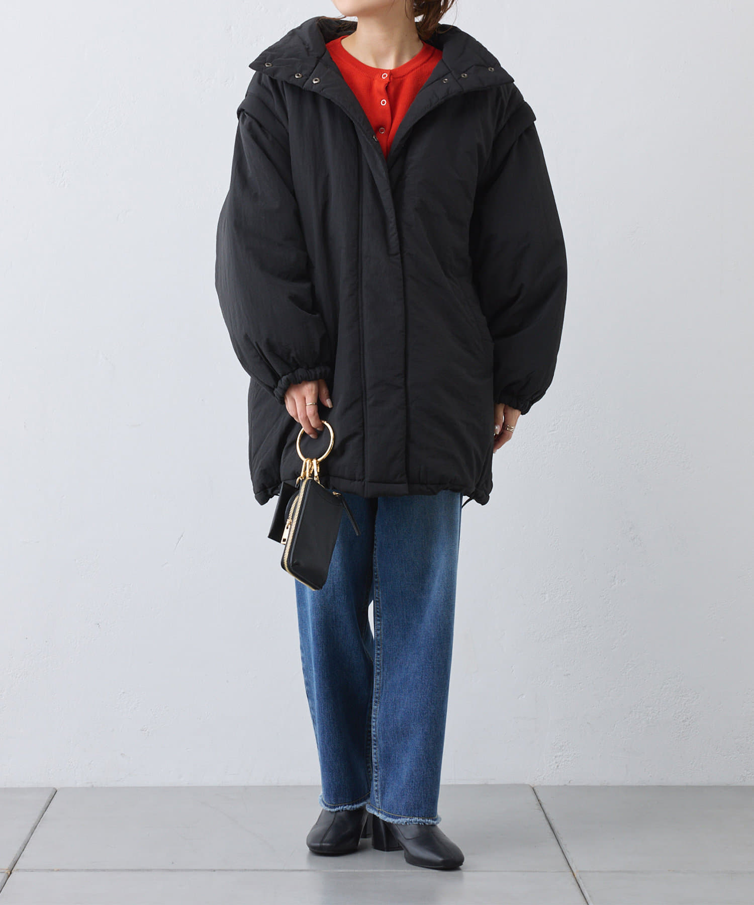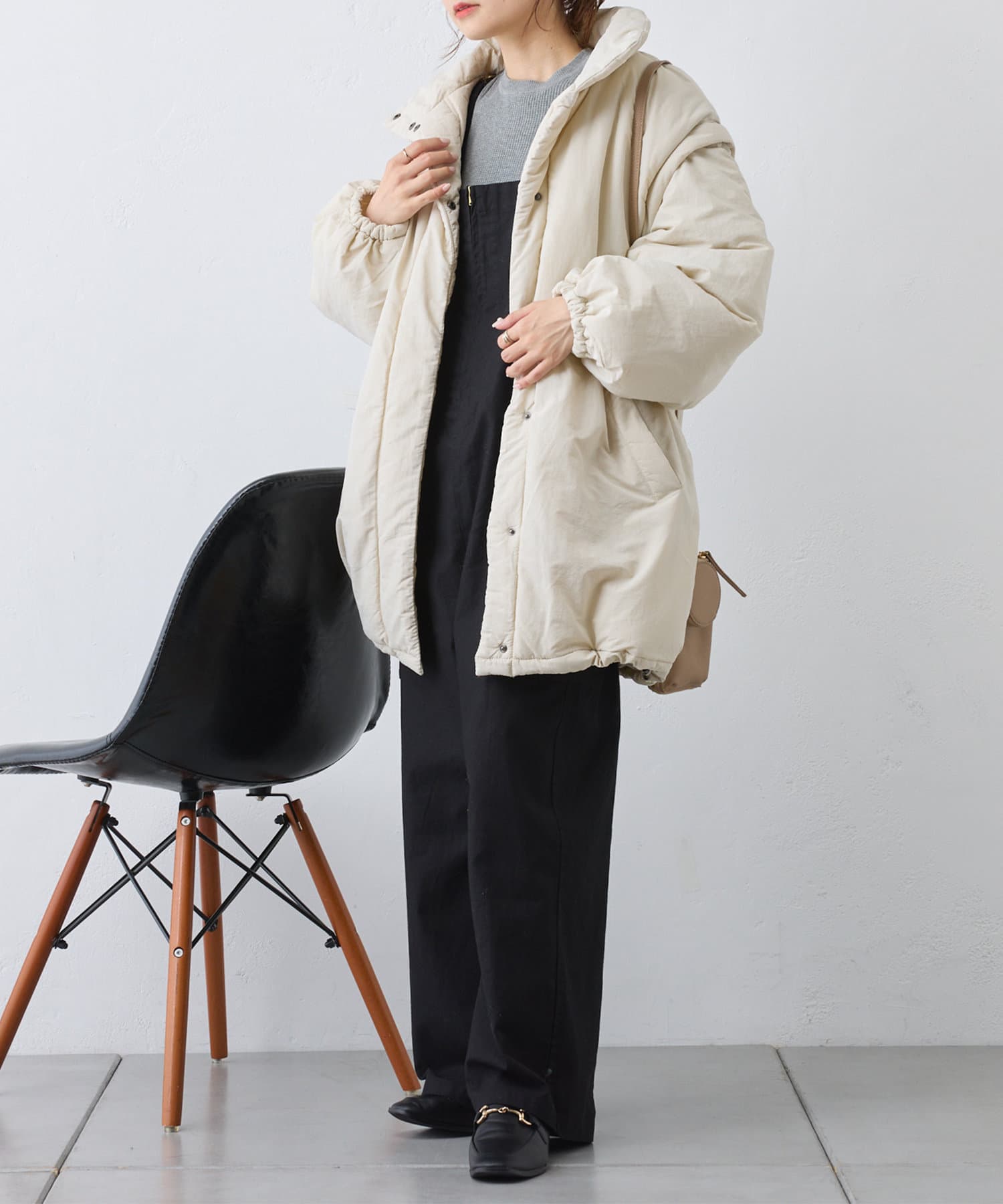 たっぷりとボリュームのあるデザインなのですっきりとしたボトムスと相性抜群◎