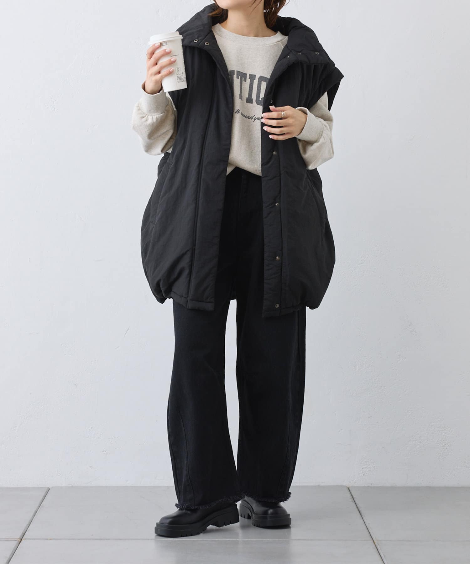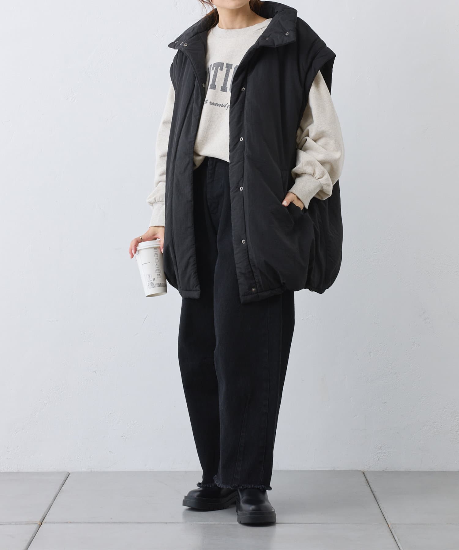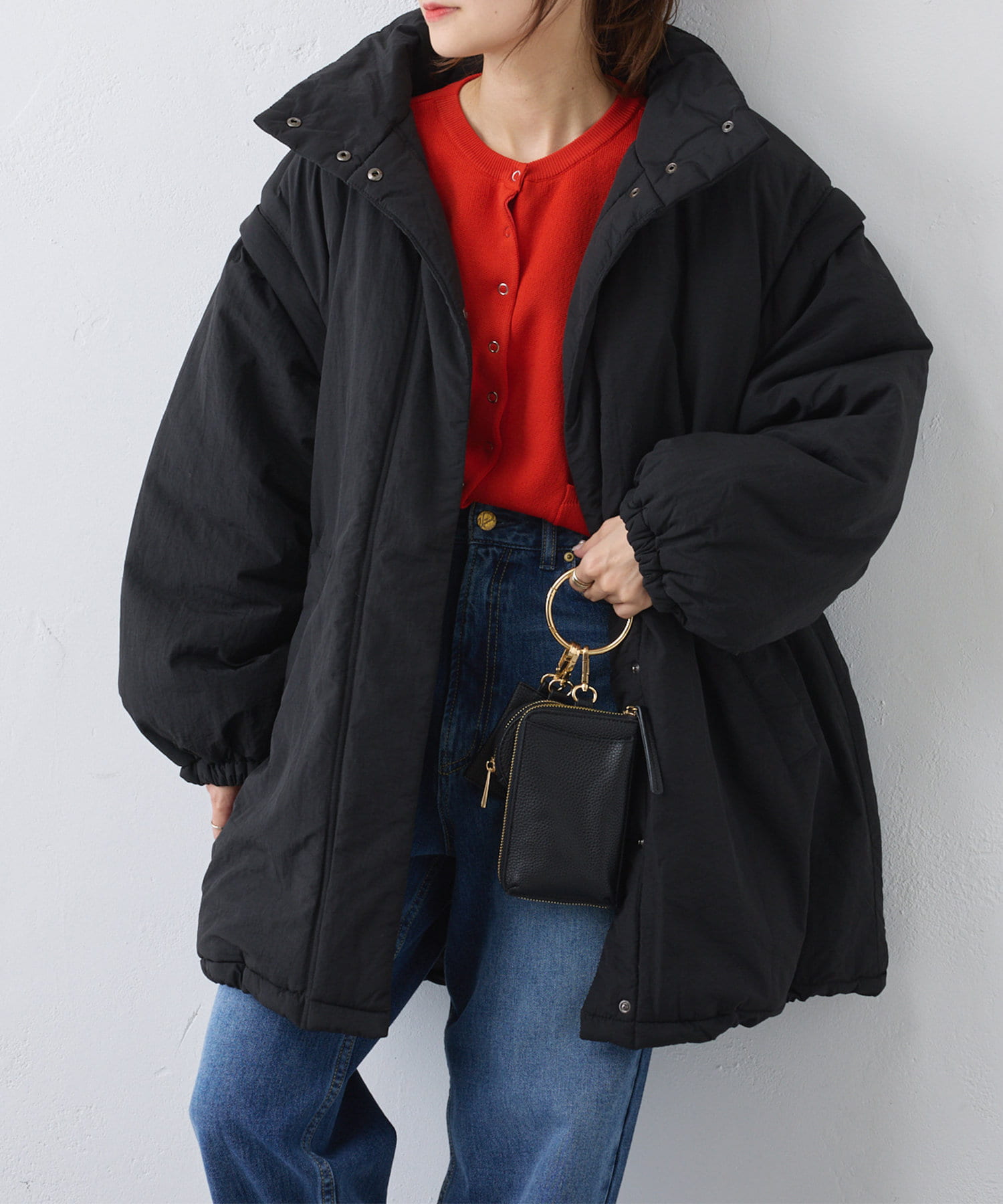 たっぷりとボリュームのあるデザインなのですっきりとしたボトムスと相性抜群◎