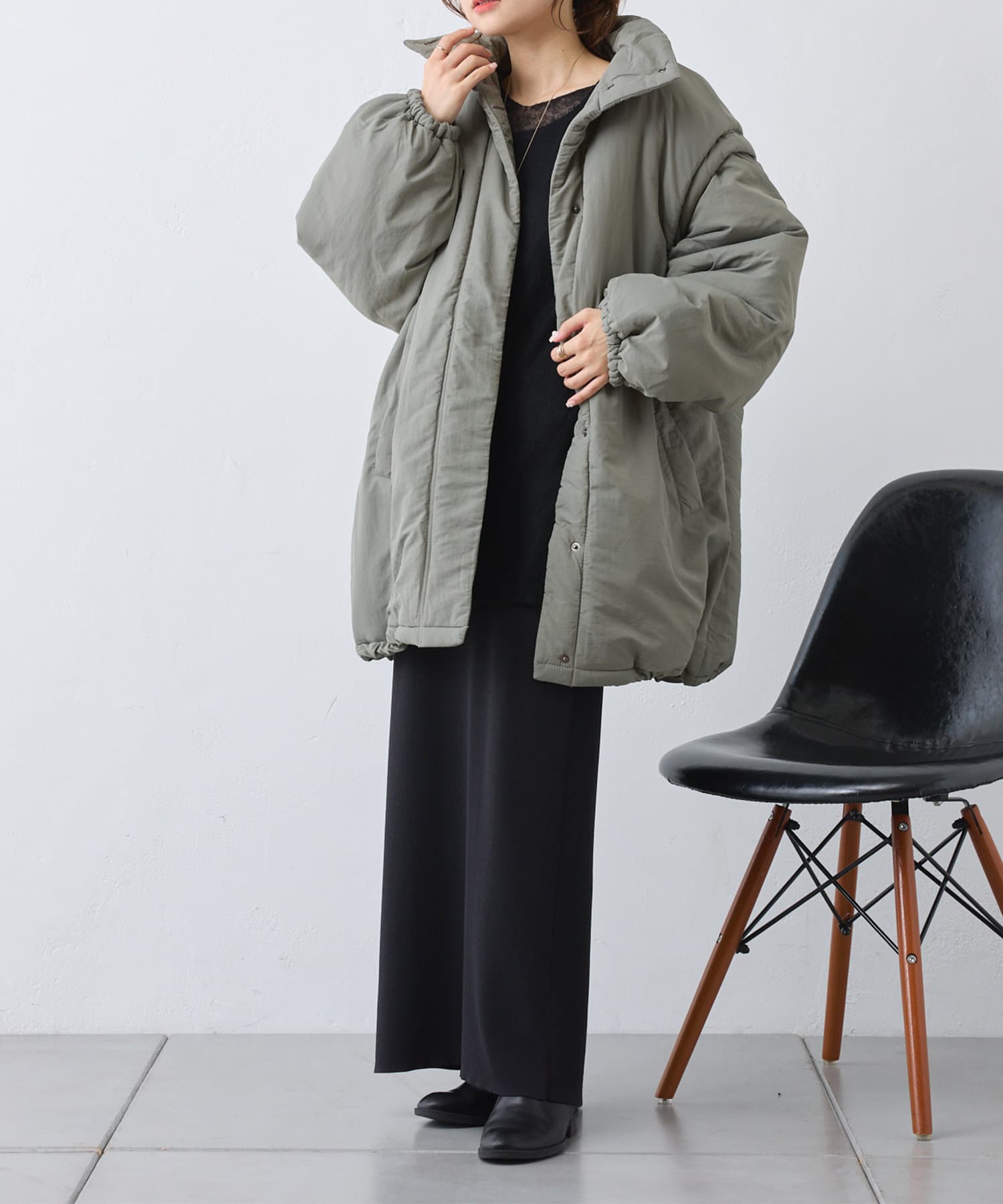 たっぷりボリュームシルエットがポイントの中綿ダウン。
