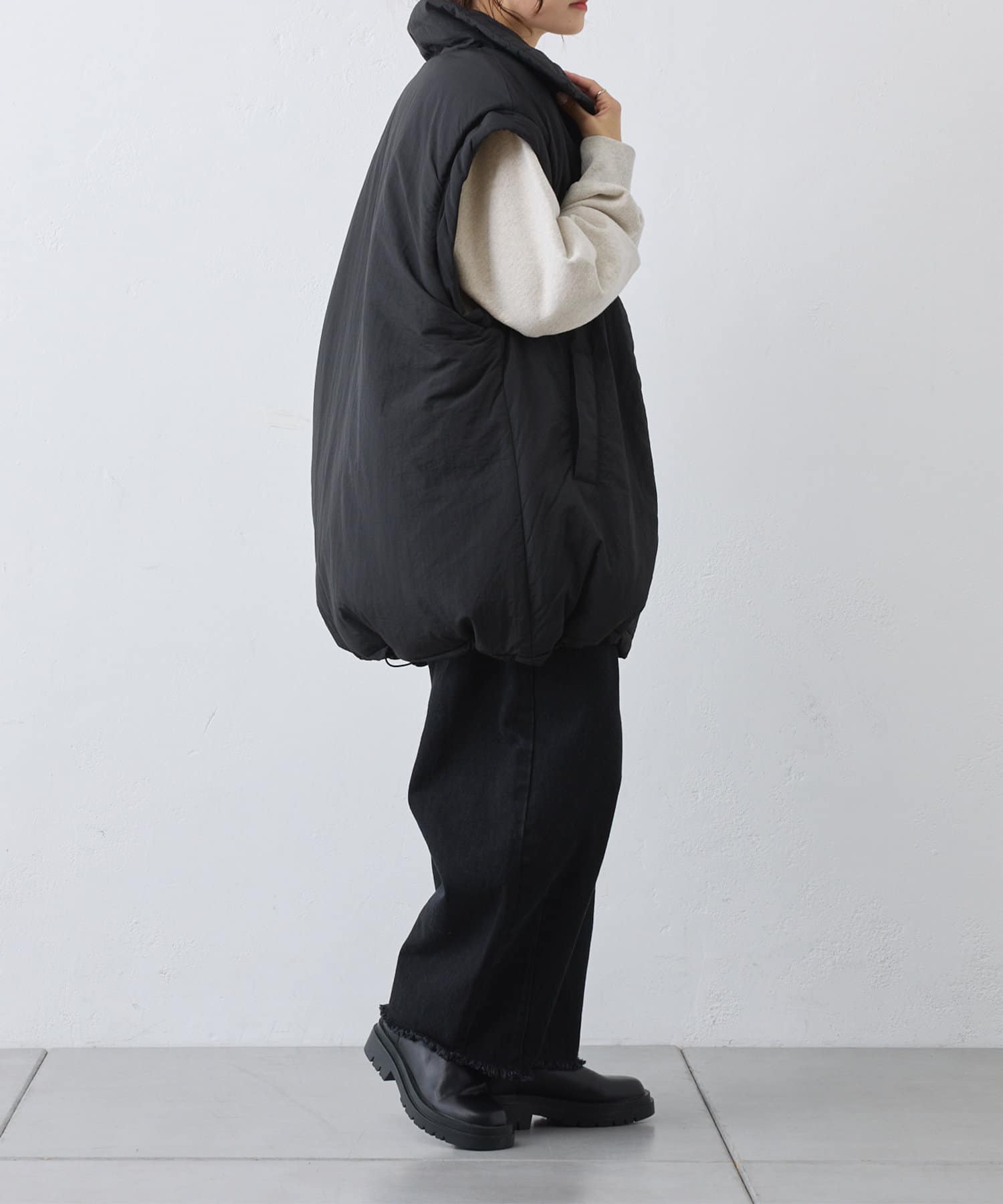 見た目以上にゆとりがあるので、厚手のスウェットやニットも着込むことができます。