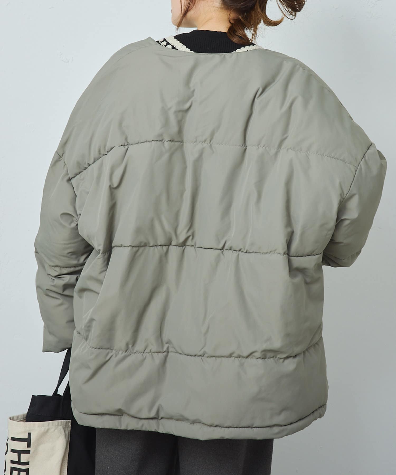 マフラーを外せばシンプルなノーカラージャケットしても活躍します。
