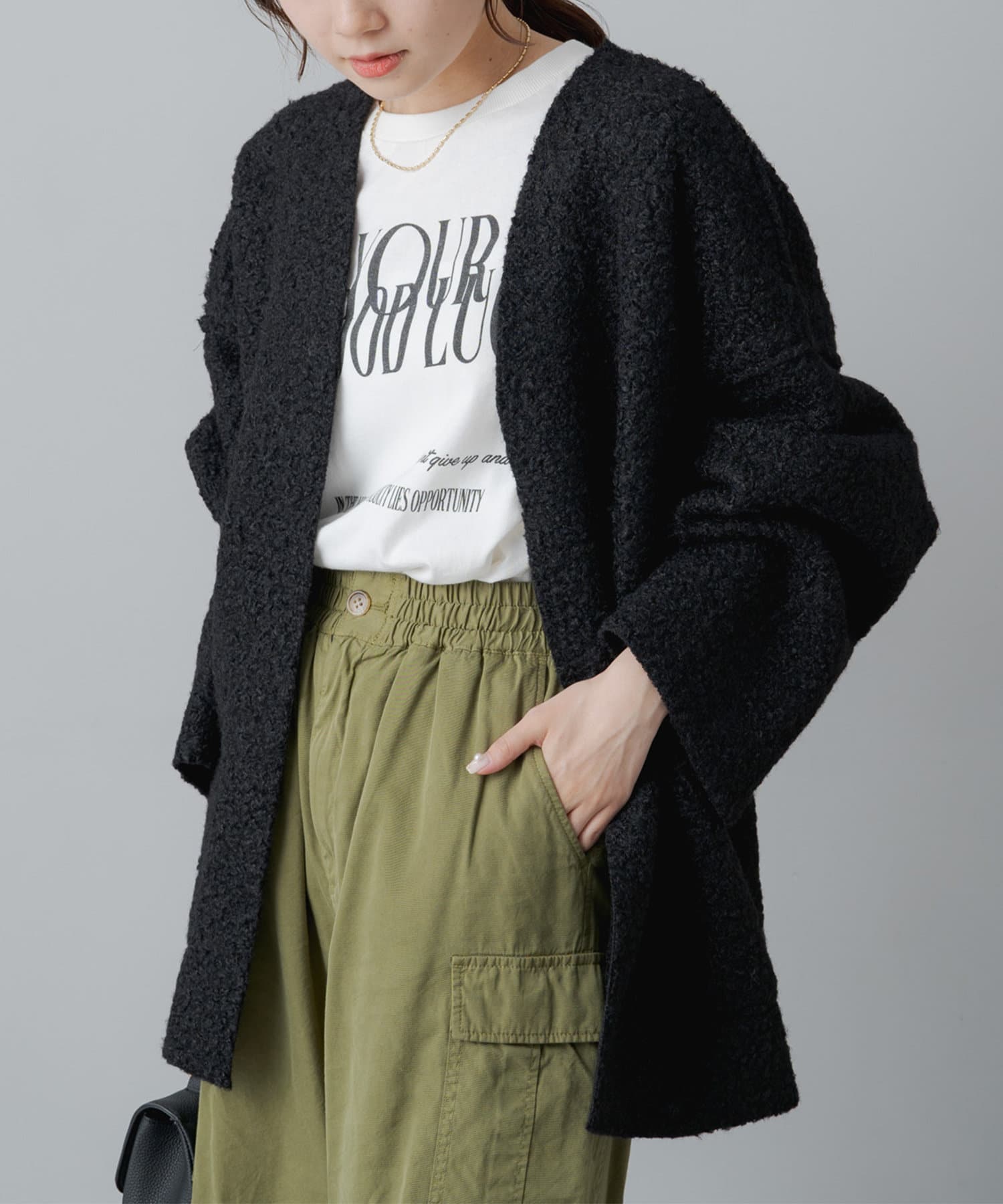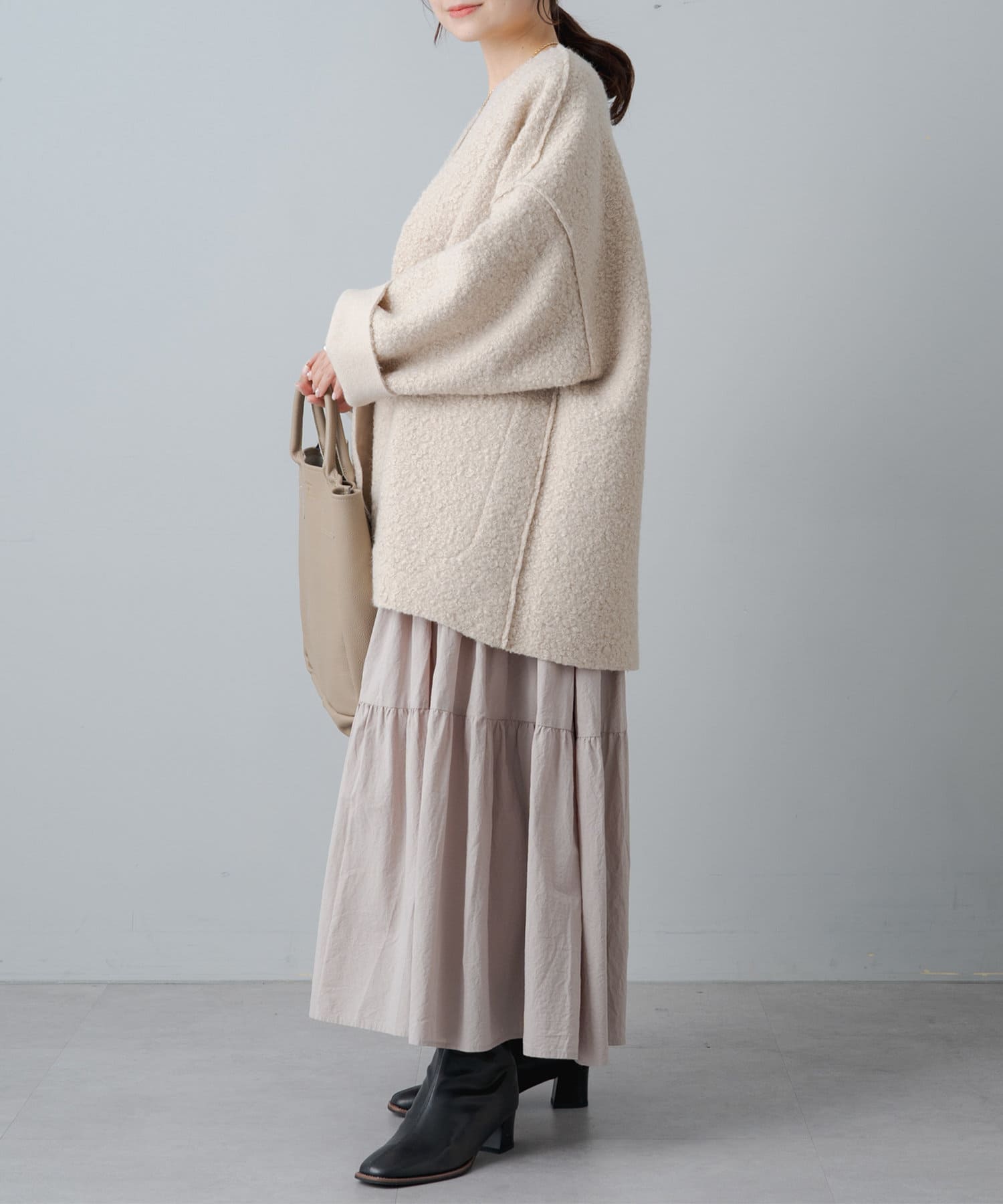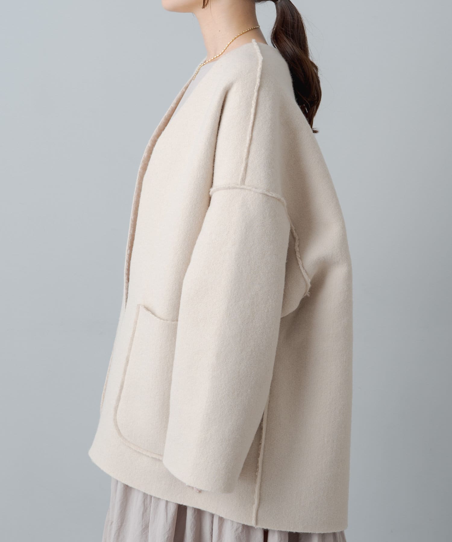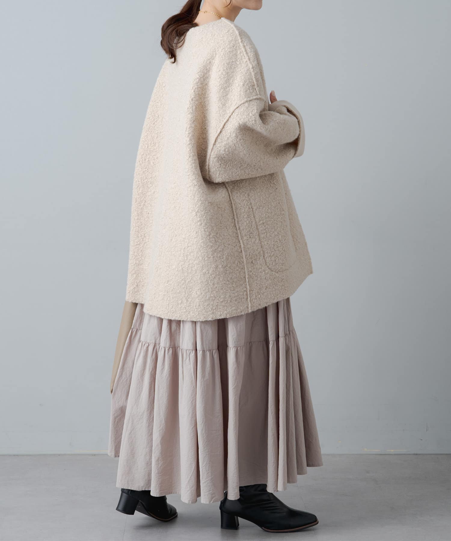 ボタンやジップ無しでさっと羽織れるトッパータイプで軽い着心地。