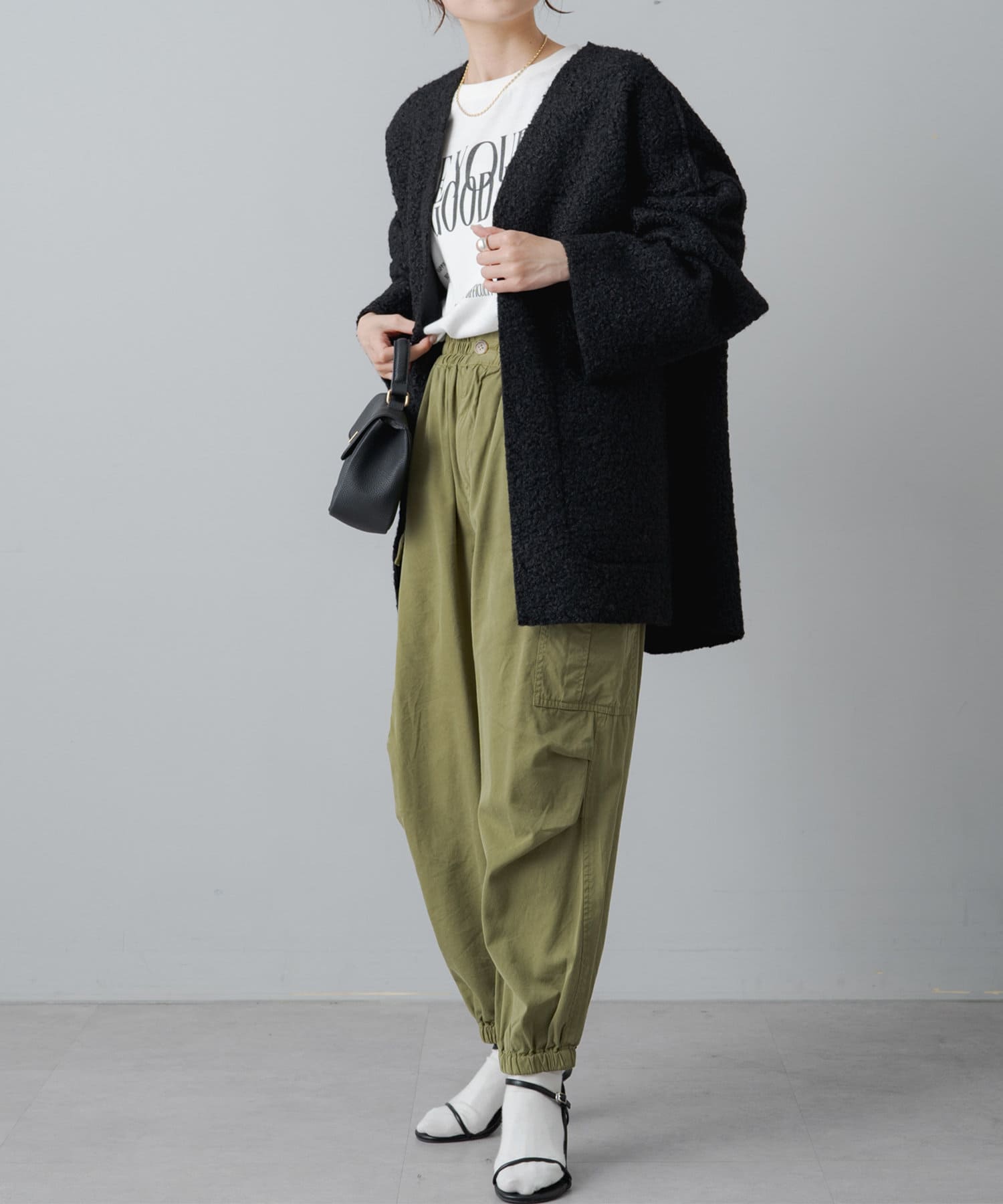 パンツやナロースカートスカート、ワンピースなど幅広い着こなしが楽しめます。