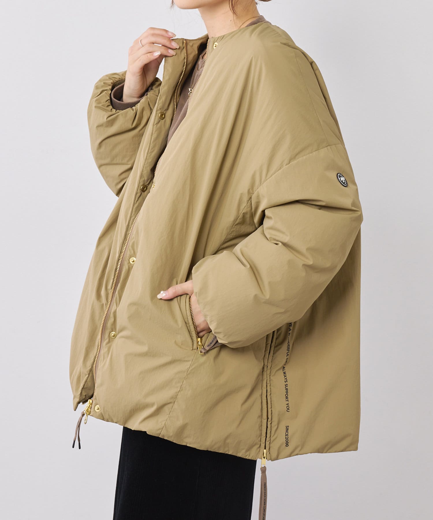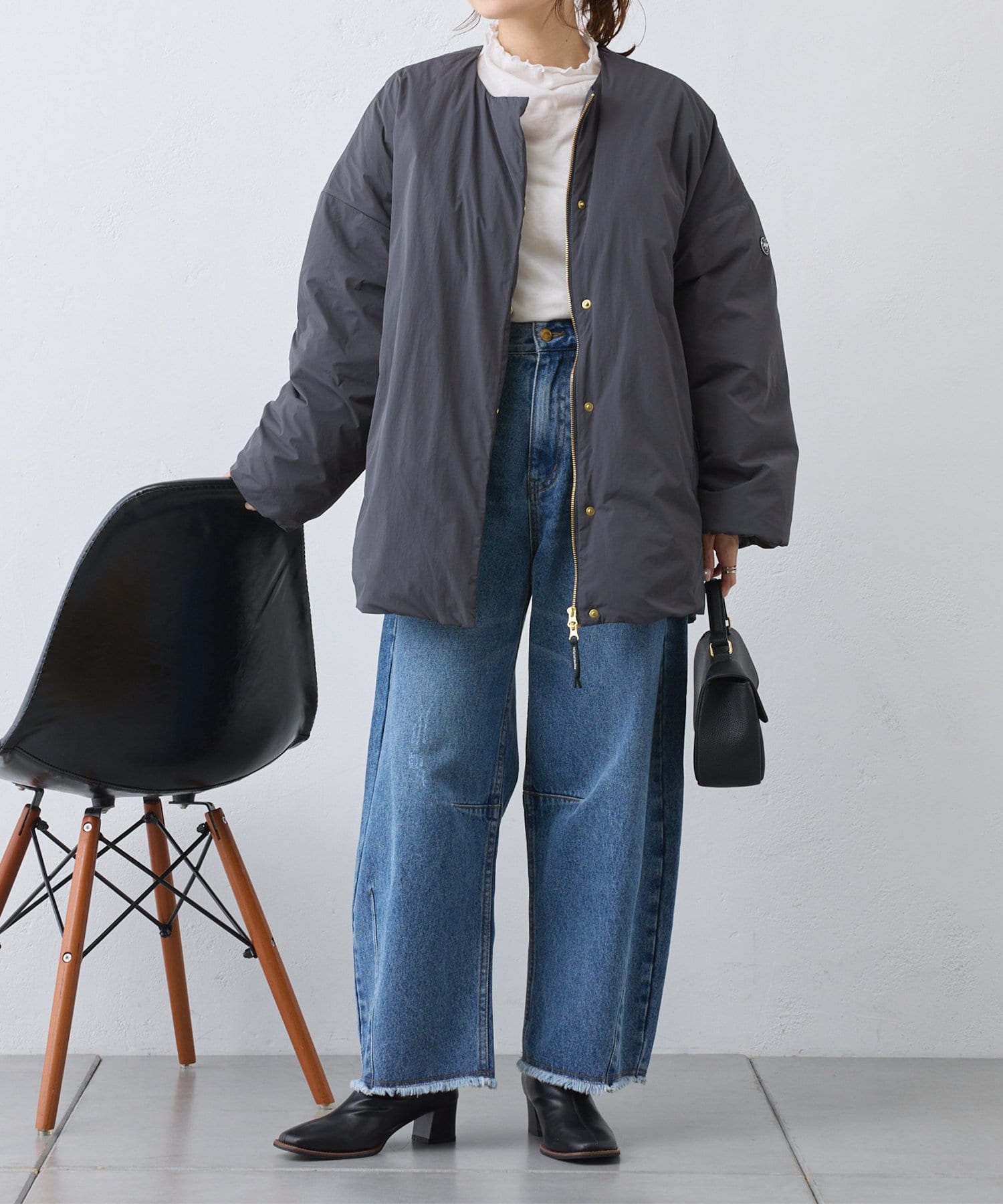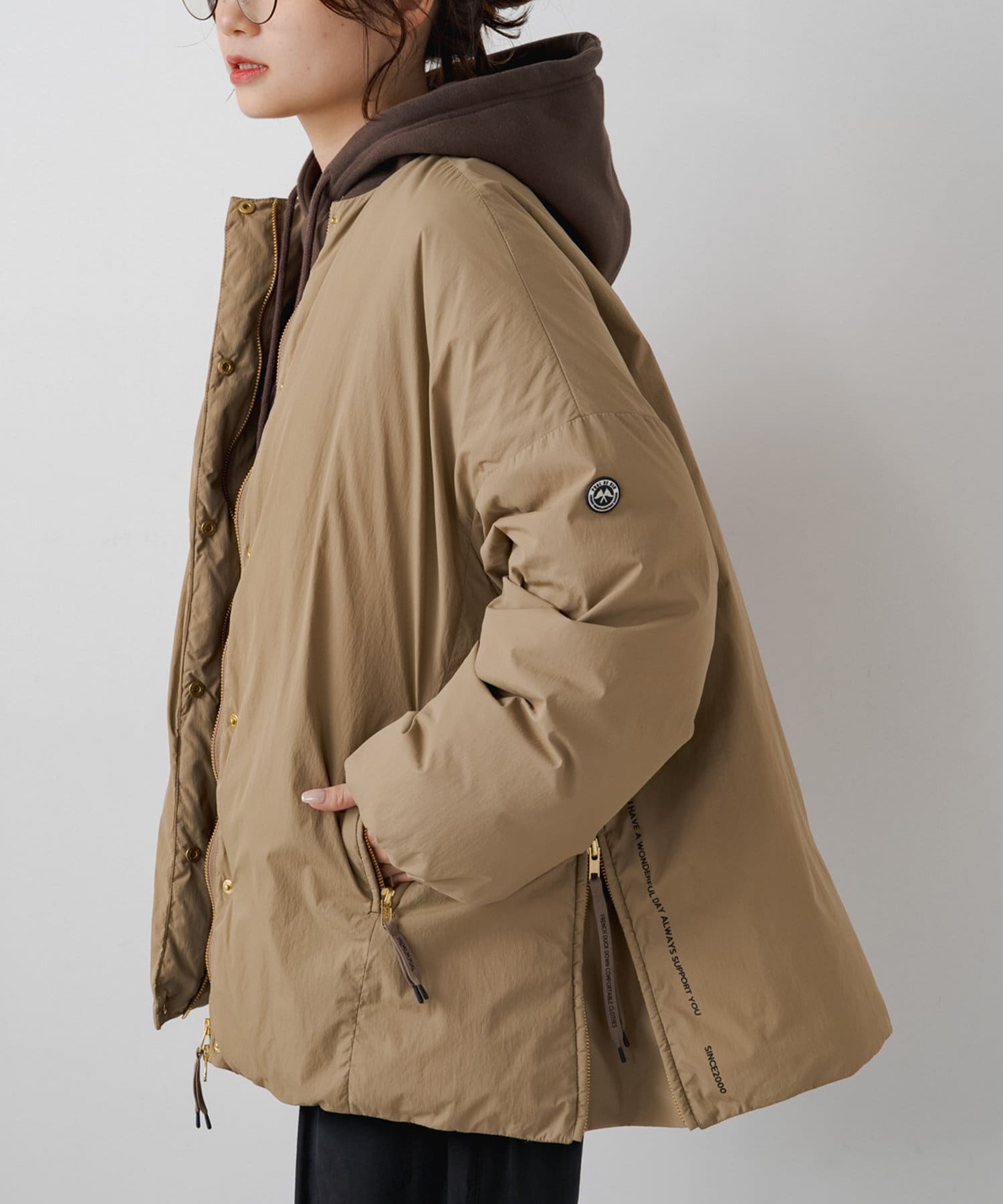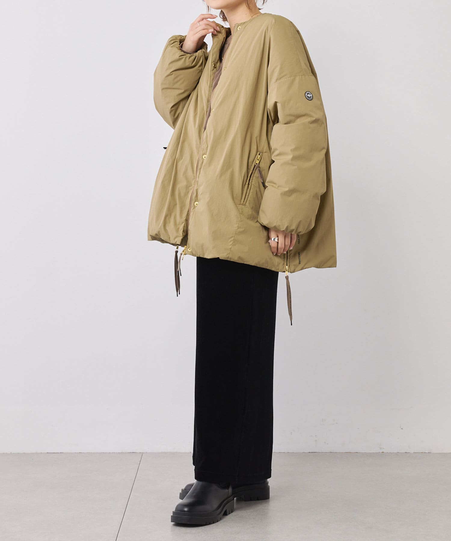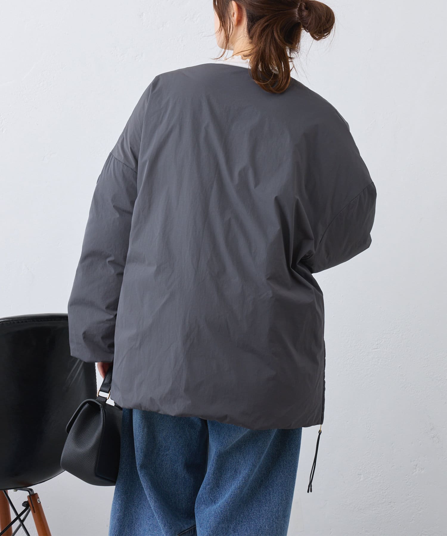 ◇遊び心溢れるディテールにこだわったノーカラーダウンジャケット◇