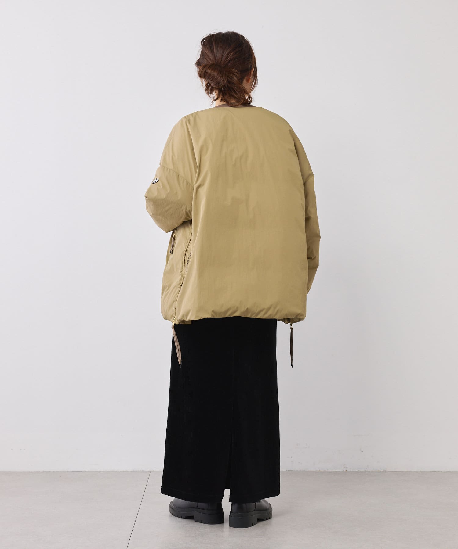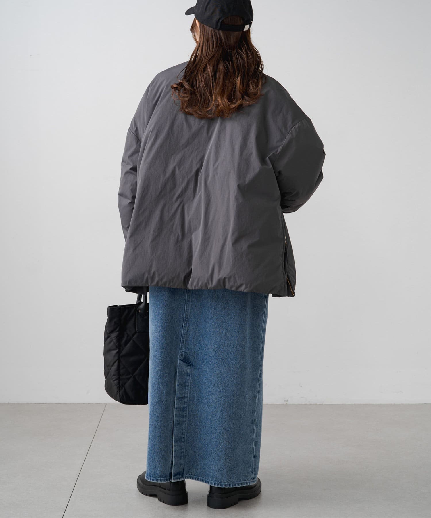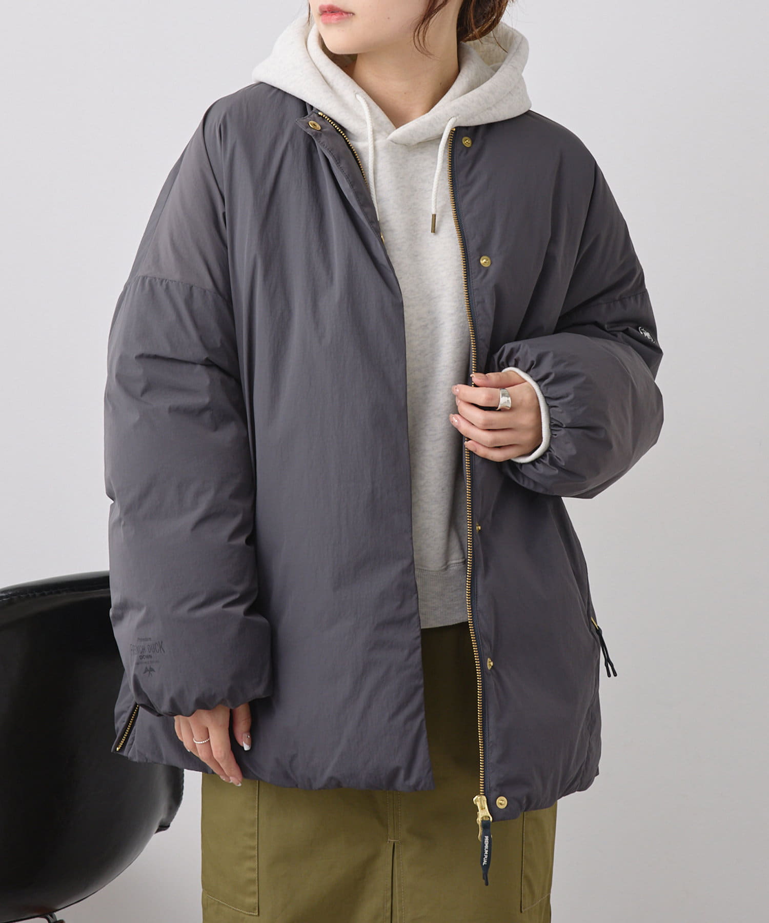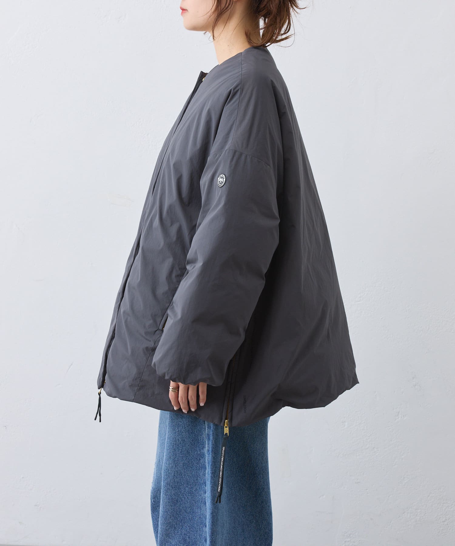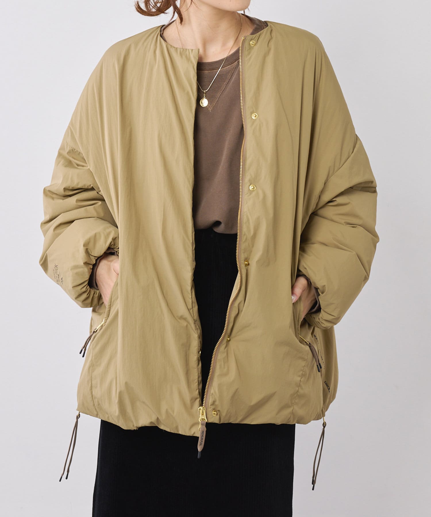 ◇遊び心溢れるディテールにこだわったノーカラーダウンジャケット◇